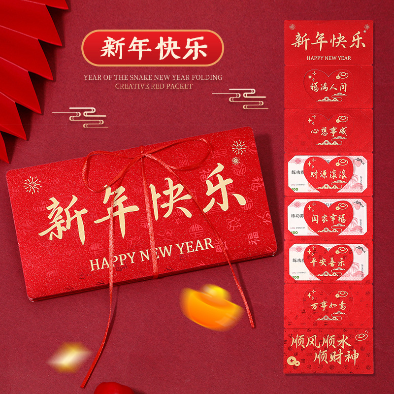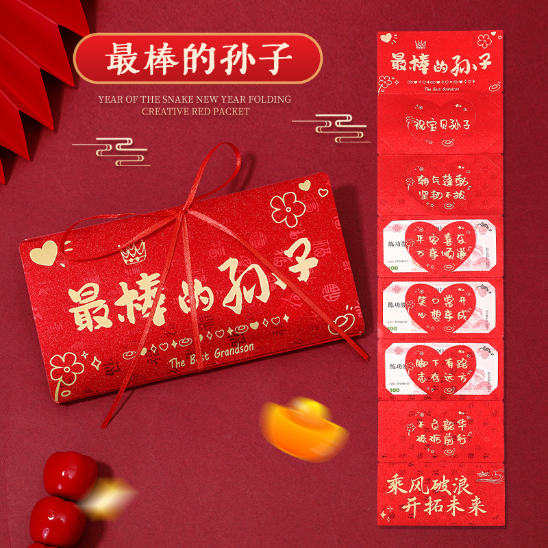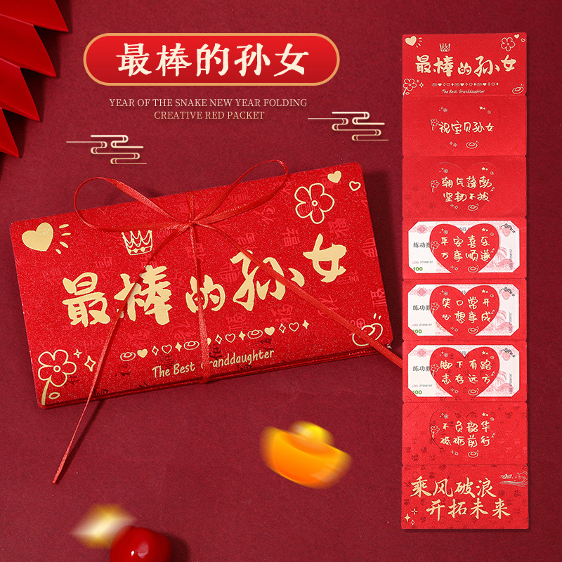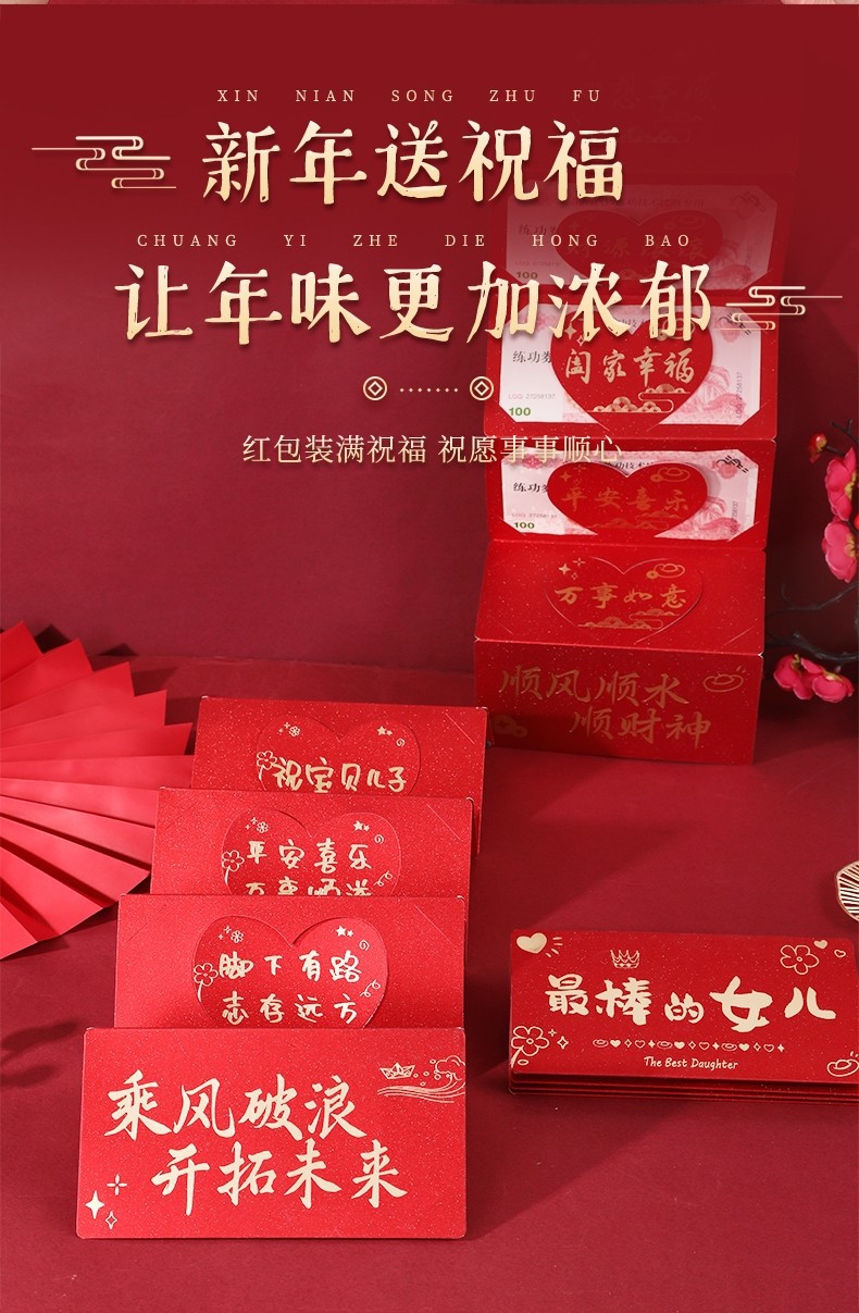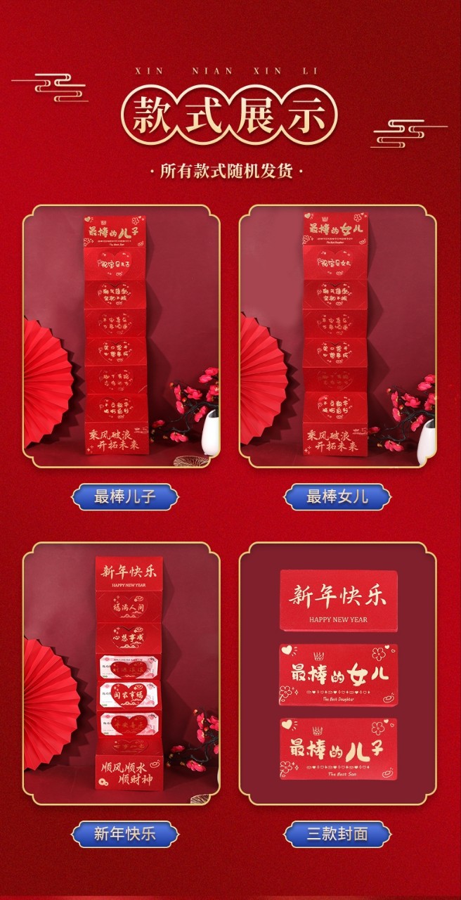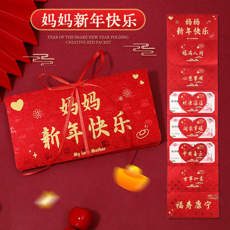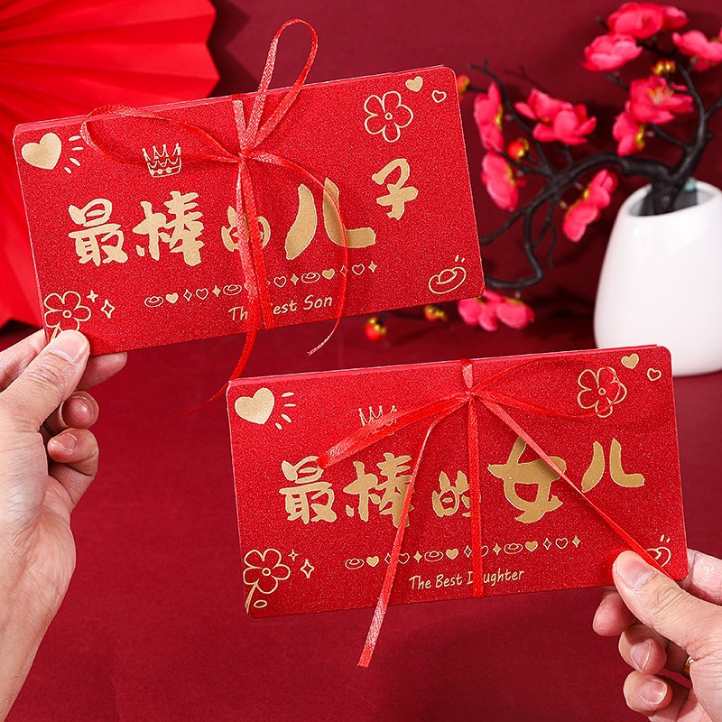 2026年马年新年快乐儿子女儿福寿金葱烫金磨砂红包利是封生压岁