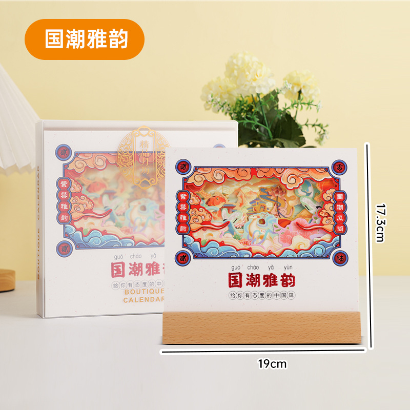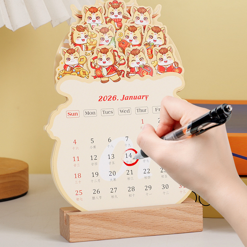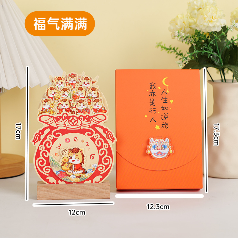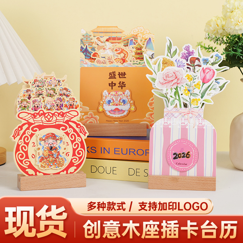 2026日历现货小批量木质办公桌面摆件场景3D台历雕刻企业logo月历