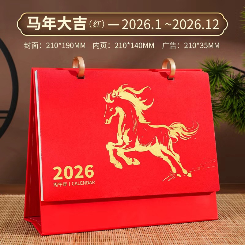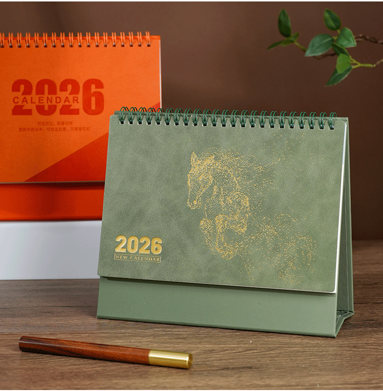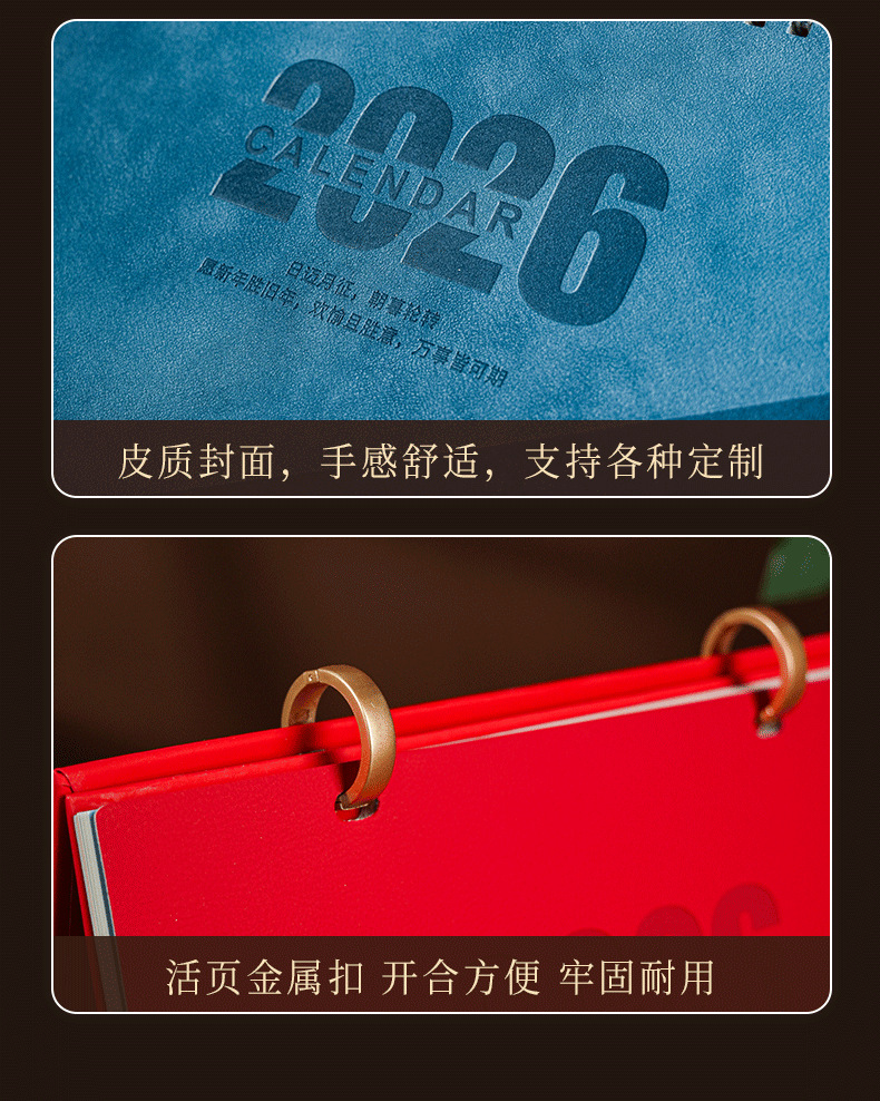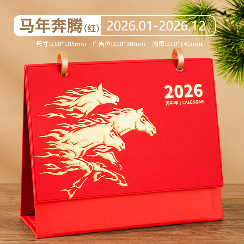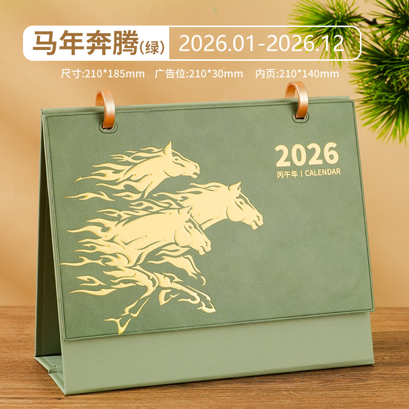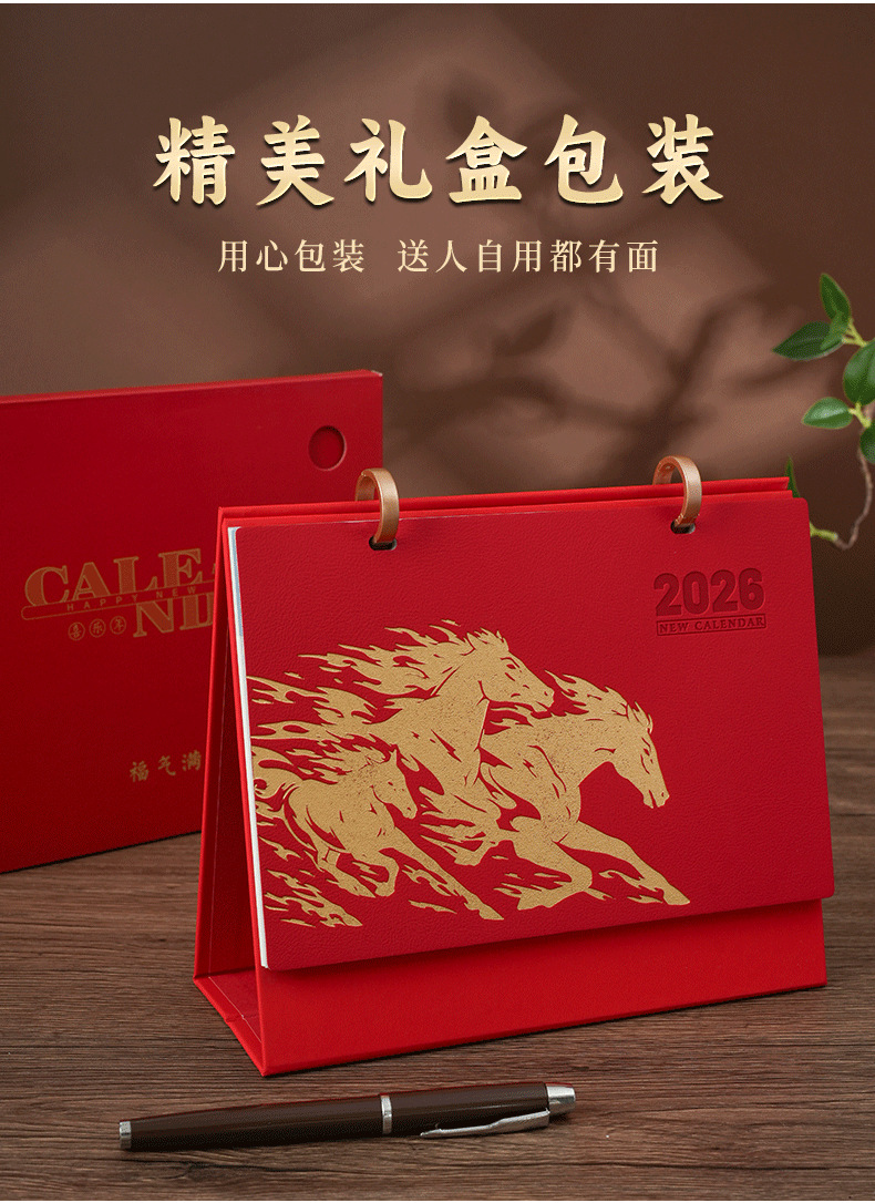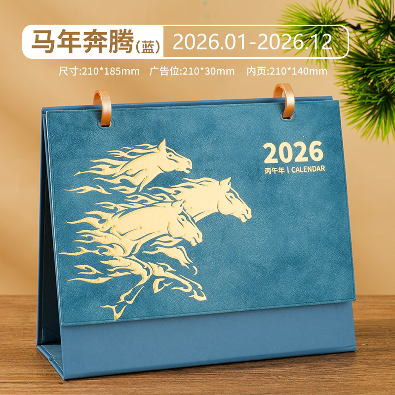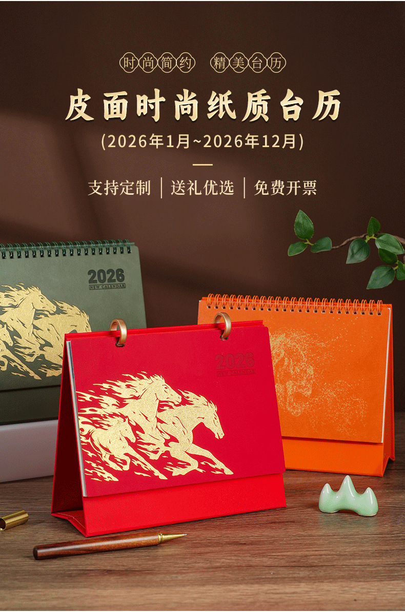 2026年简约皮质台历马年创意记事打卡日历月历桌面摆件台历定制