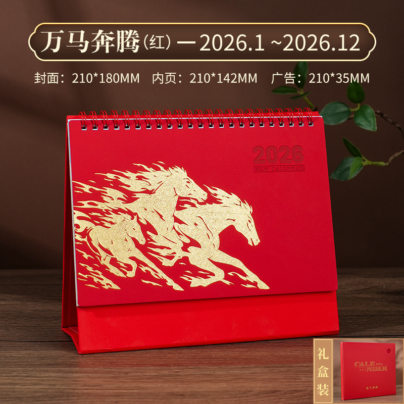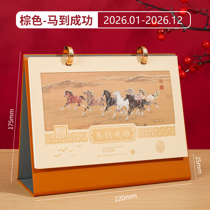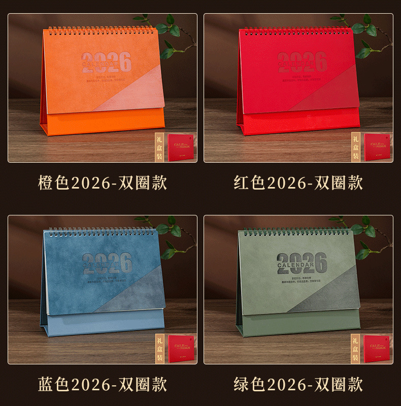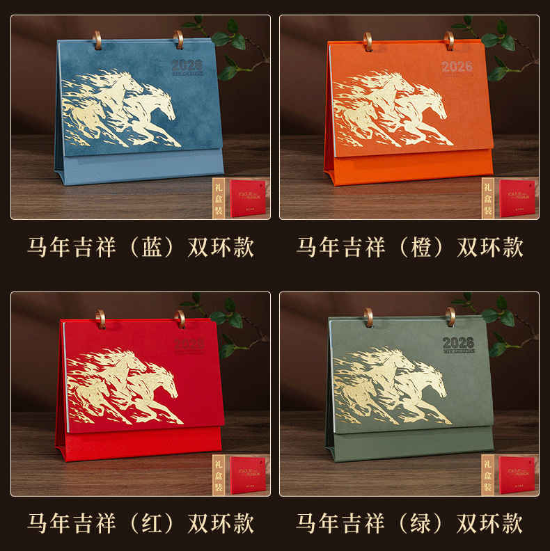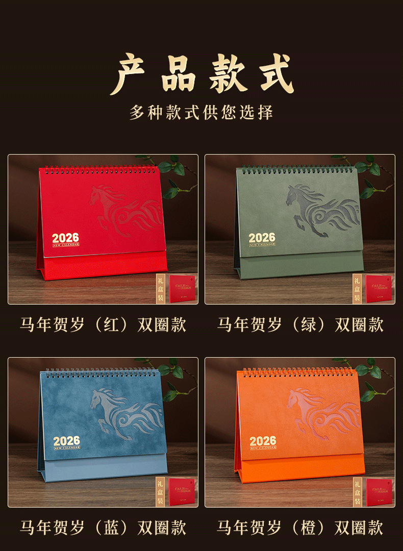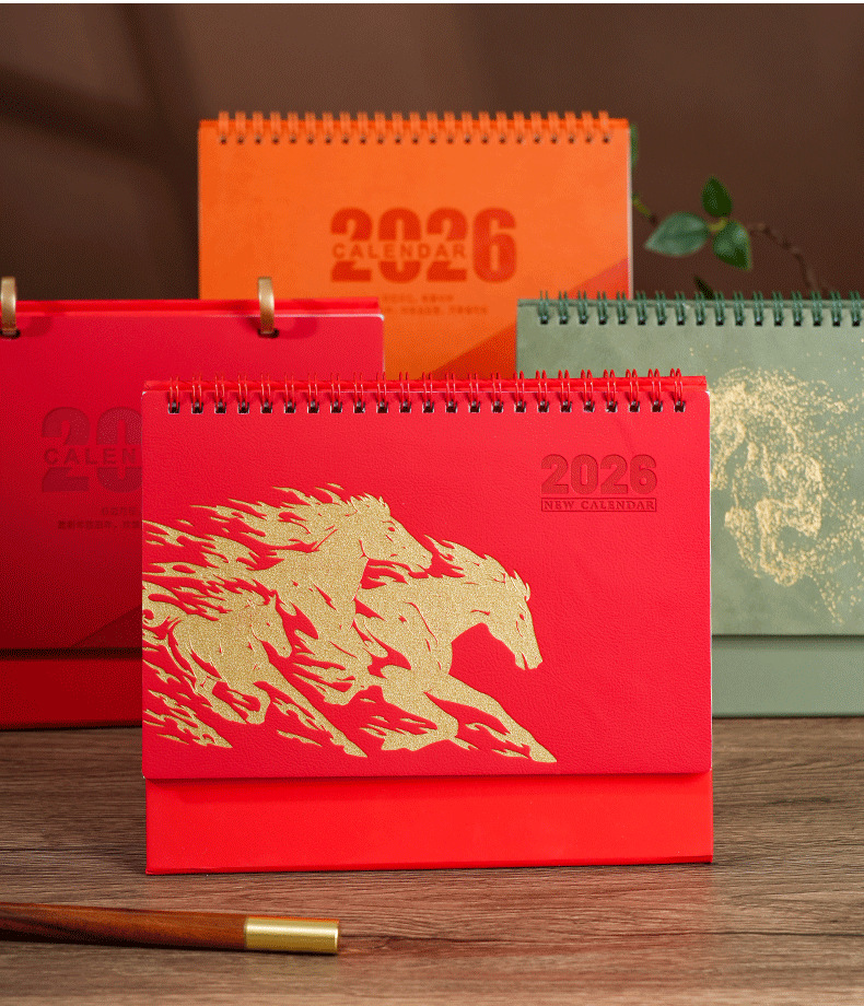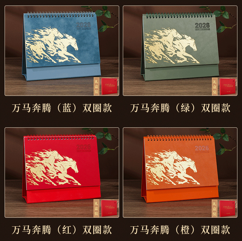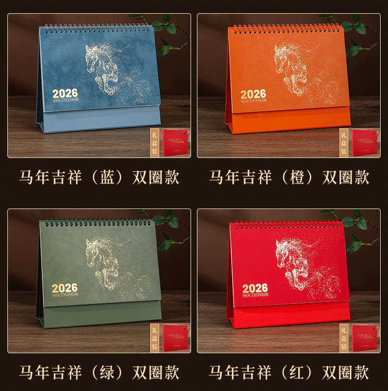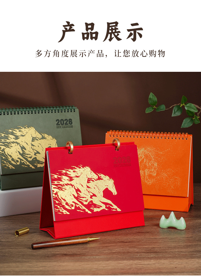 2026年简约皮质台历马年创意记事打卡日历月历桌面摆件台历定制