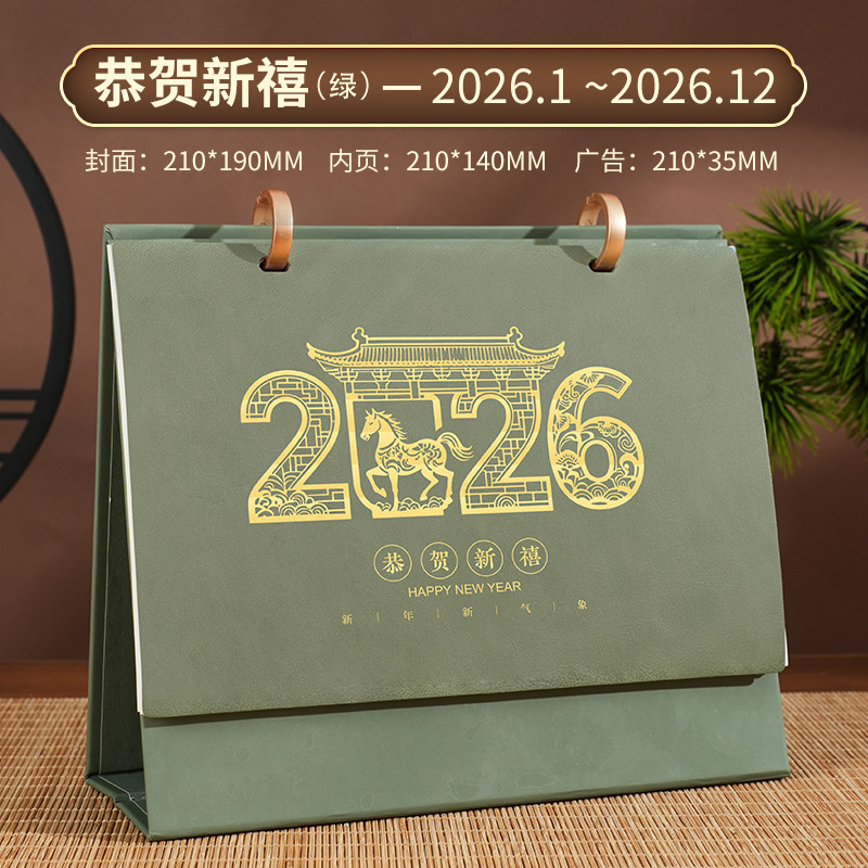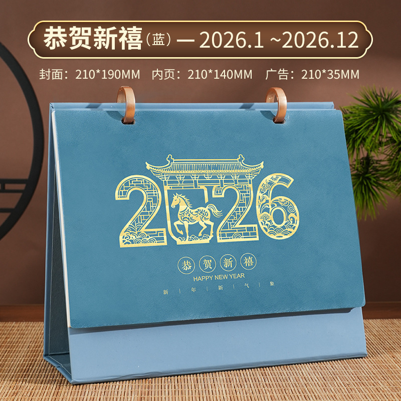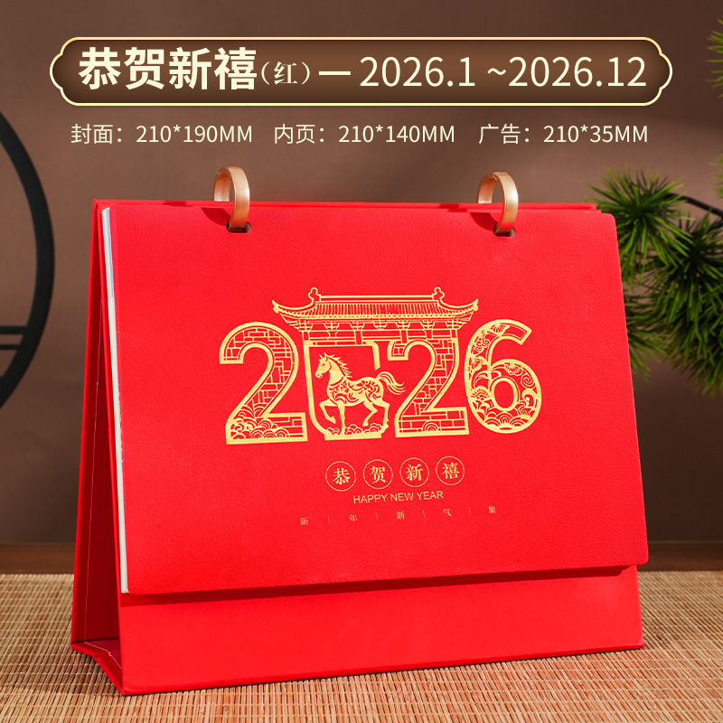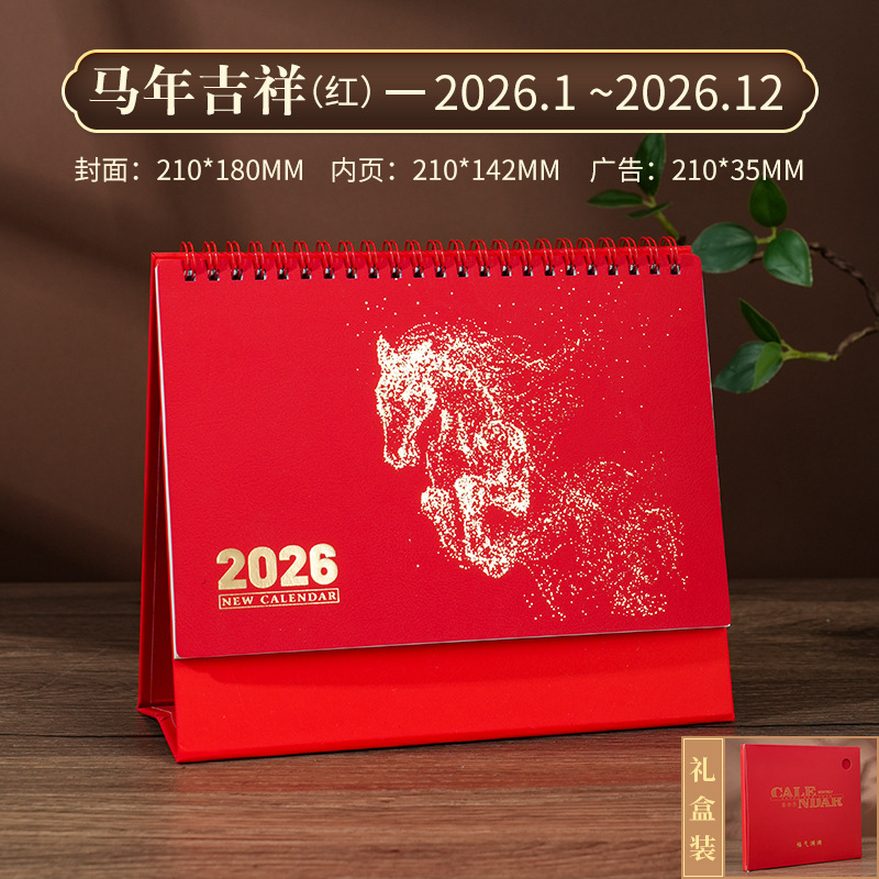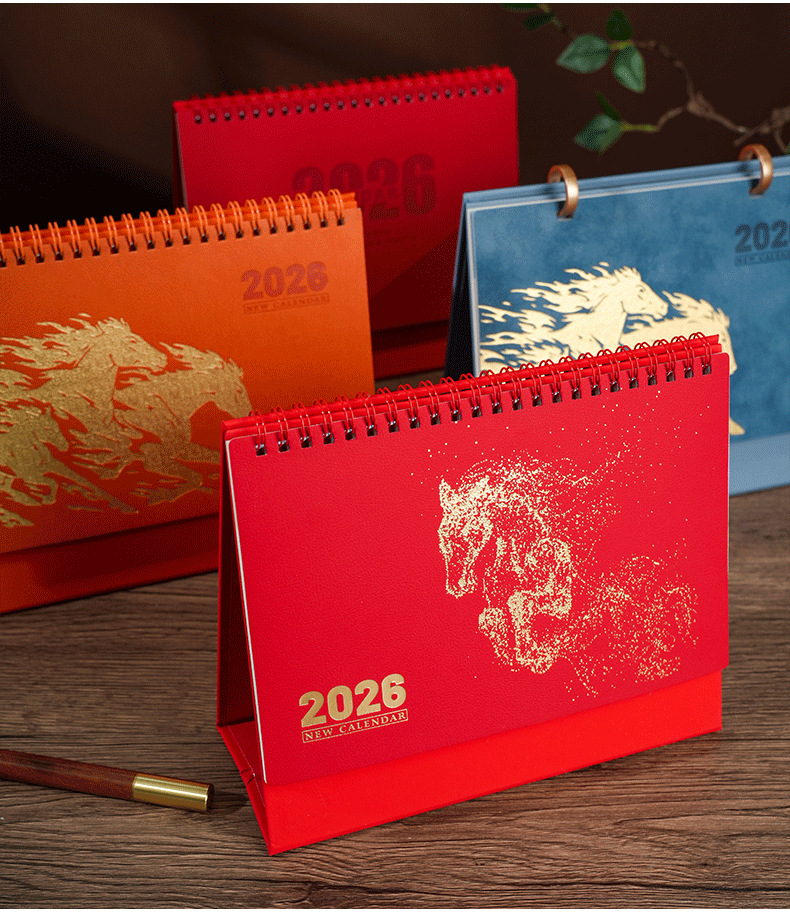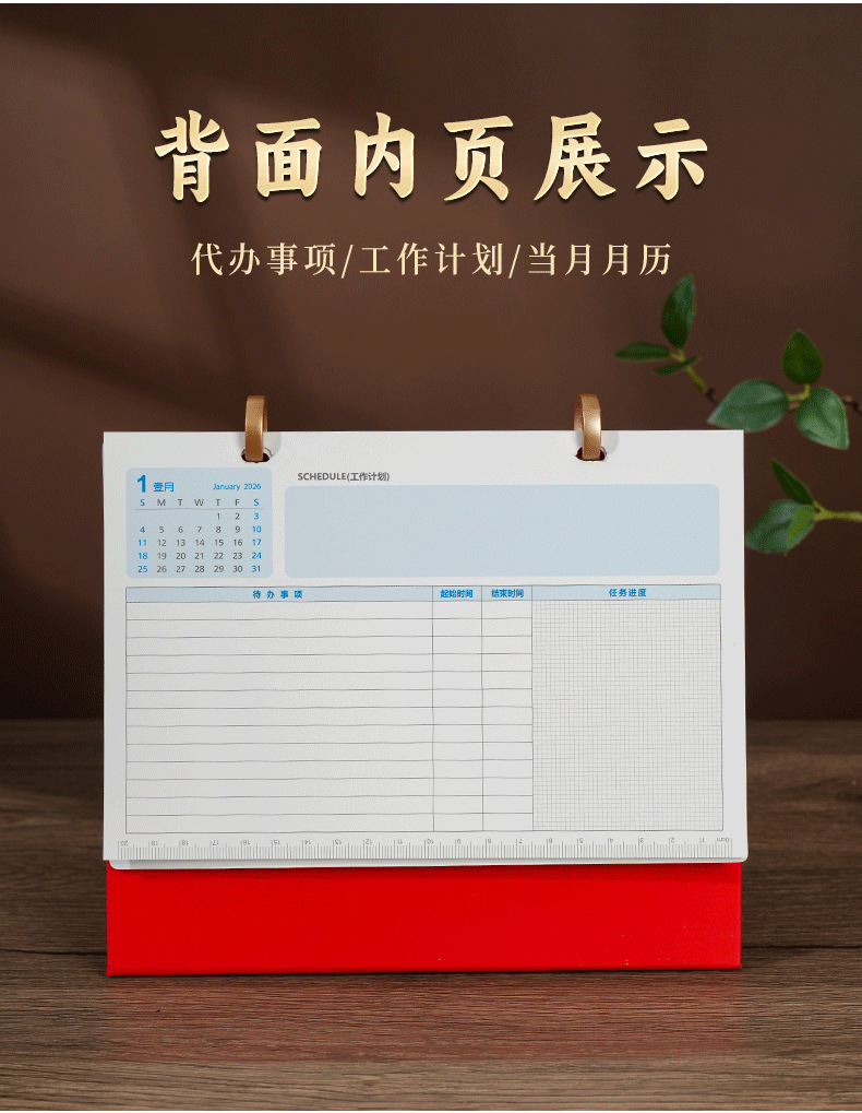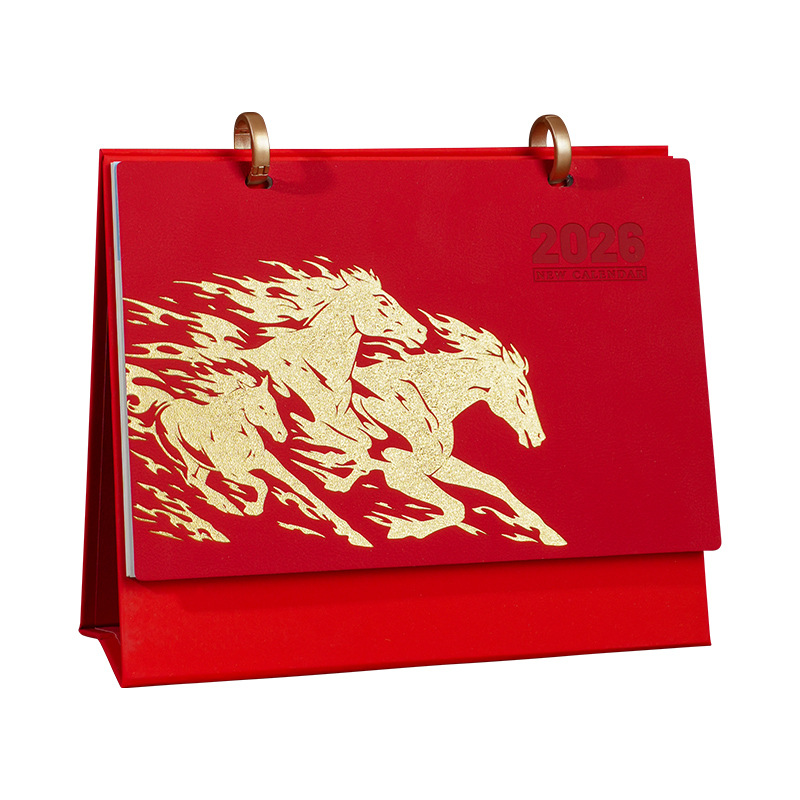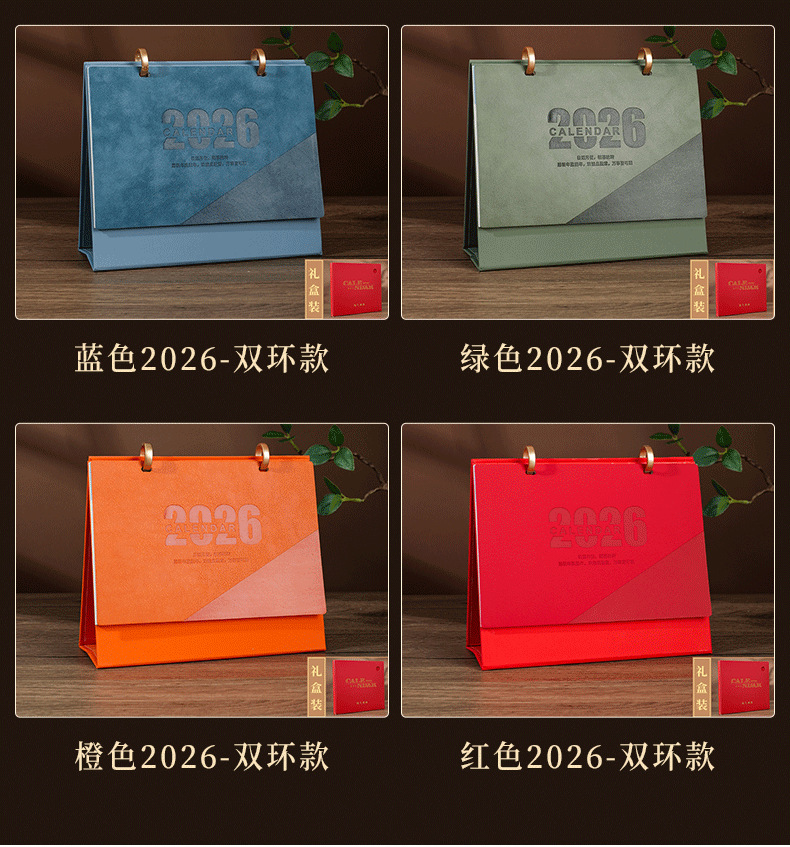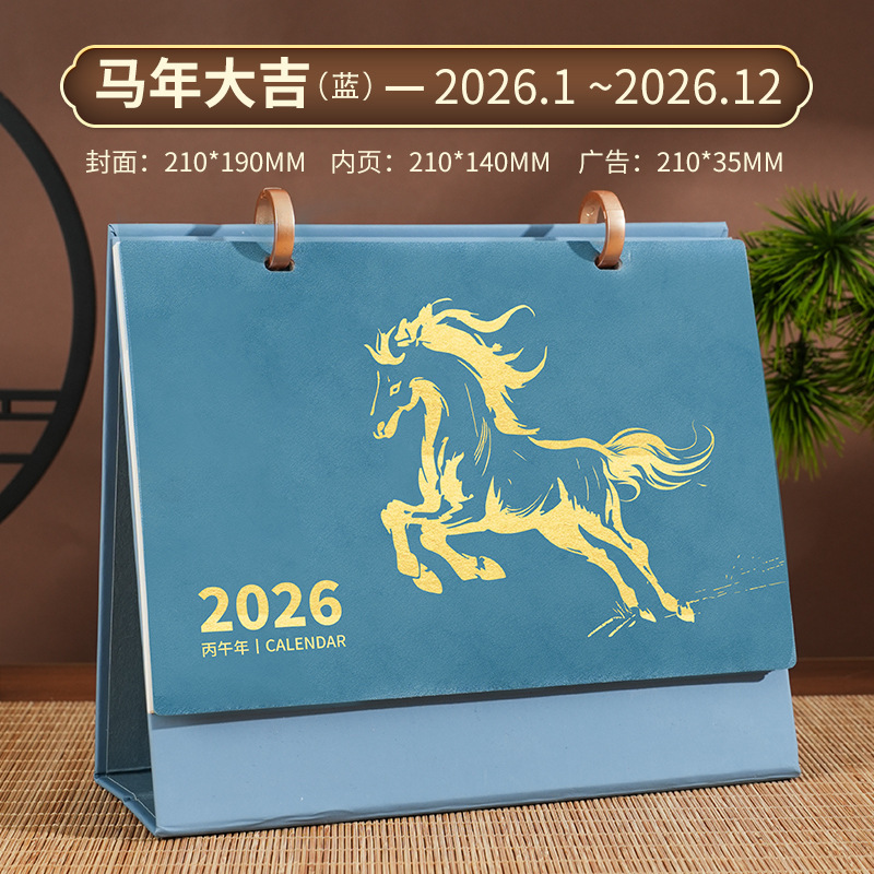 2026年简约皮质台历马年创意记事打卡日历月历桌面摆件台历定制