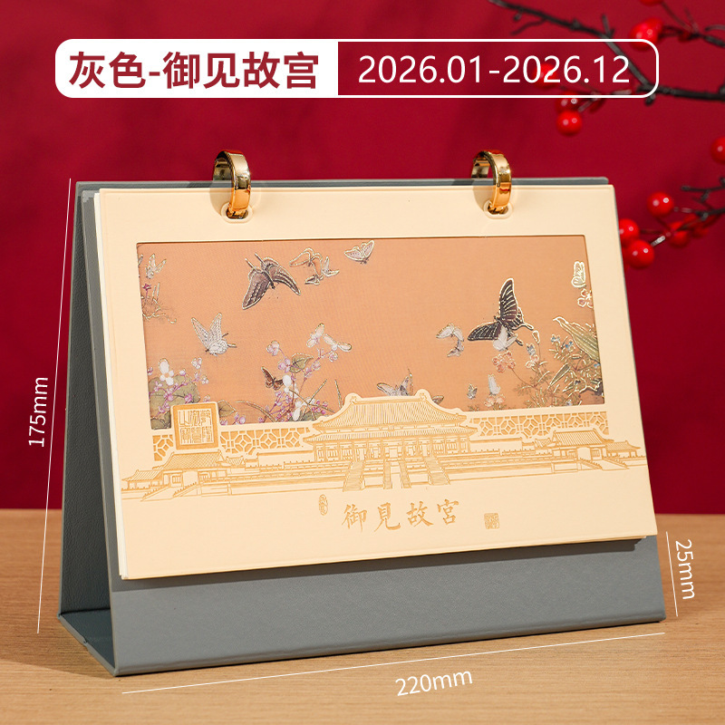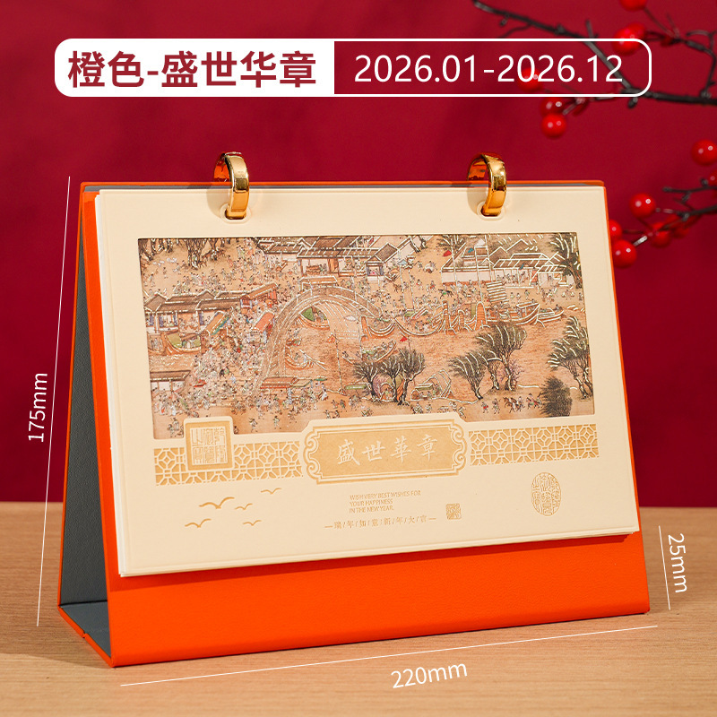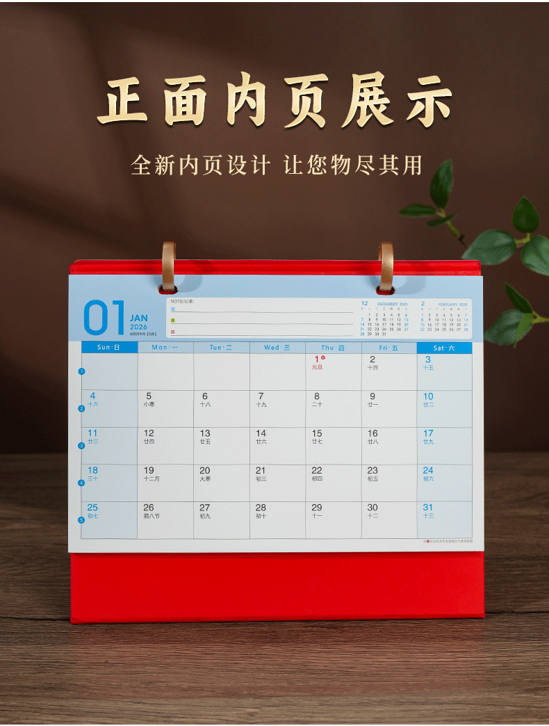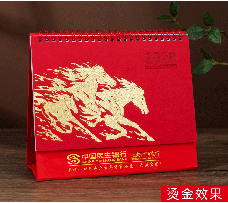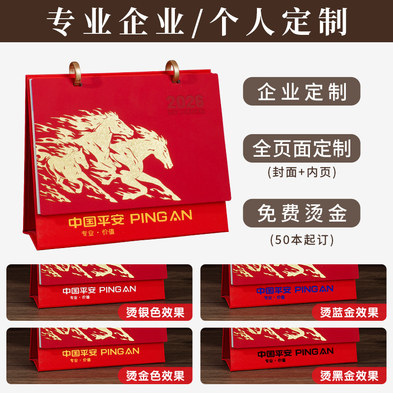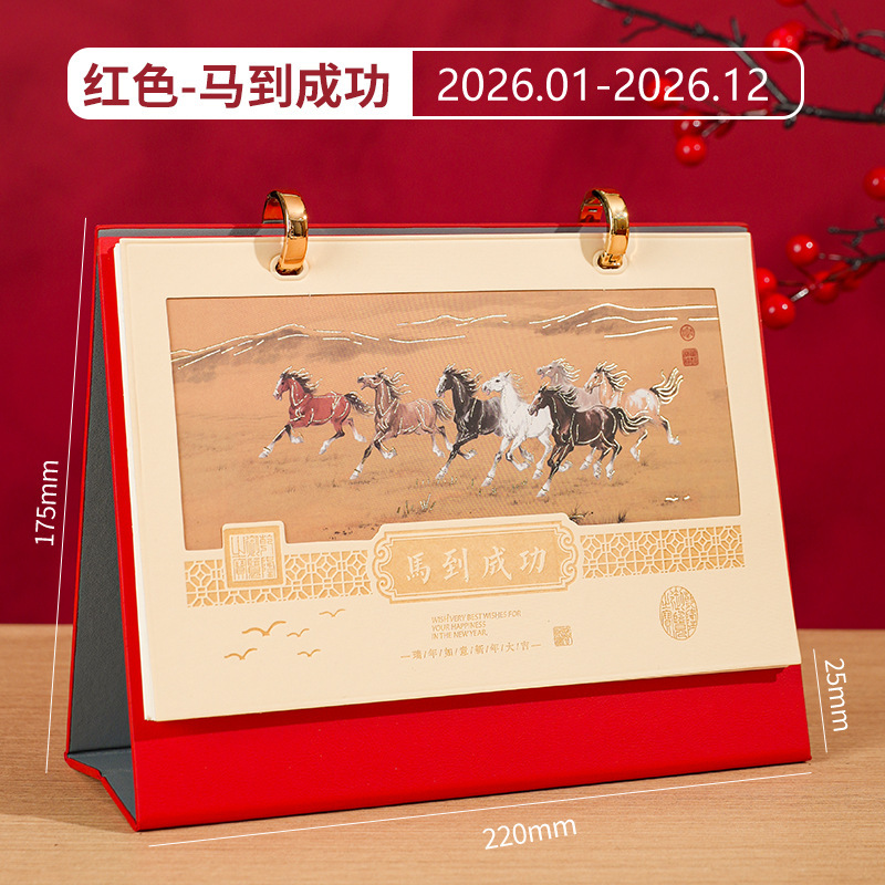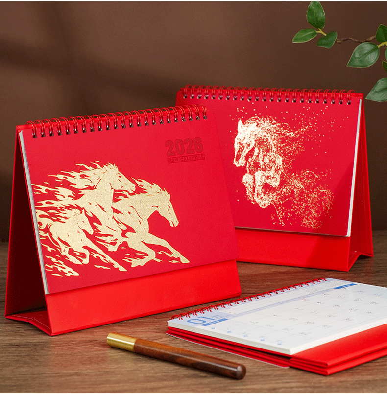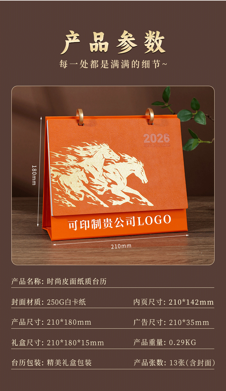2026年简约皮质台历马年创意记事打卡日历月历桌面摆件台历定制