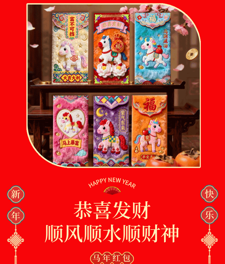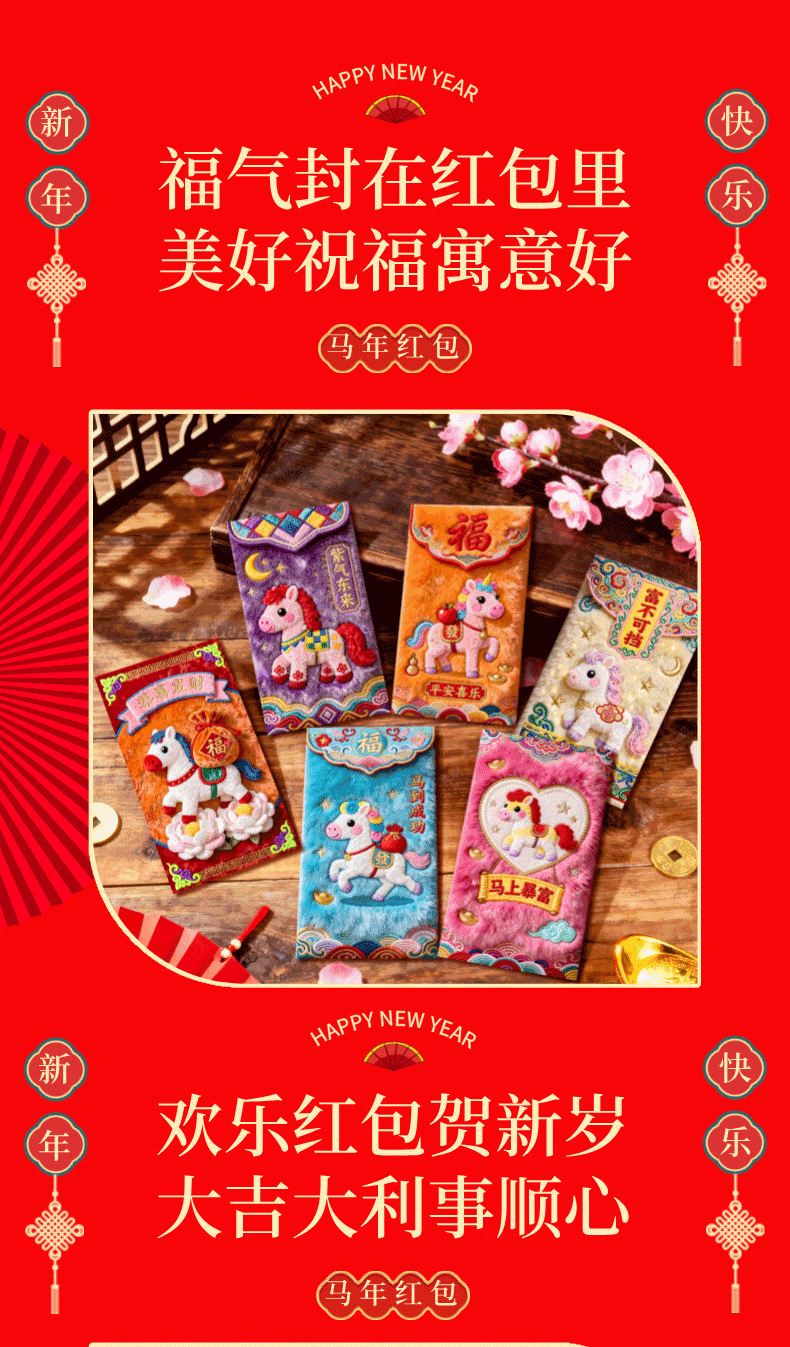 新款2026马年仿真5D打印刺绣小马红包利是封包个性创意春节压岁包