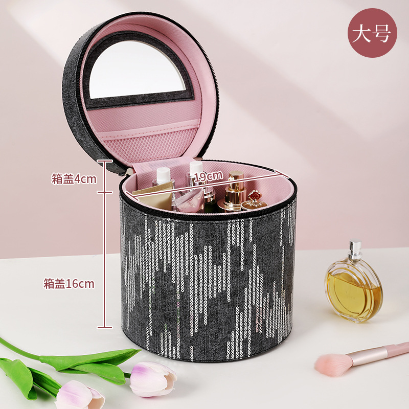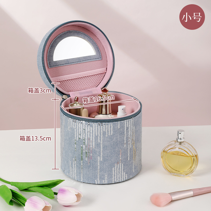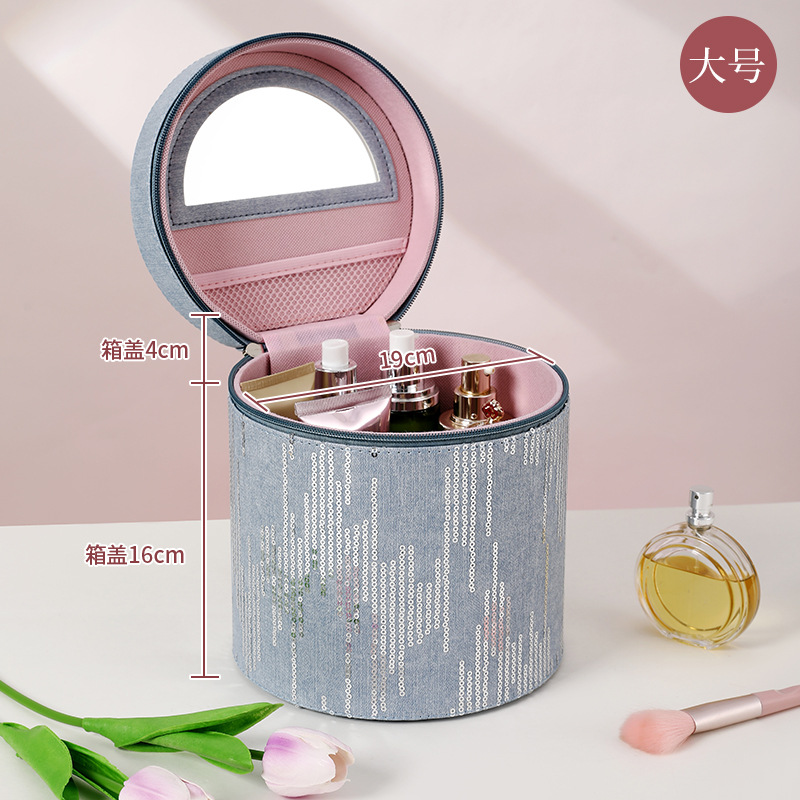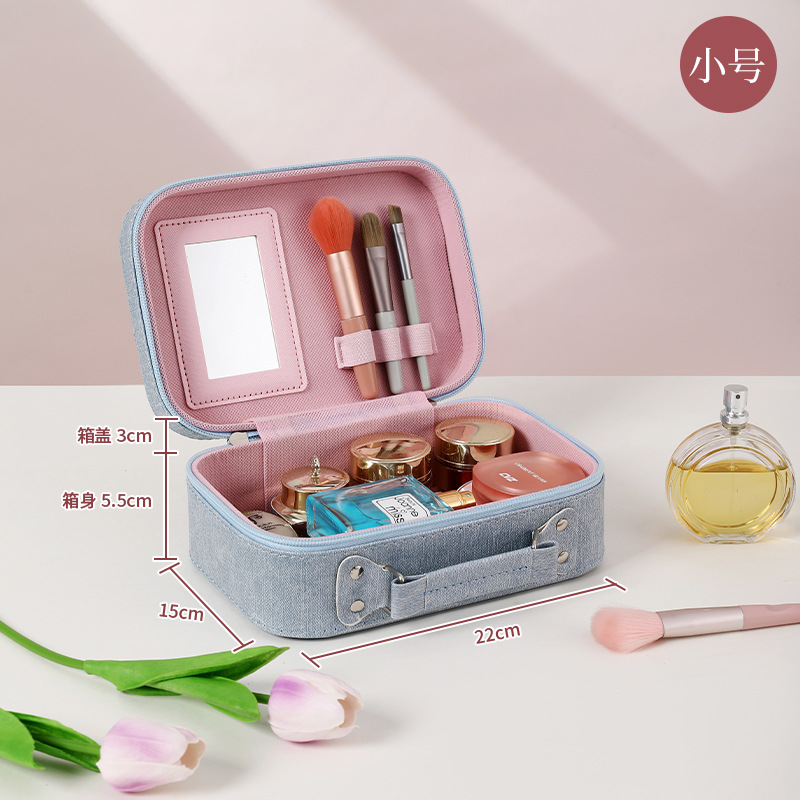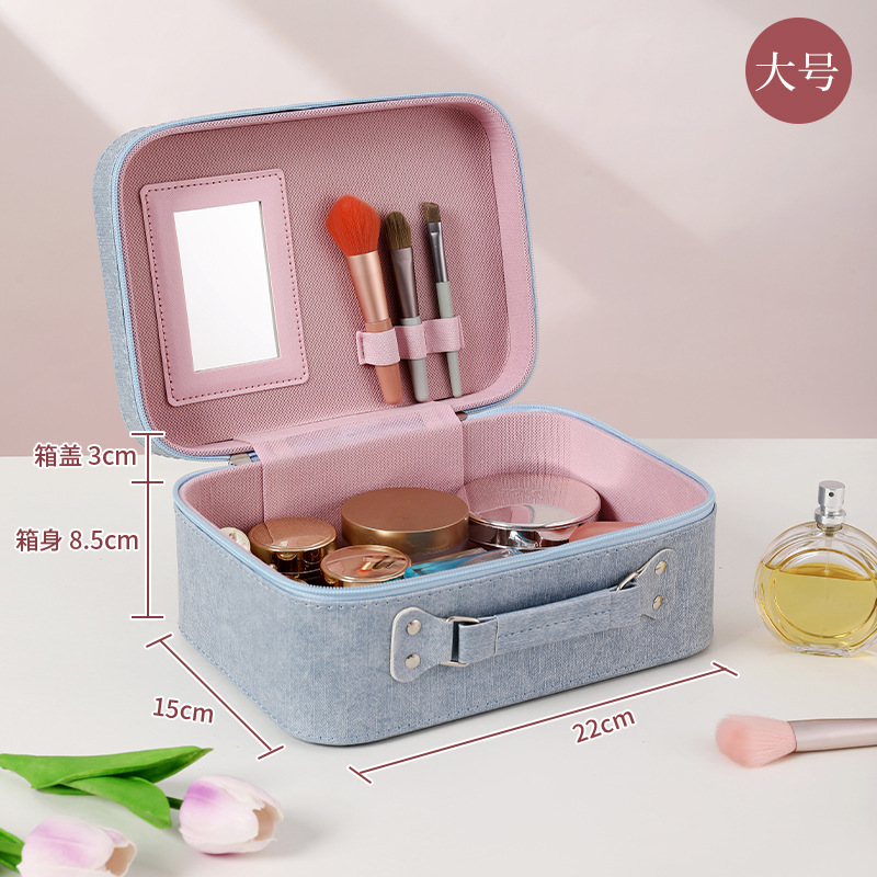 简约时尚化妆箱大容量 8012牛仔绣亮片化妆包护肤品化妆品收纳箱