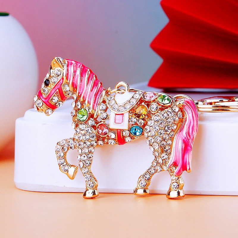 马到成功水钻小马汽车钥匙扣女包挂件金属钥匙链圈马年生肖小礼品