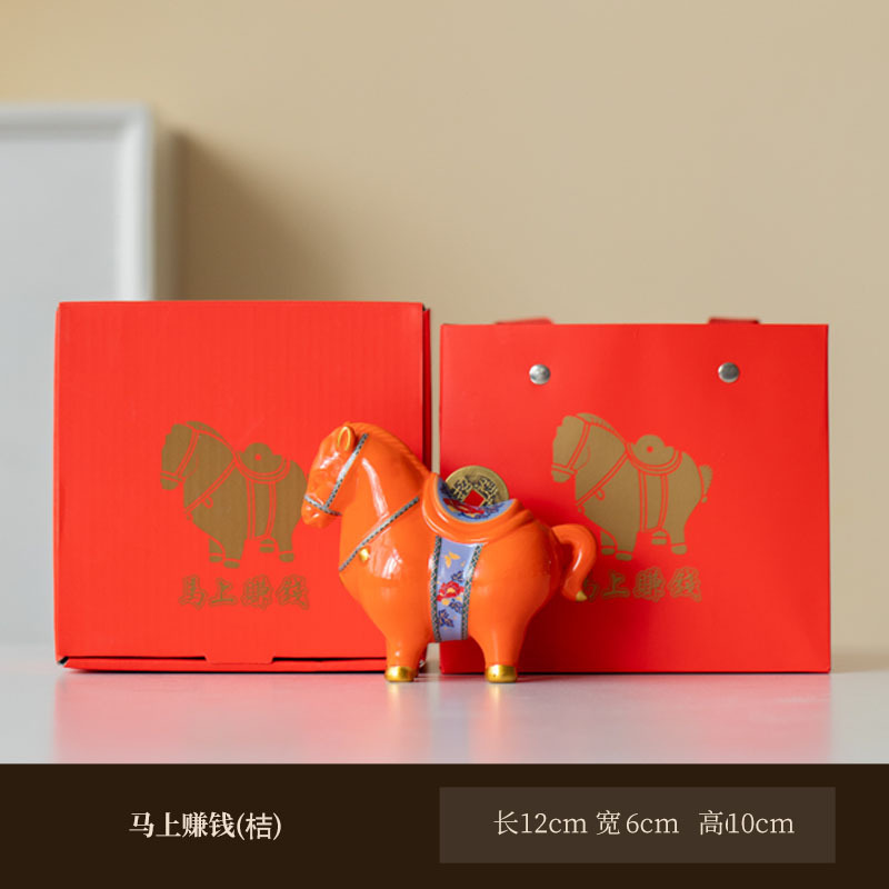 马年摆件马上有钱新中式客厅电视柜玄关办公室装饰品开业乔迁送礼