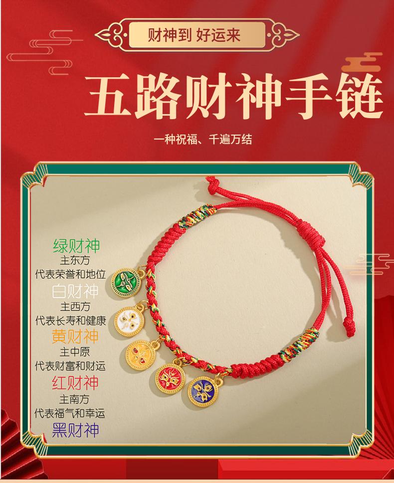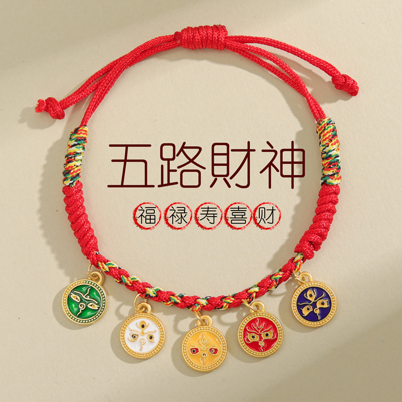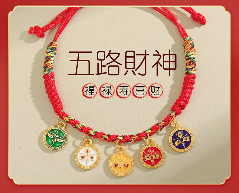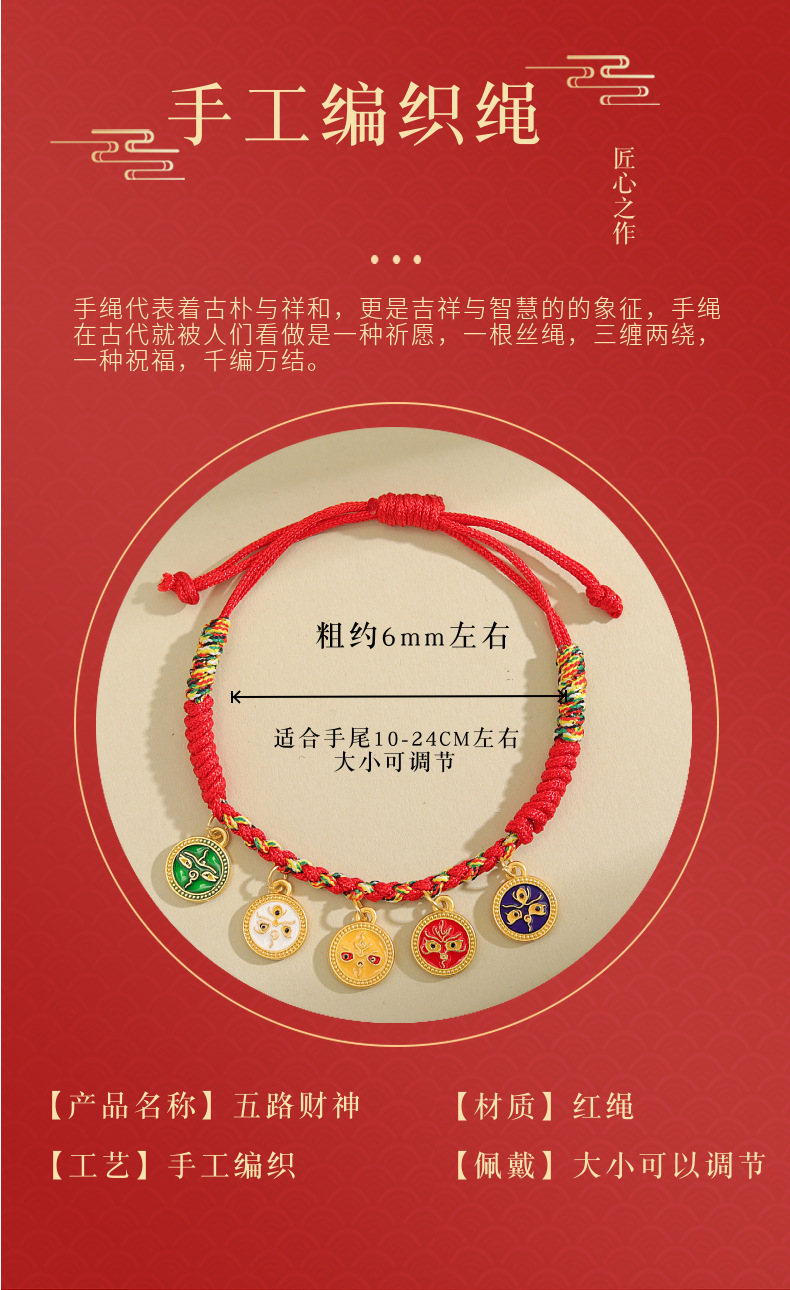 本命年马年红绳手链手工编织绳男女五路财神手绳马上有钱新年红绳