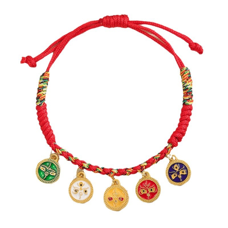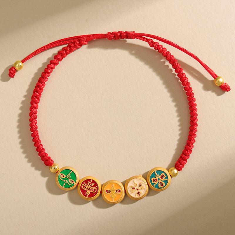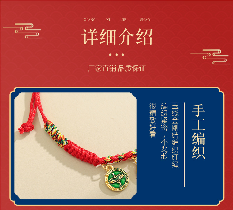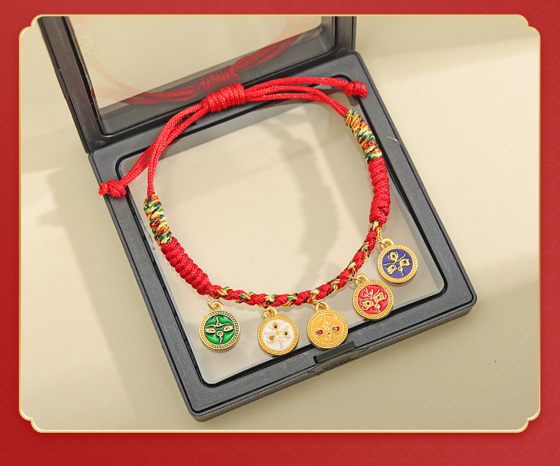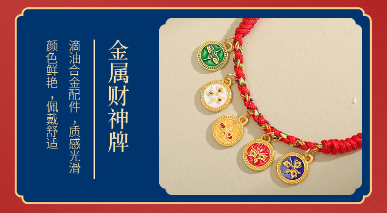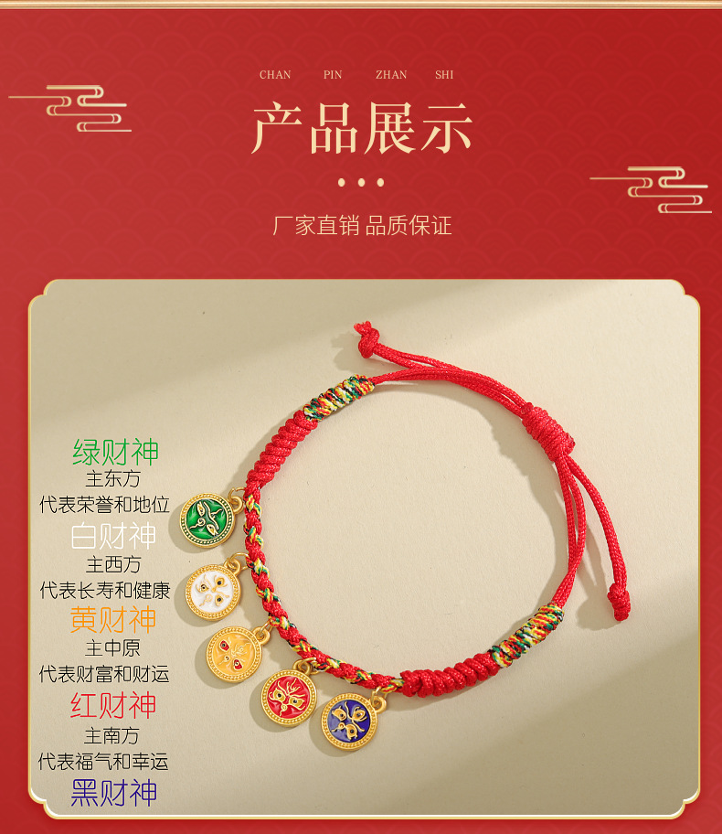 本命年马年红绳手链手工编织绳男女五路财神手绳马上有钱新年红绳