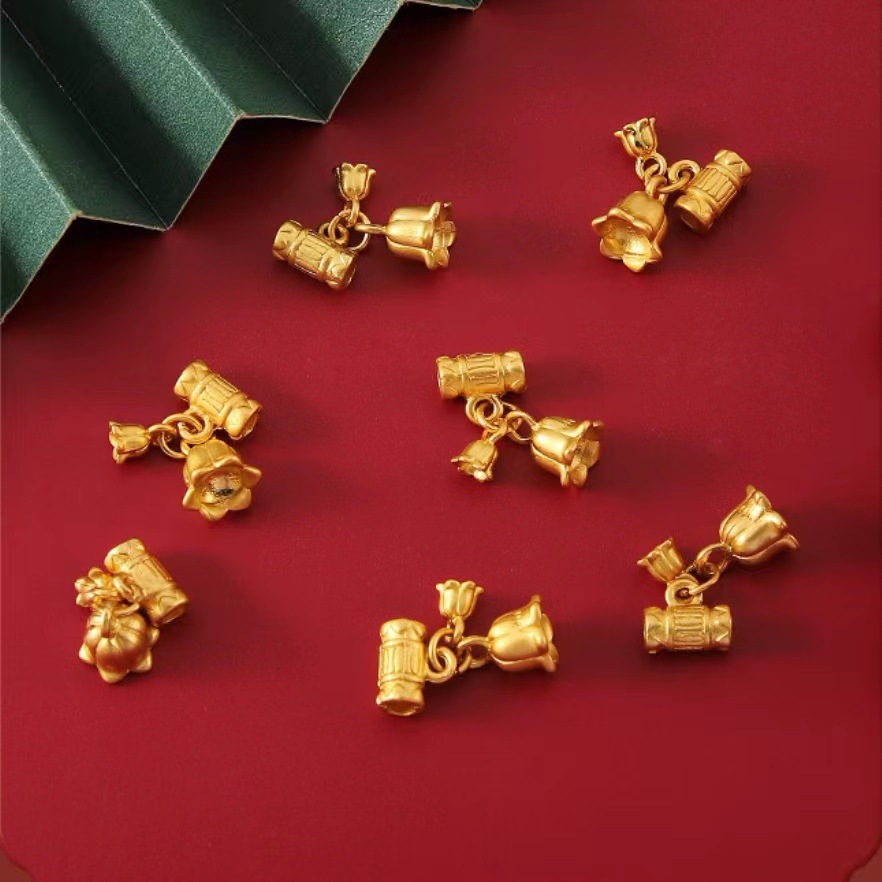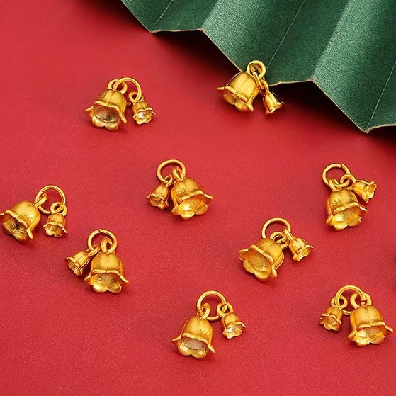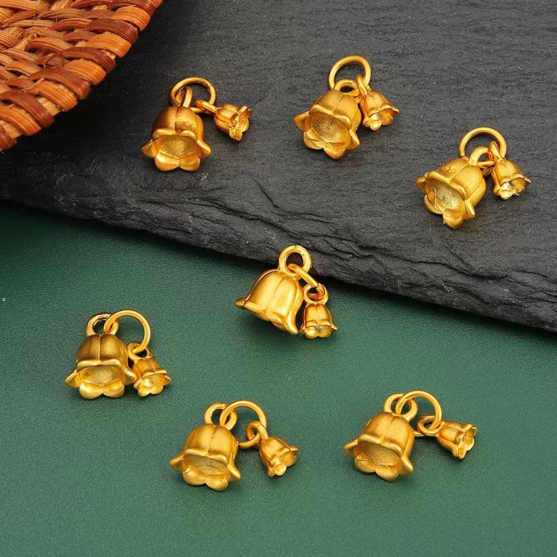 古法金保色铃兰花两世欢隔珠 diy饰品哑金锌合金手链串珠挂件配饰