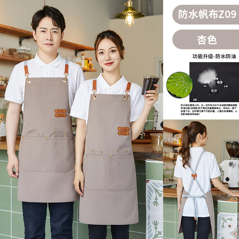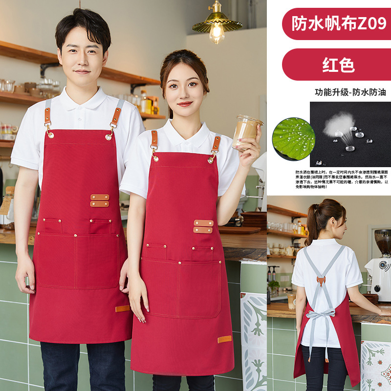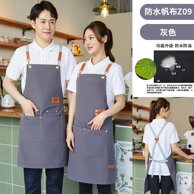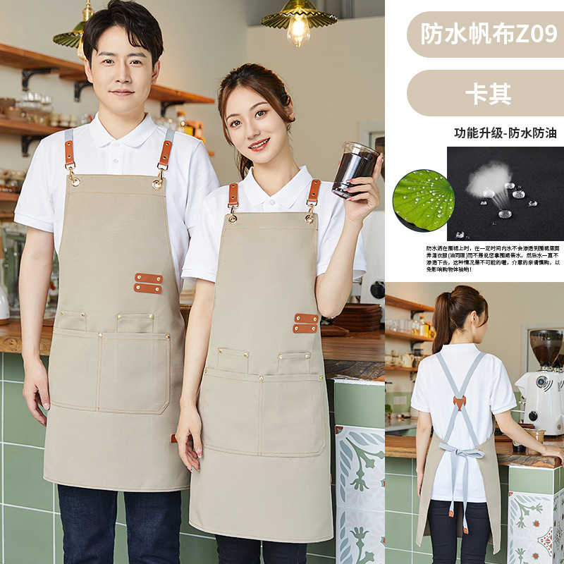 帆布防水围裙厨房家用餐饮专用定制logo印字咖啡店工作服工装男女