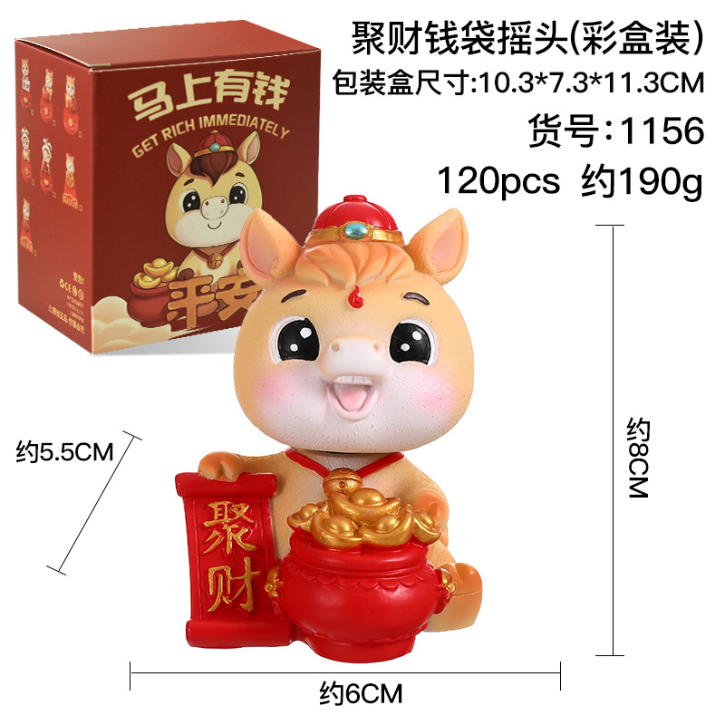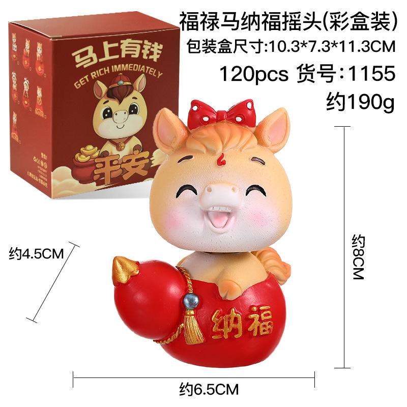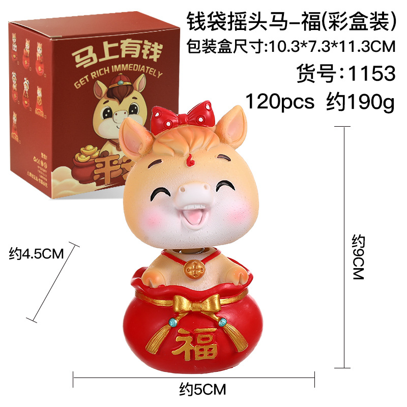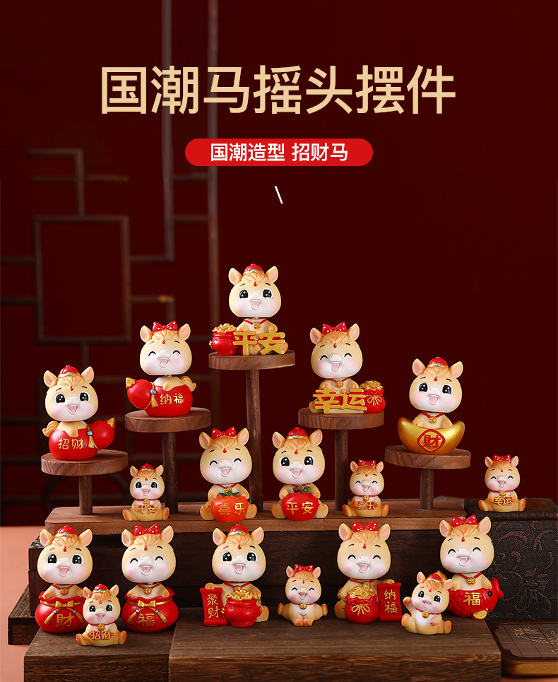 新年国潮摇头马摆件创意生肖马汽车装饰入户家居客厅玄关桌面办公