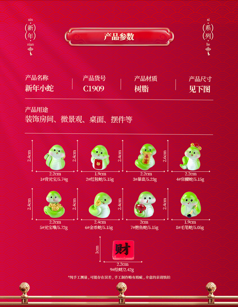 新品微景观创意新年生肖红包元宝小蛇 DIY装饰配件迷你桌面小摆件