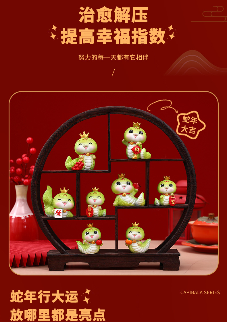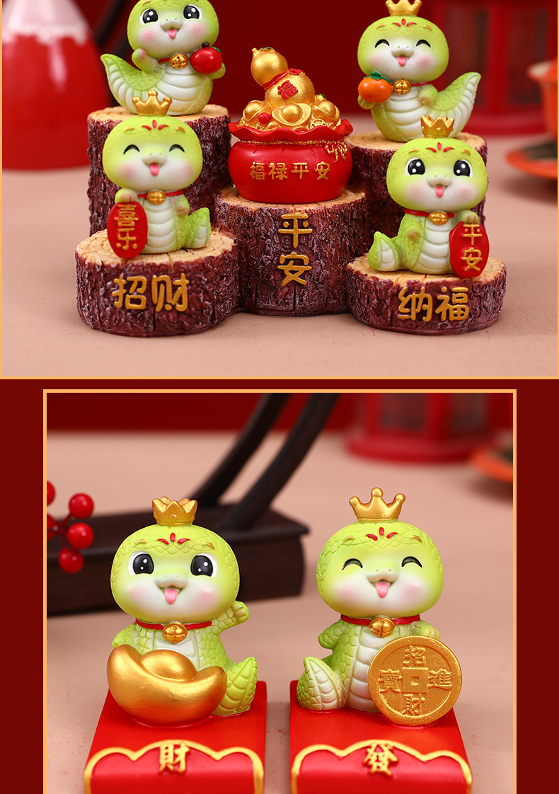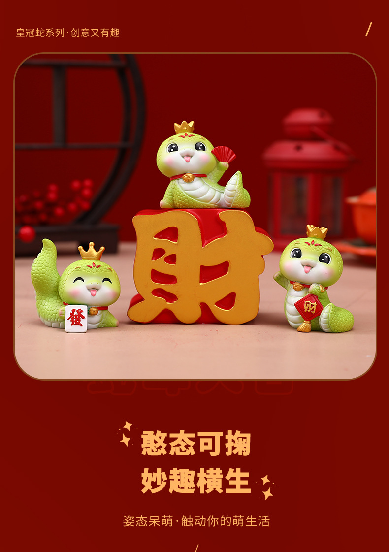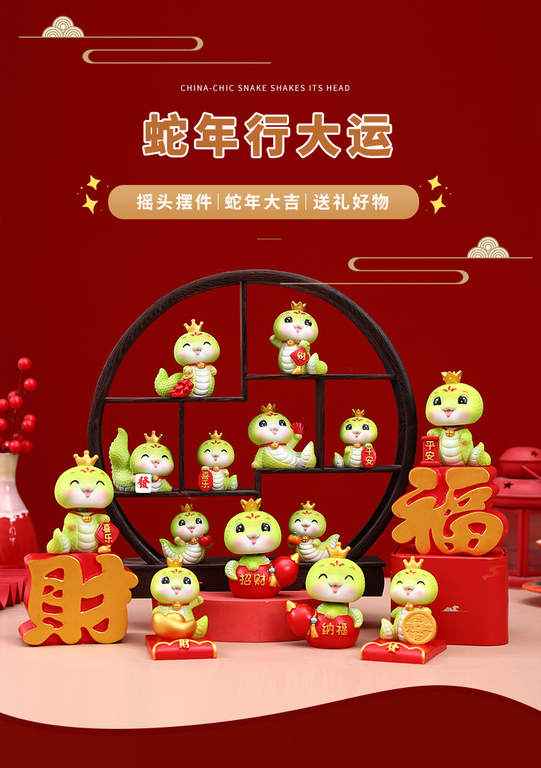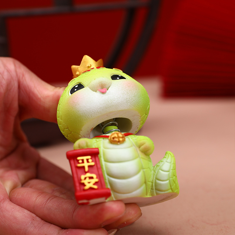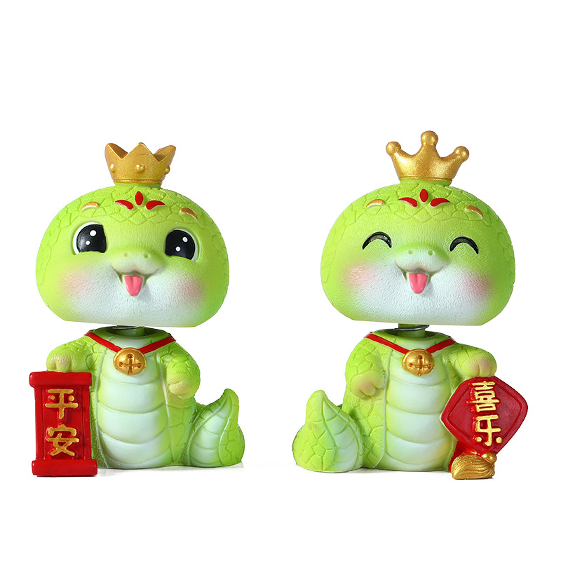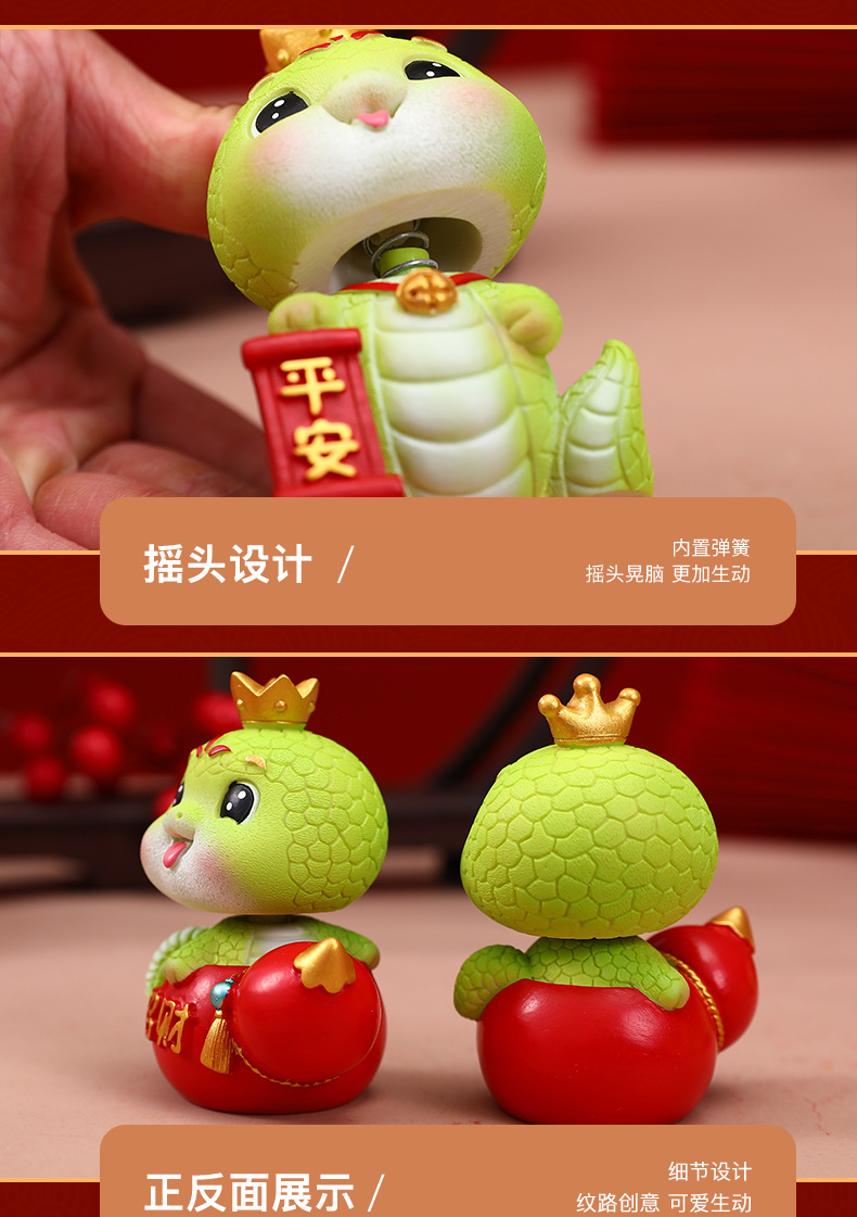 皇冠蛇摇头小摆件生肖蛇年工艺品国潮家居装饰吉祥物蛇宝公仔新款