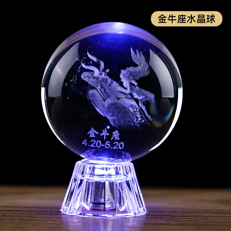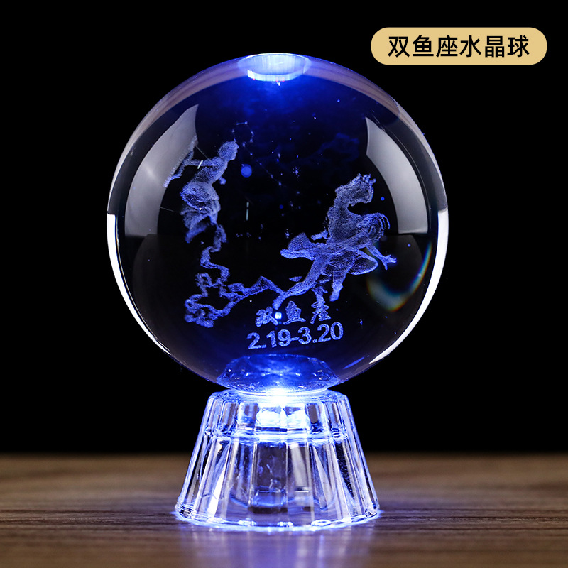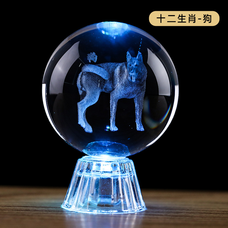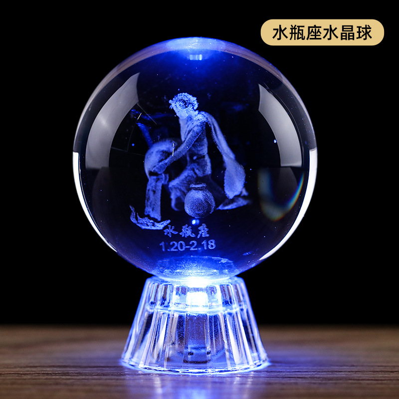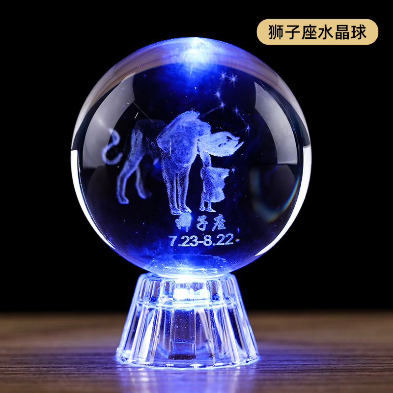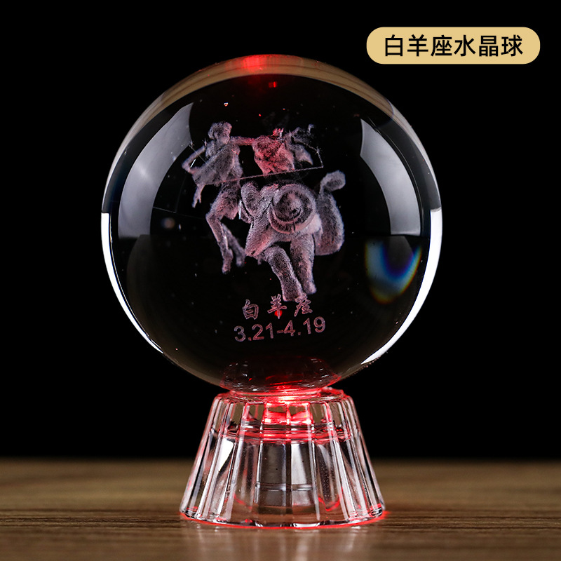 达姿新款创意十二星座水晶球内雕水晶玻璃工艺品摆件十二生肖家居