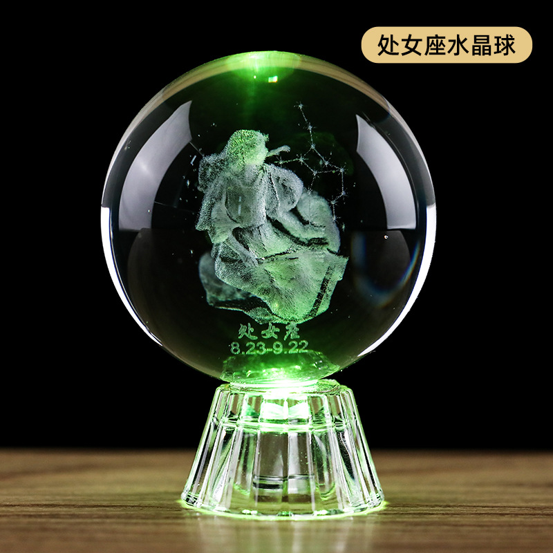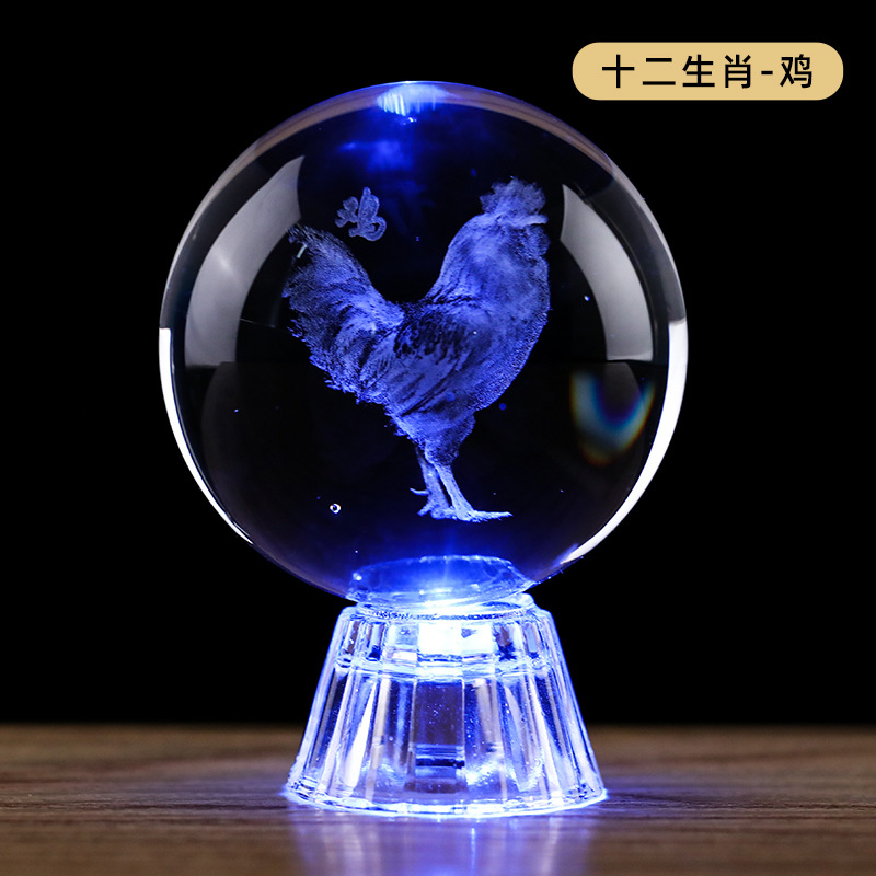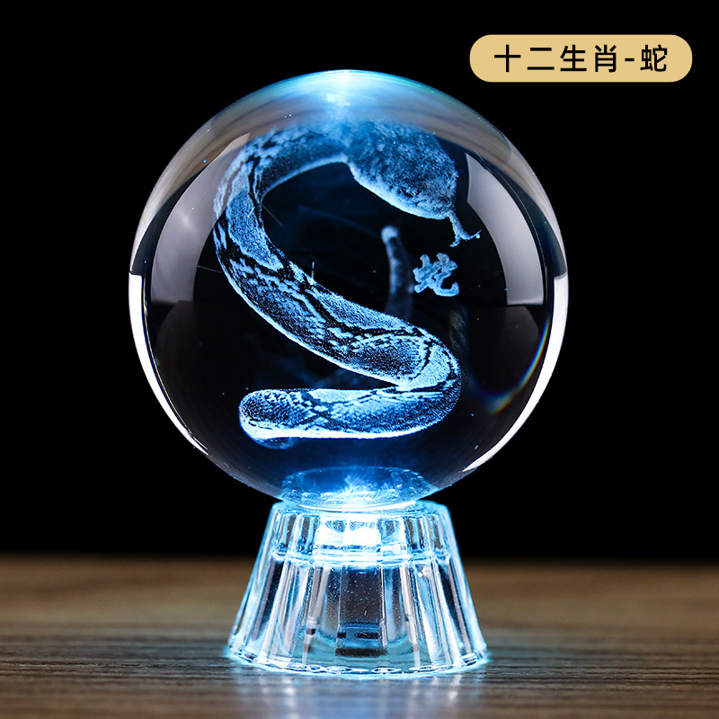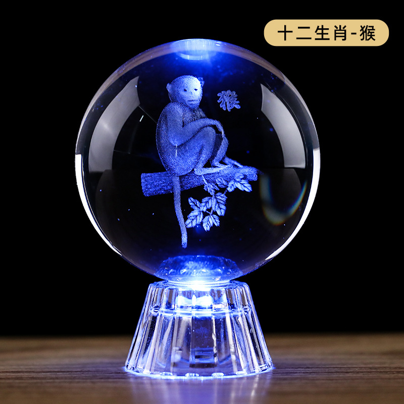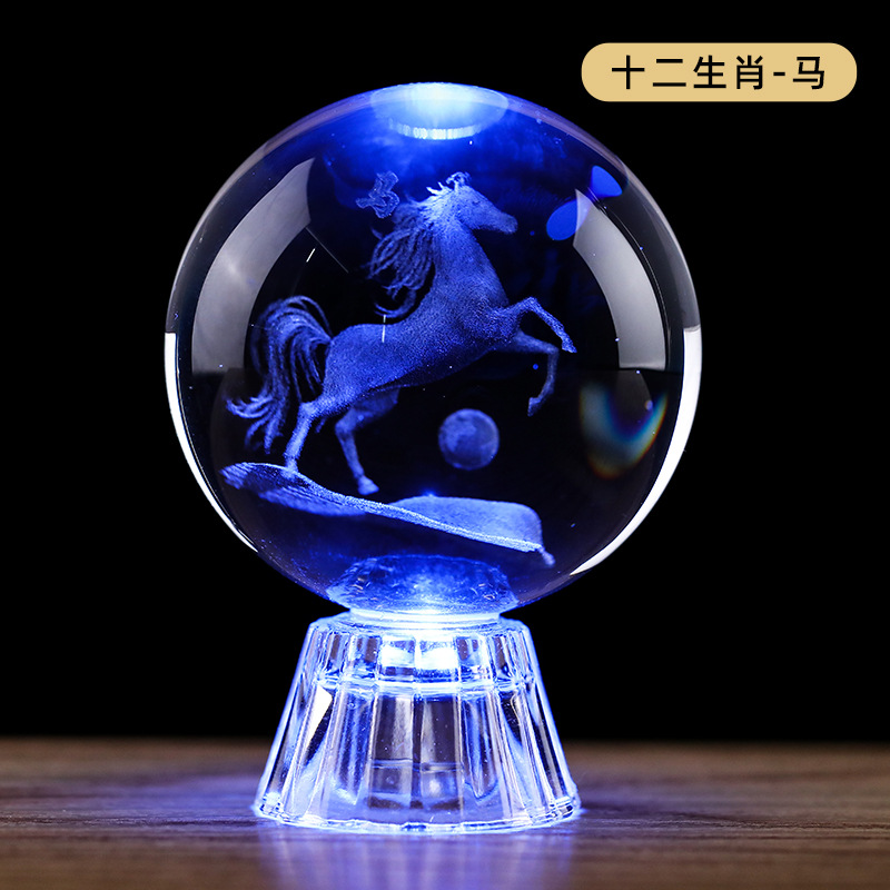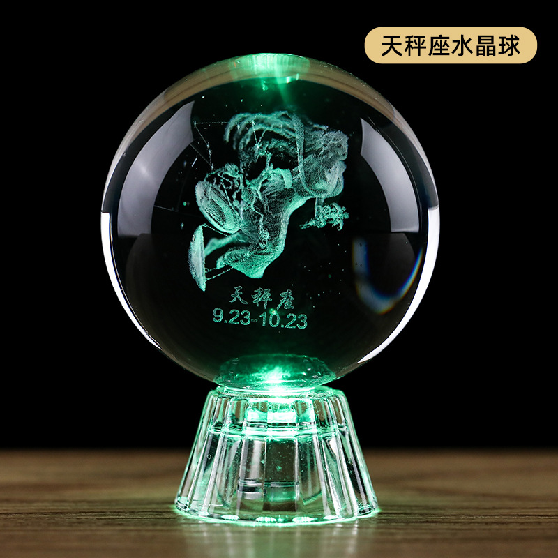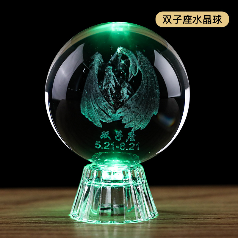 达姿新款创意十二星座水晶球内雕水晶玻璃工艺品摆件十二生肖家居