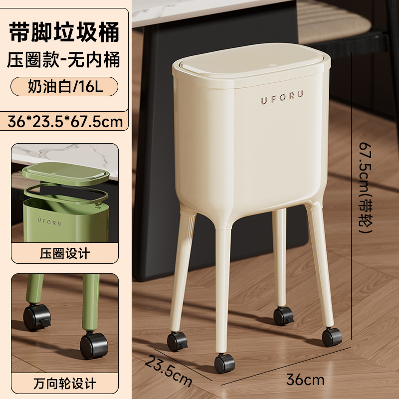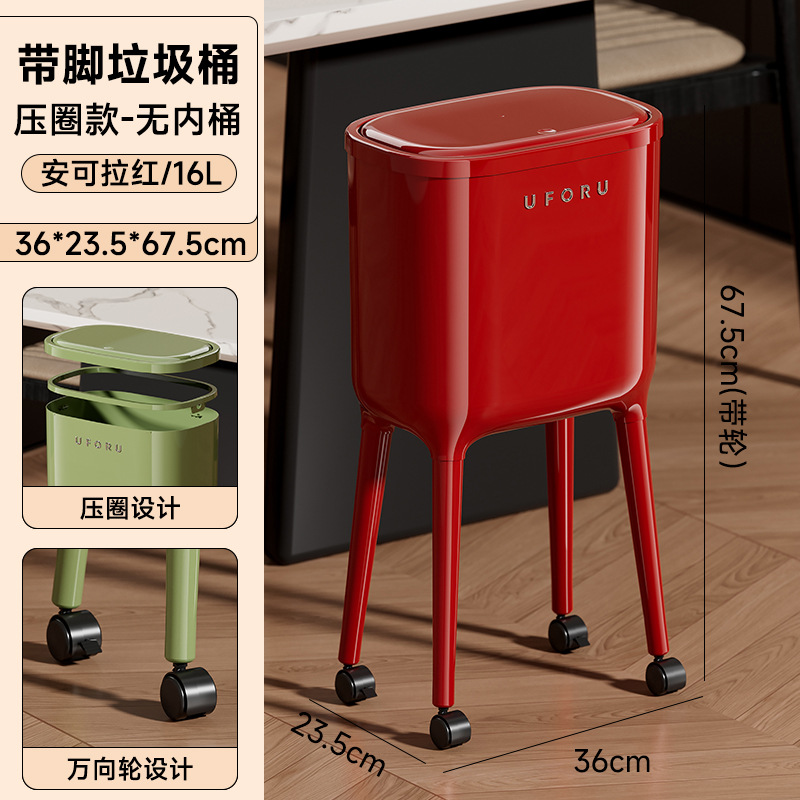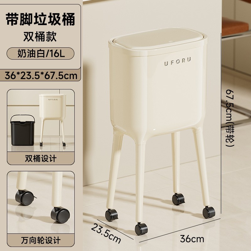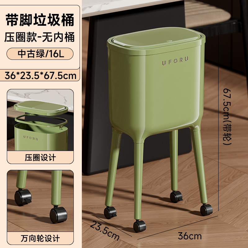免弯腰高脚垃圾桶厨房家用高级感客厅轻奢大容量可移动带盖垃圾筒