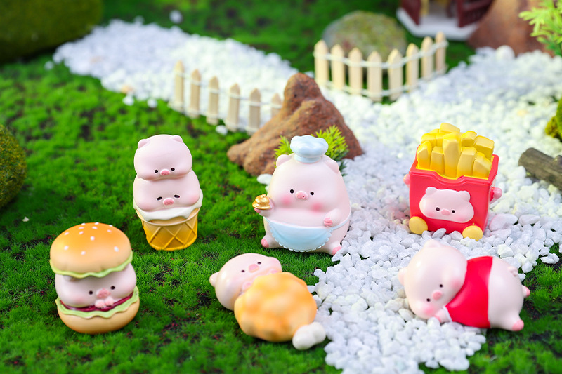 ins少女心猪猪汉堡餐厅摆件可爱猪猪迷你公仔桌面装饰品厂家现货