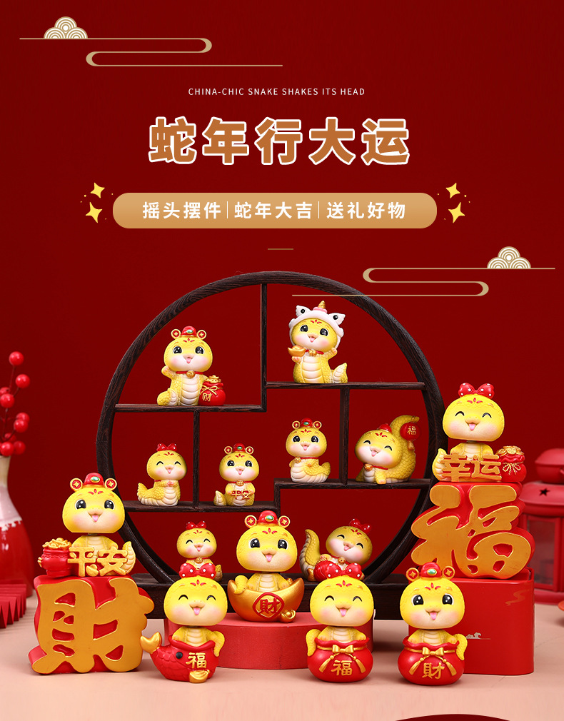 蛇年生肖礼品国潮蛇卡通公仔吉祥物桌面摆件卡通玩偶年会伴手礼新