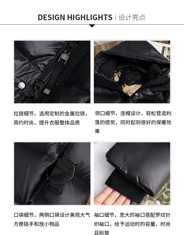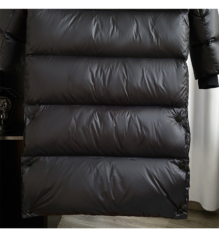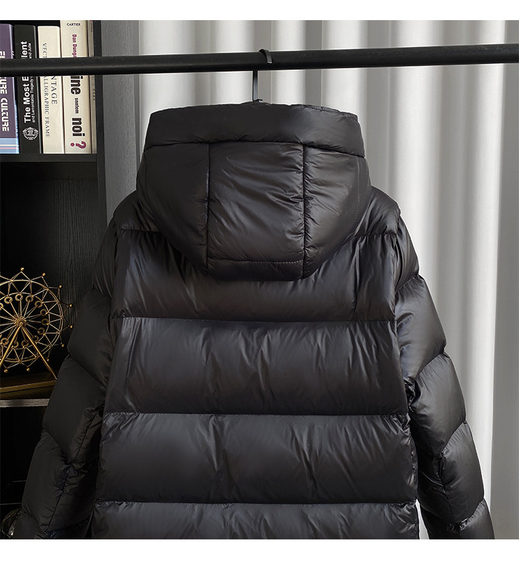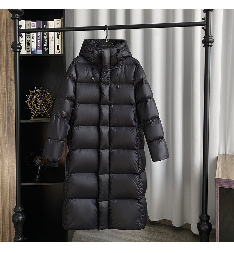 2024冬新款黑金新国标白鸭绒中长款羽绒服女装气质连帽防风过膝