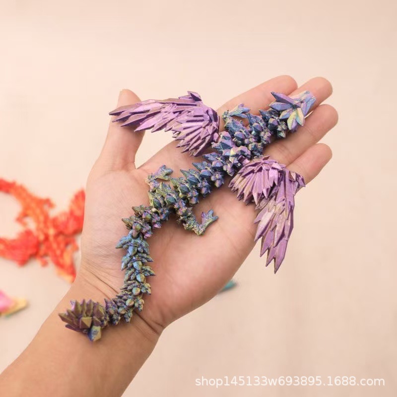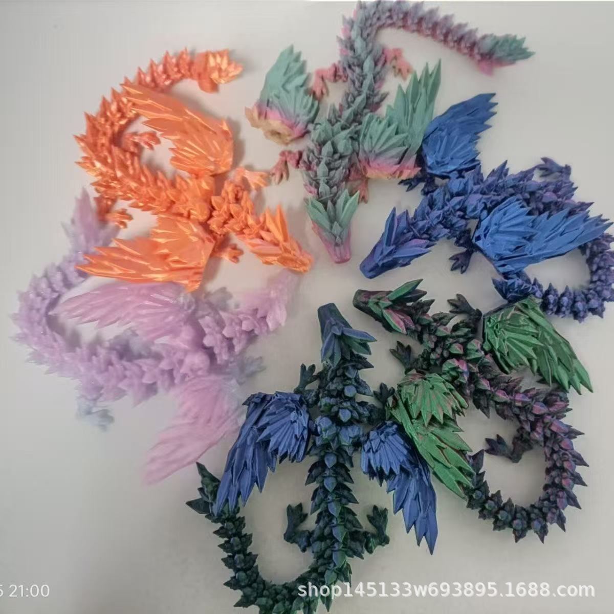 3d打印水晶长尾飞龙多关节可动带翅膀手办儿童玩具车载摆件礼物