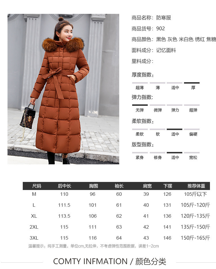 【现货】棉衣女冬季新款韩版长款过膝棉服女大毛领修身加厚棉袄女