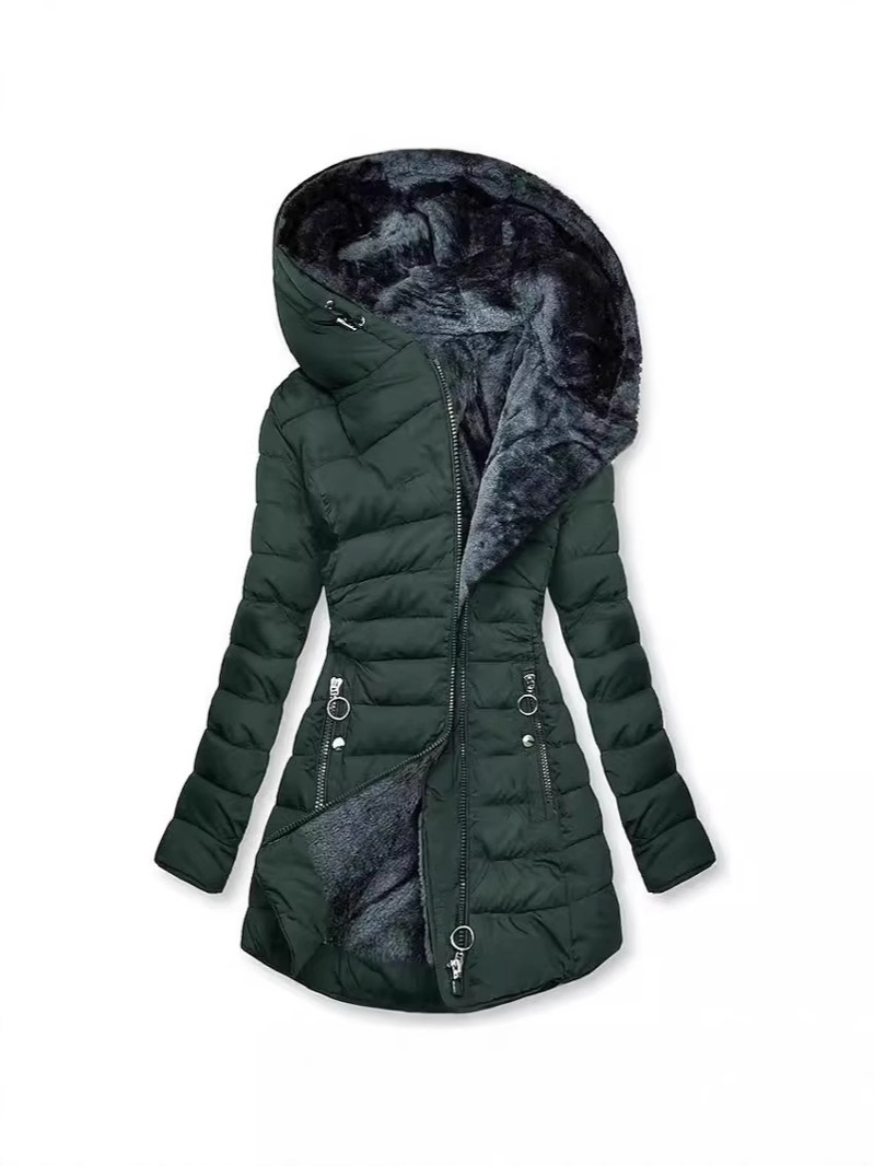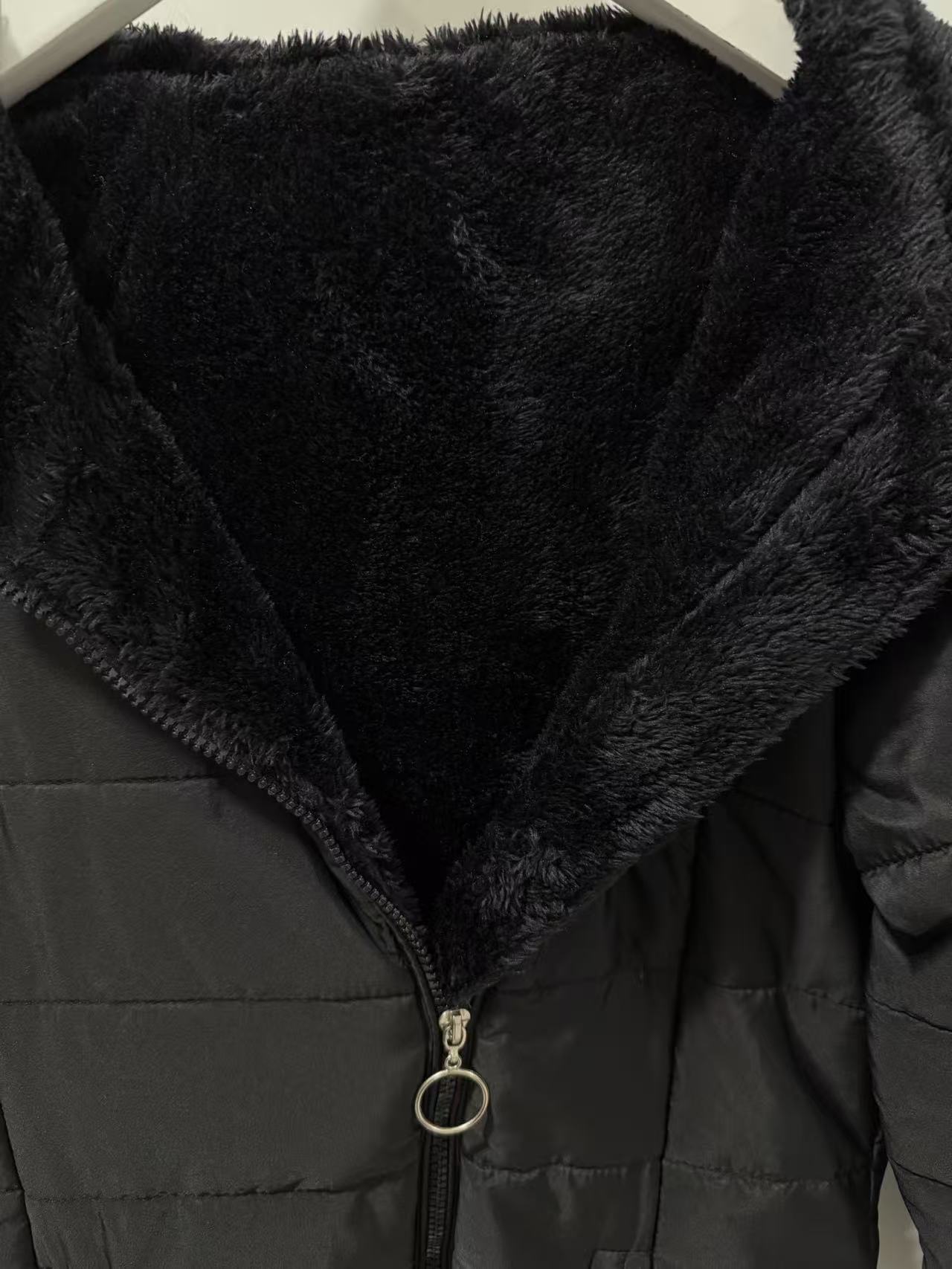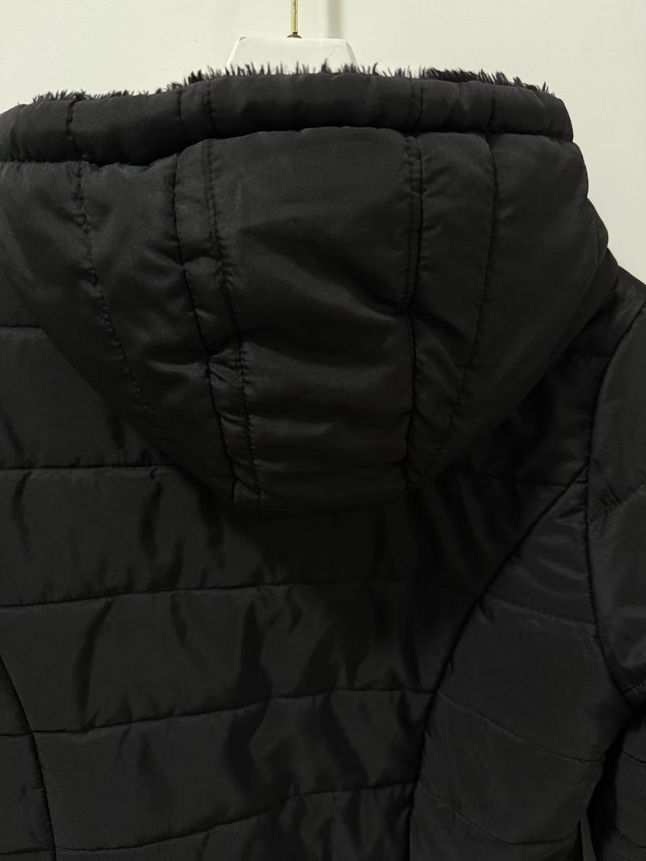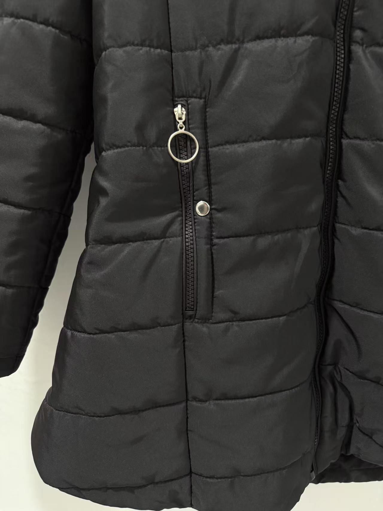 亚马逊冬季保暖毛领棉服女拉链长袖修身棉衣外套连帽大衣9060