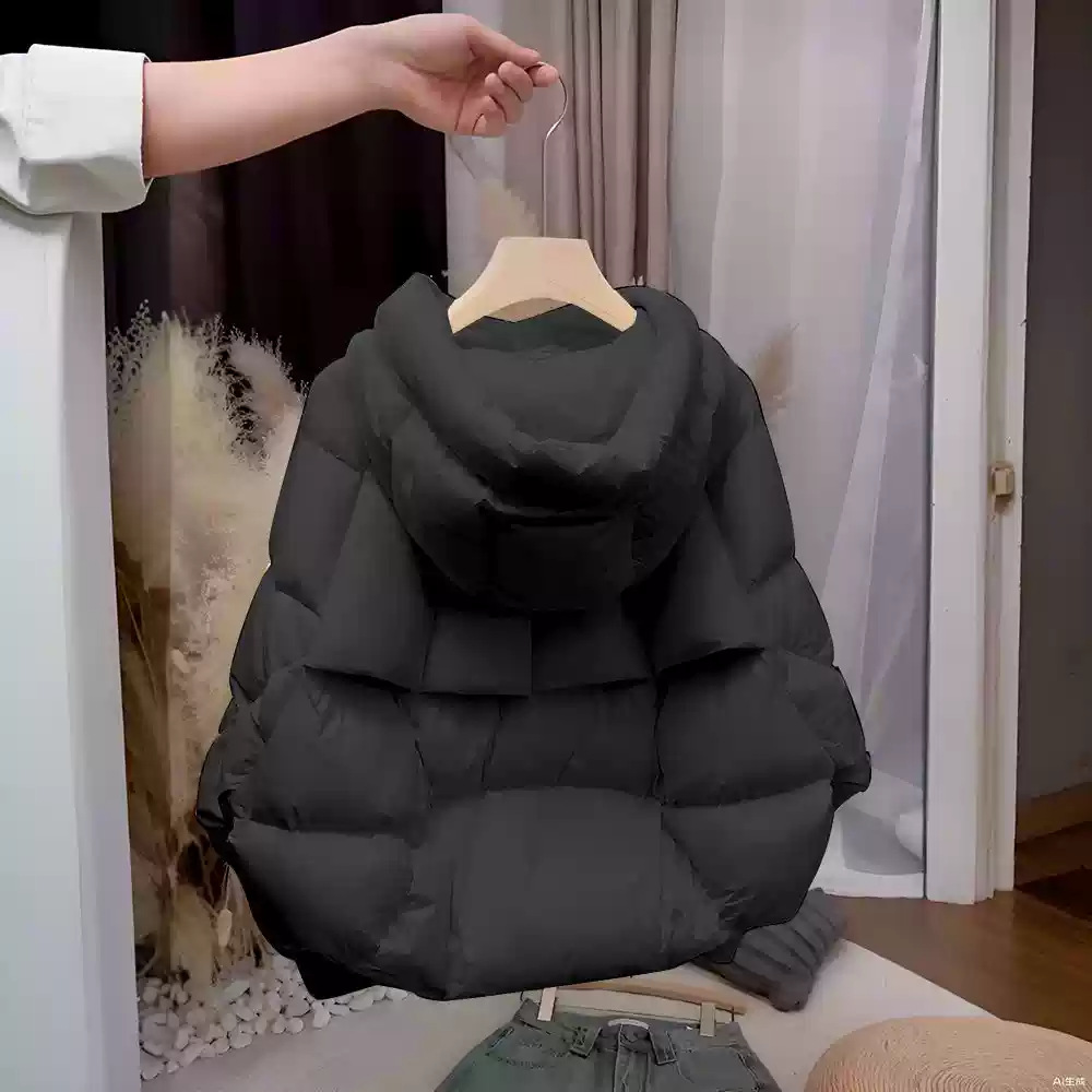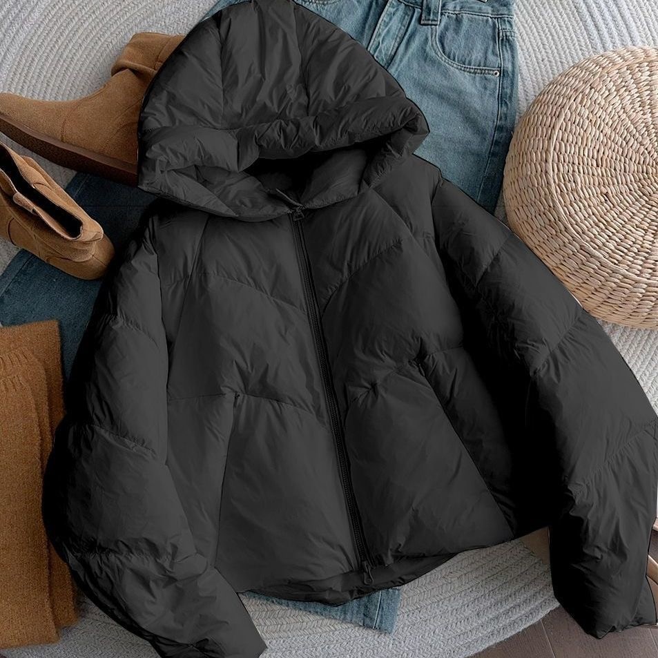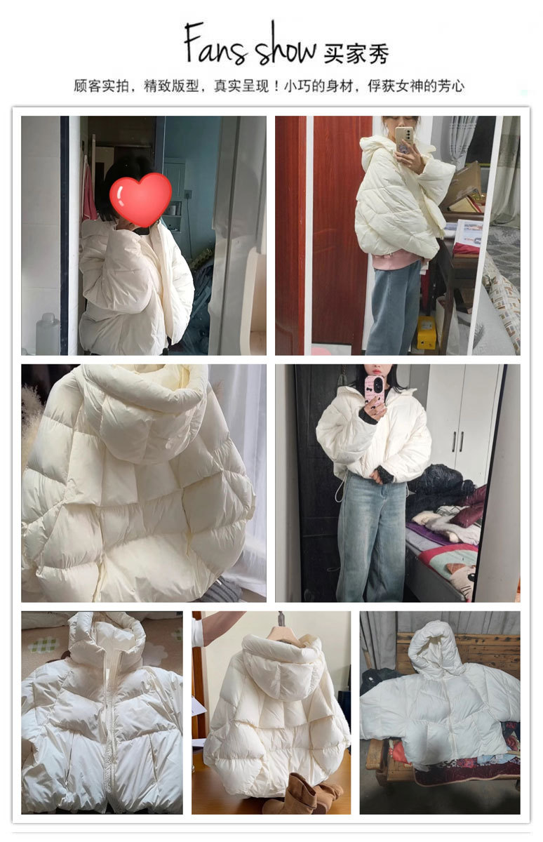 米白色短款连帽棉服外套女2025年冬季新款冬装棉衣面包服保暖棉袄