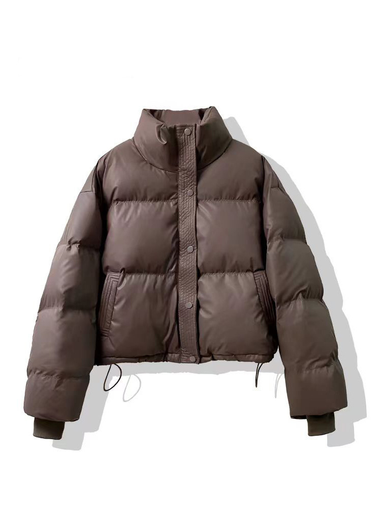 免洗PU皮新款棉服女短款2024新款宽松加厚面包服小个子棉袄外套潮