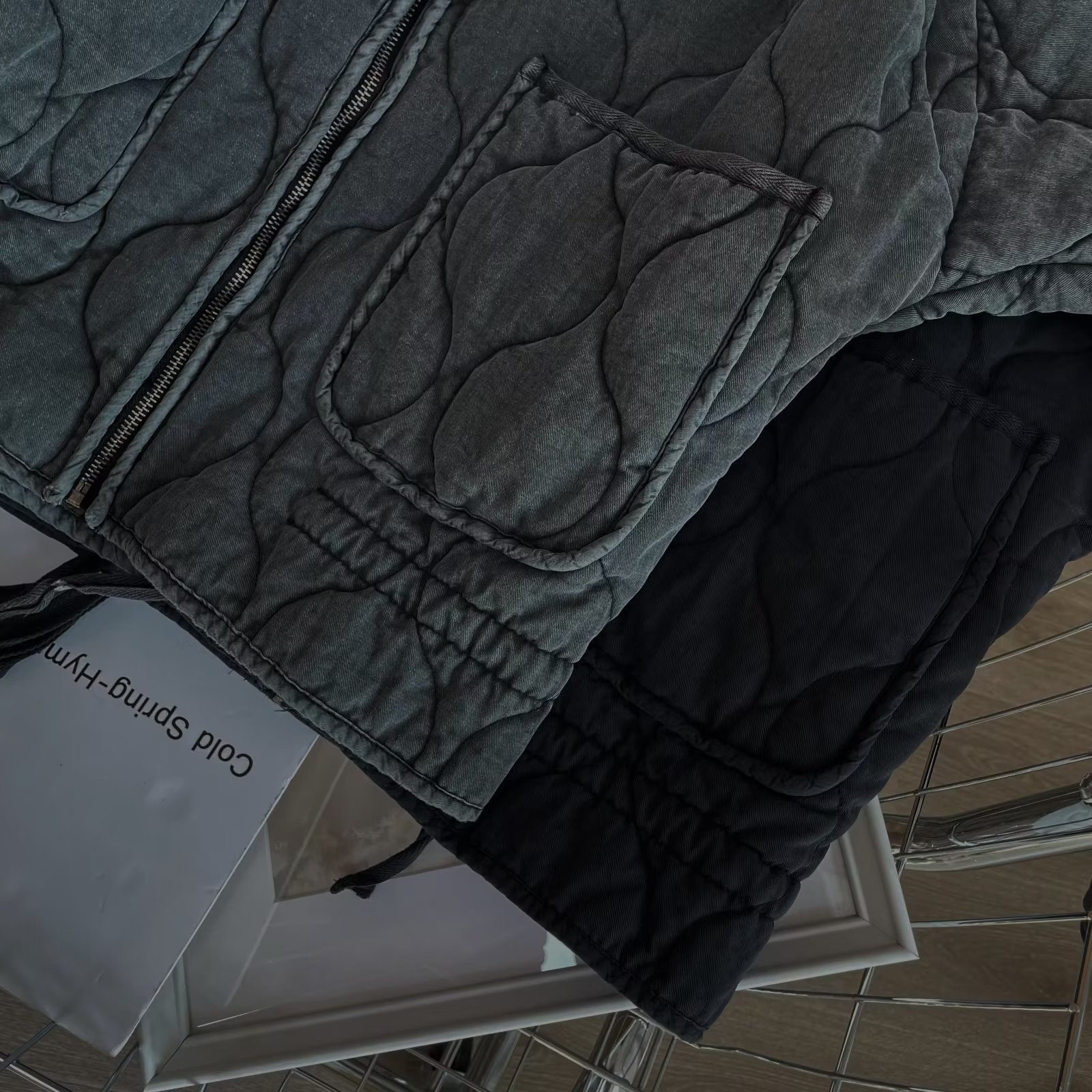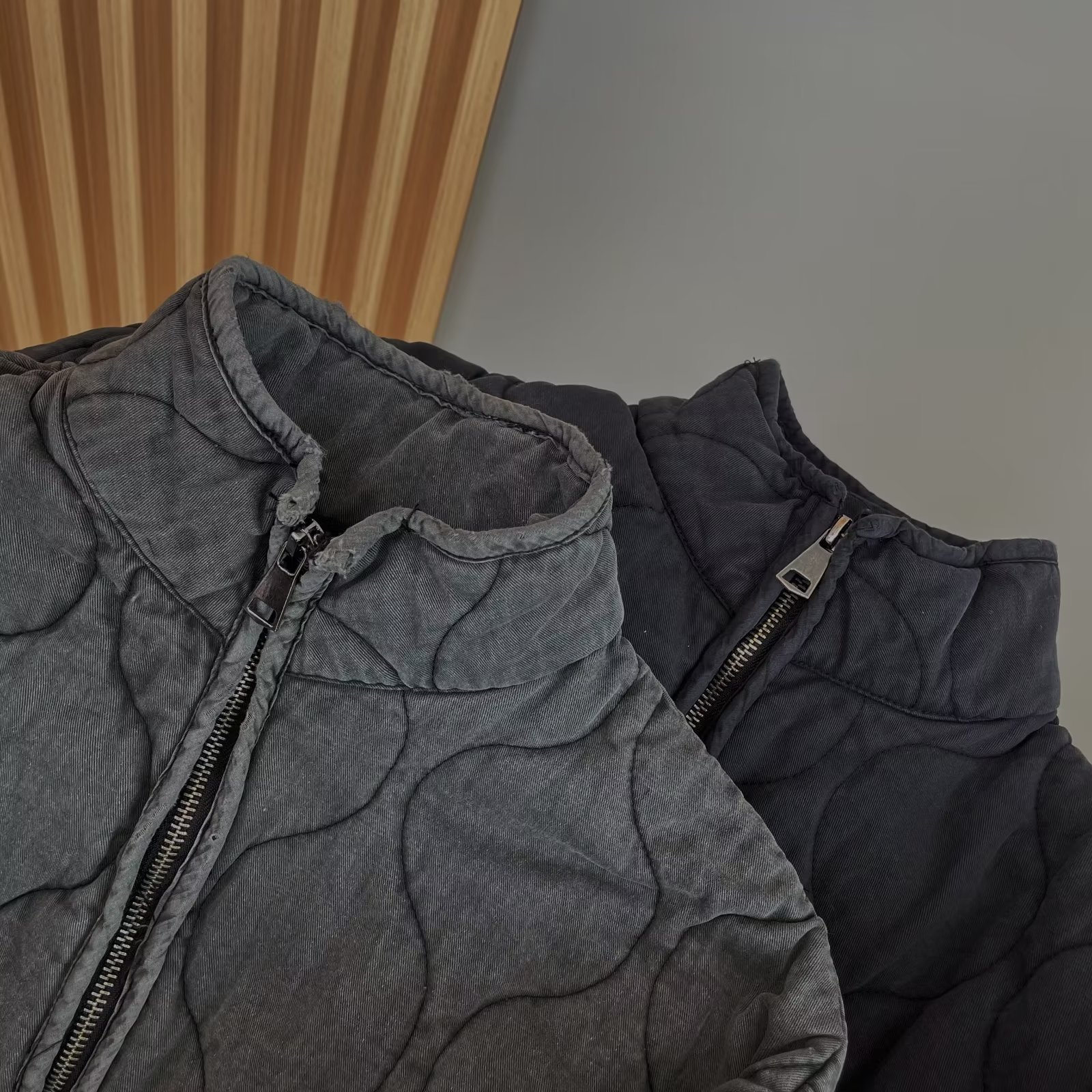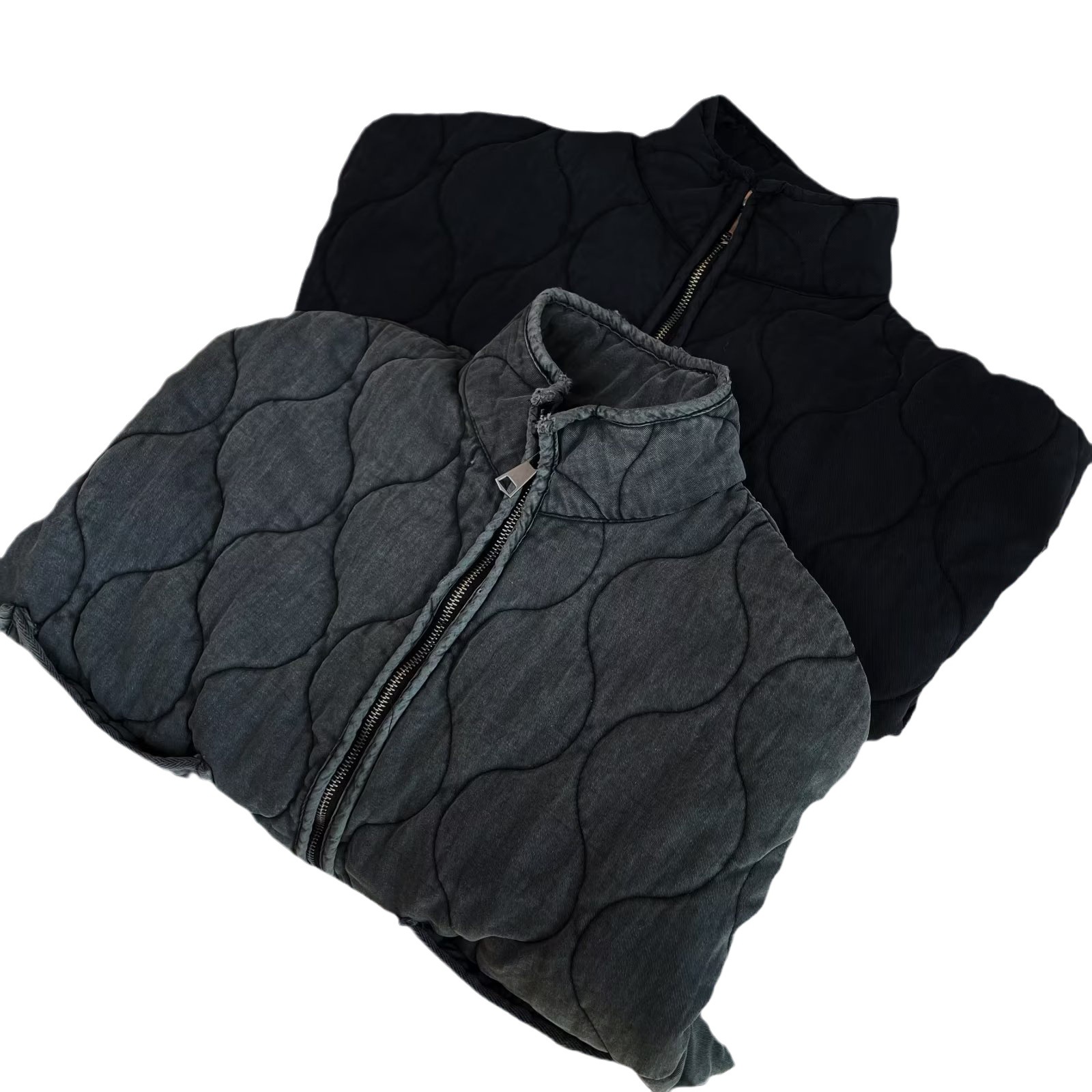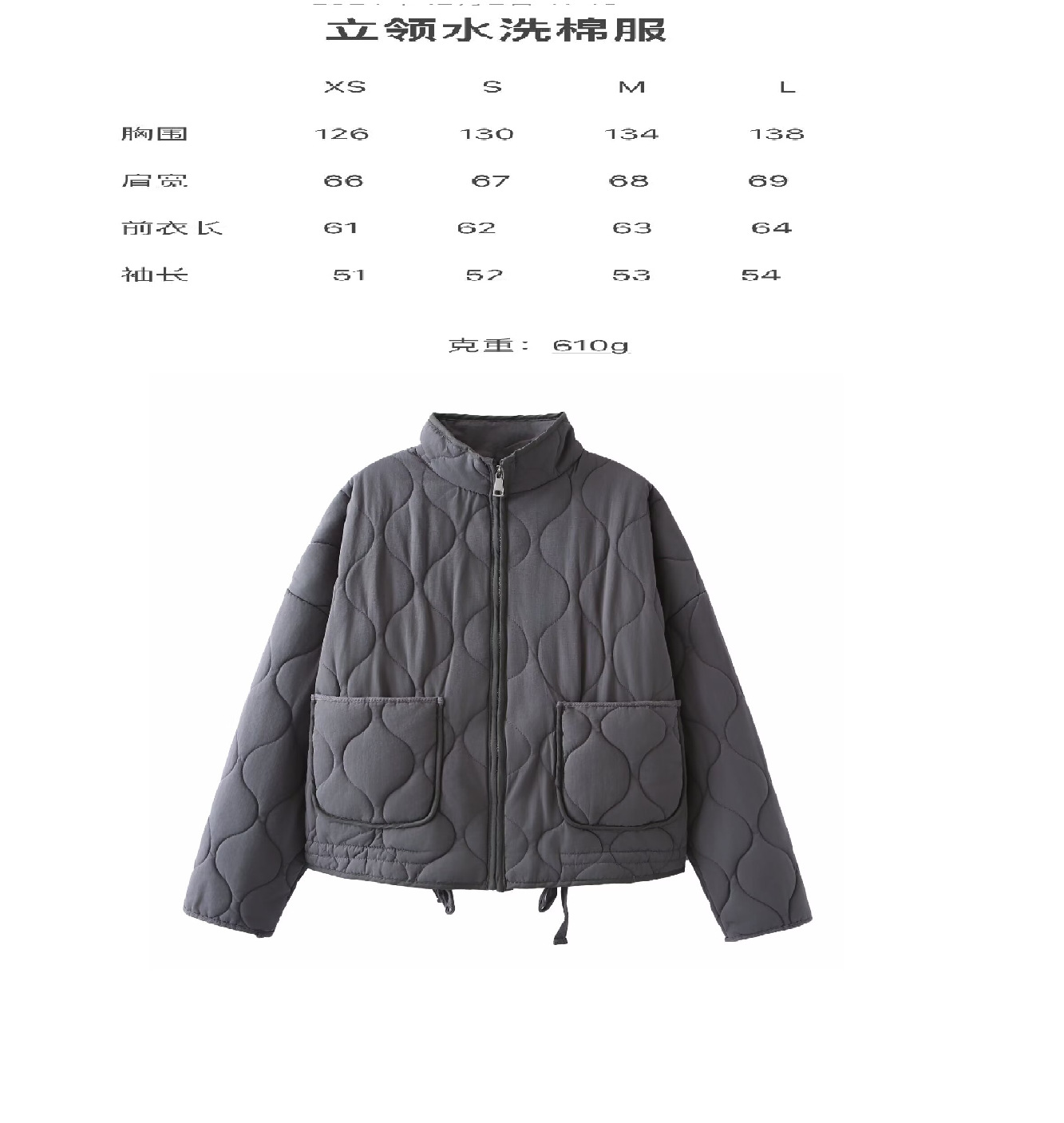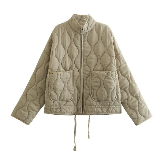 秋冬新款跨境欧美纯色立领拉链大口袋系带长袖棉服外套水洗棉衣女