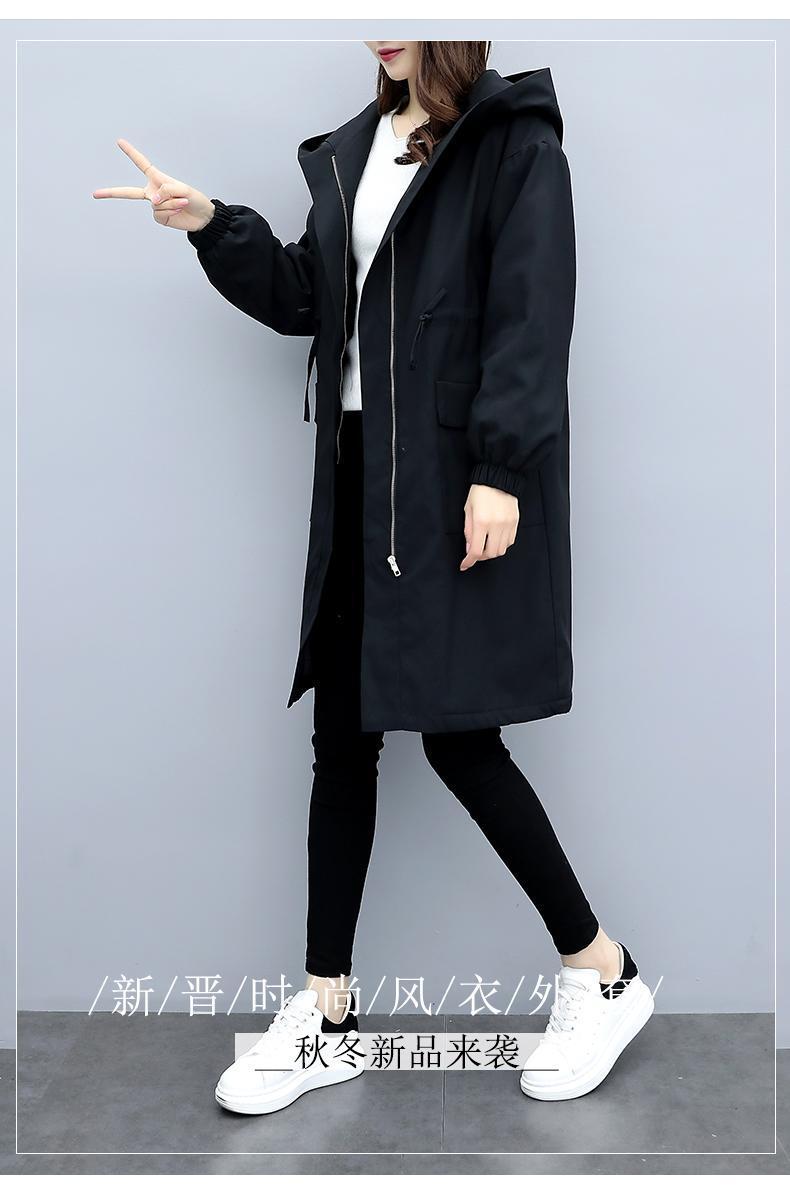 加绒加厚风衣女中长款外套女秋冬季2025连帽棉衣学生韩版宽松棉服