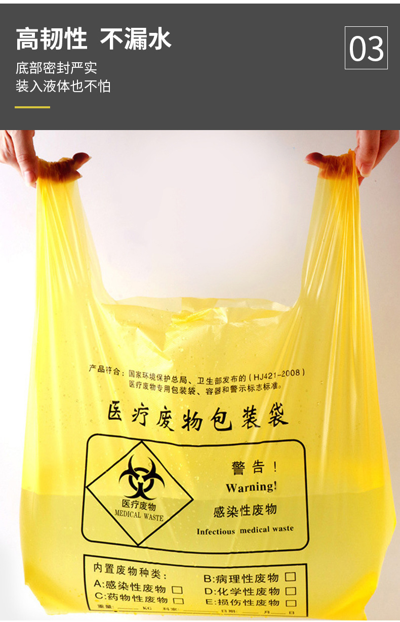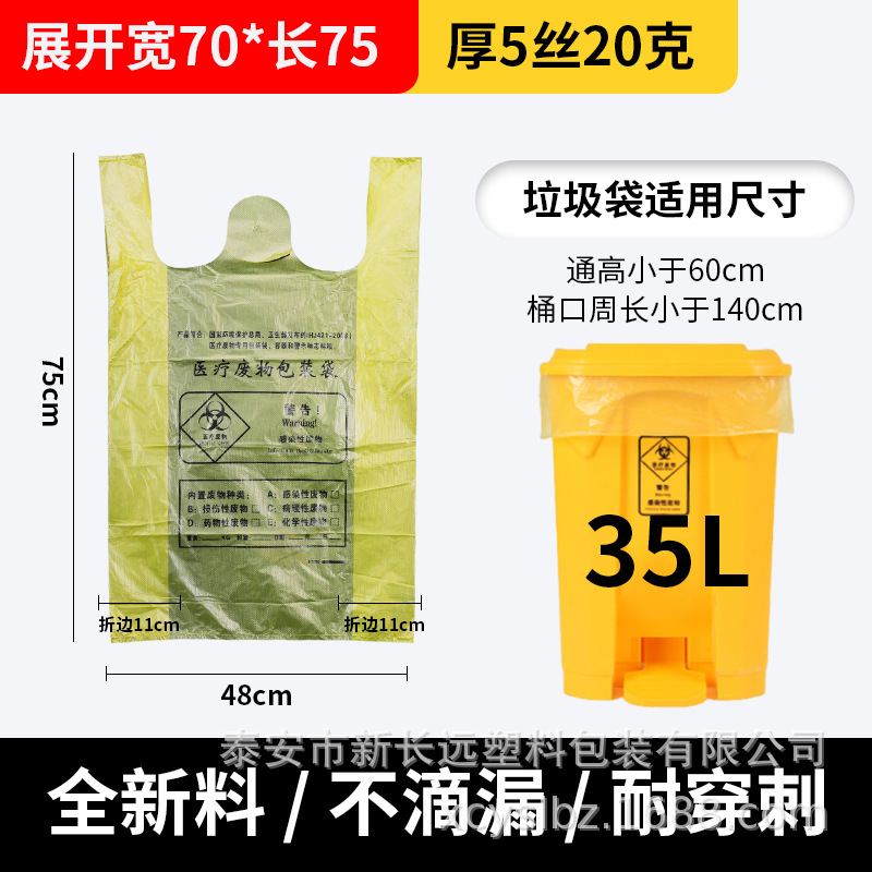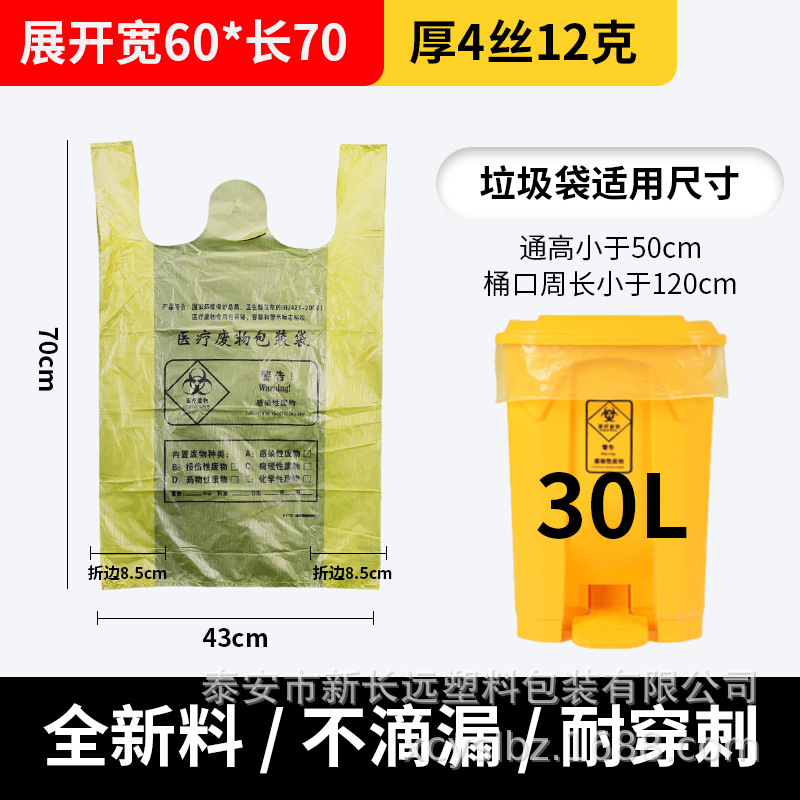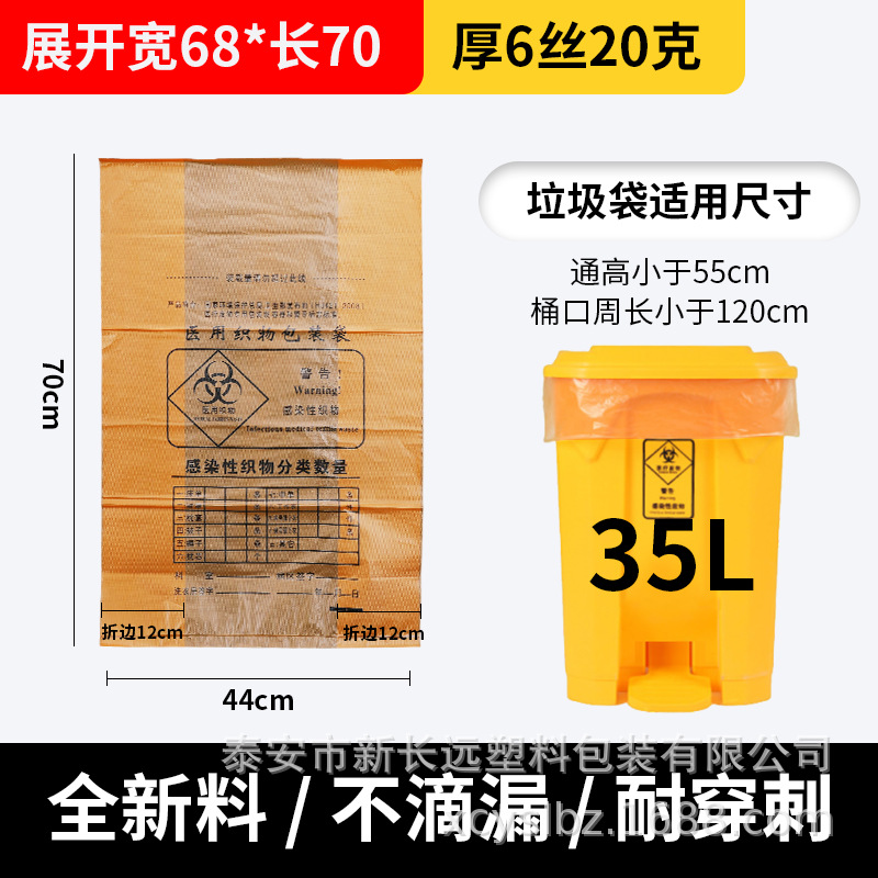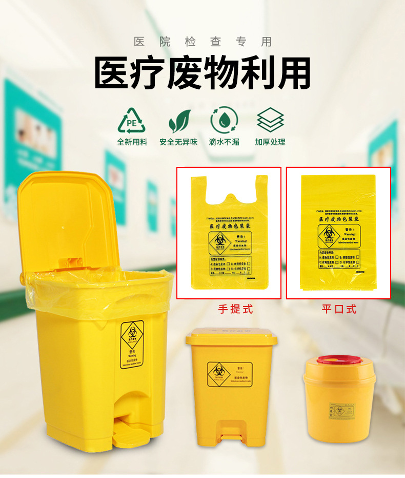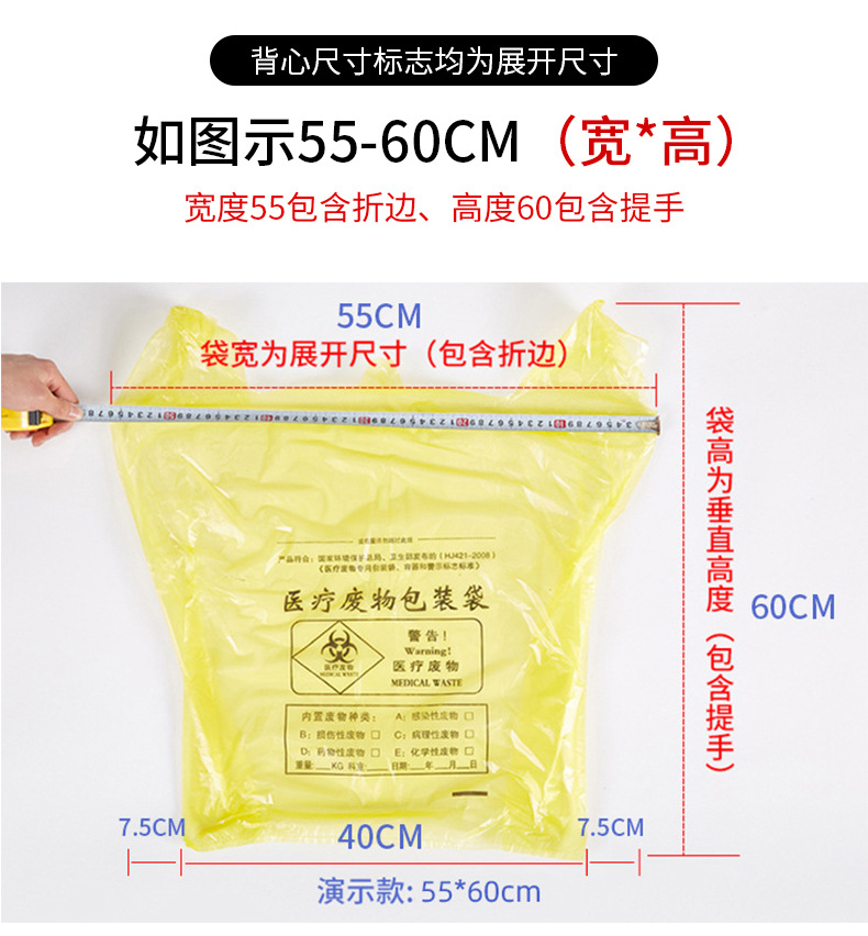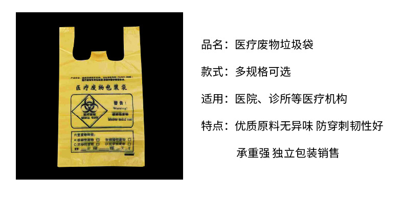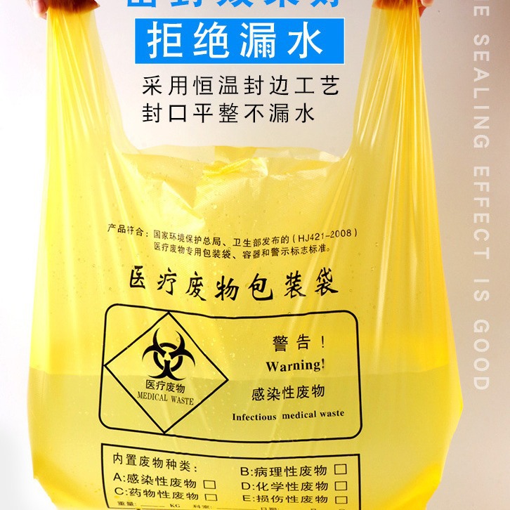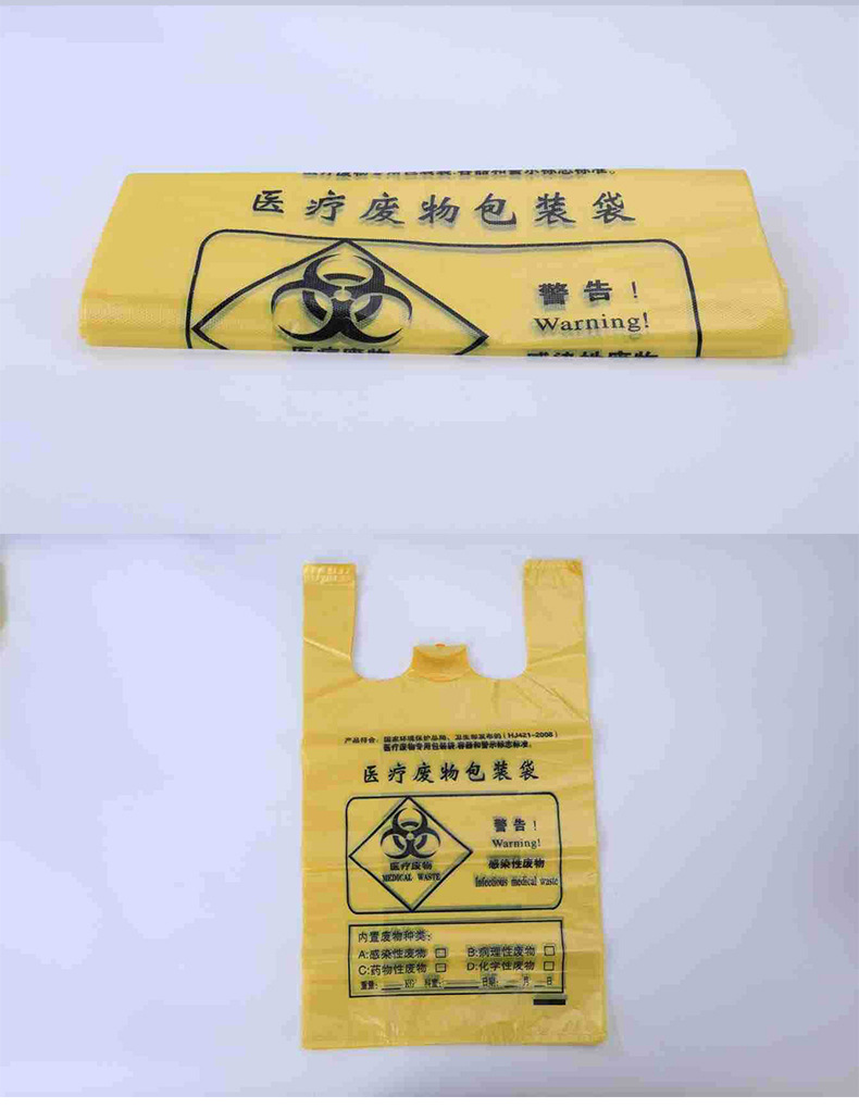 厂家批发黄色医用加厚垃圾袋加厚手提定制医院诊所平口垃圾袋