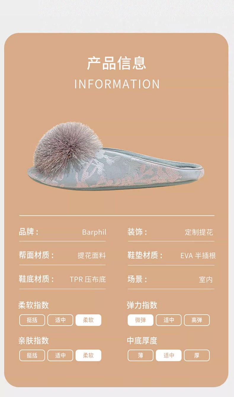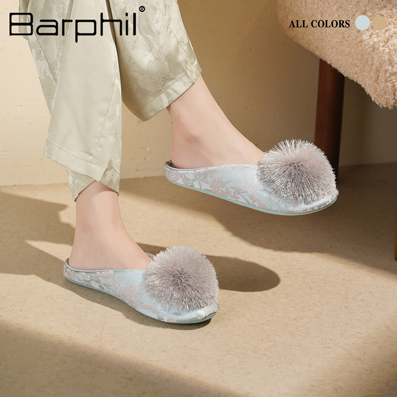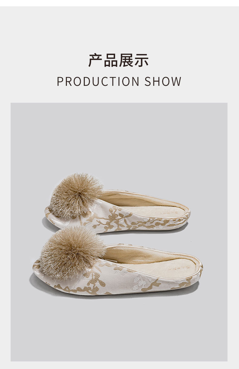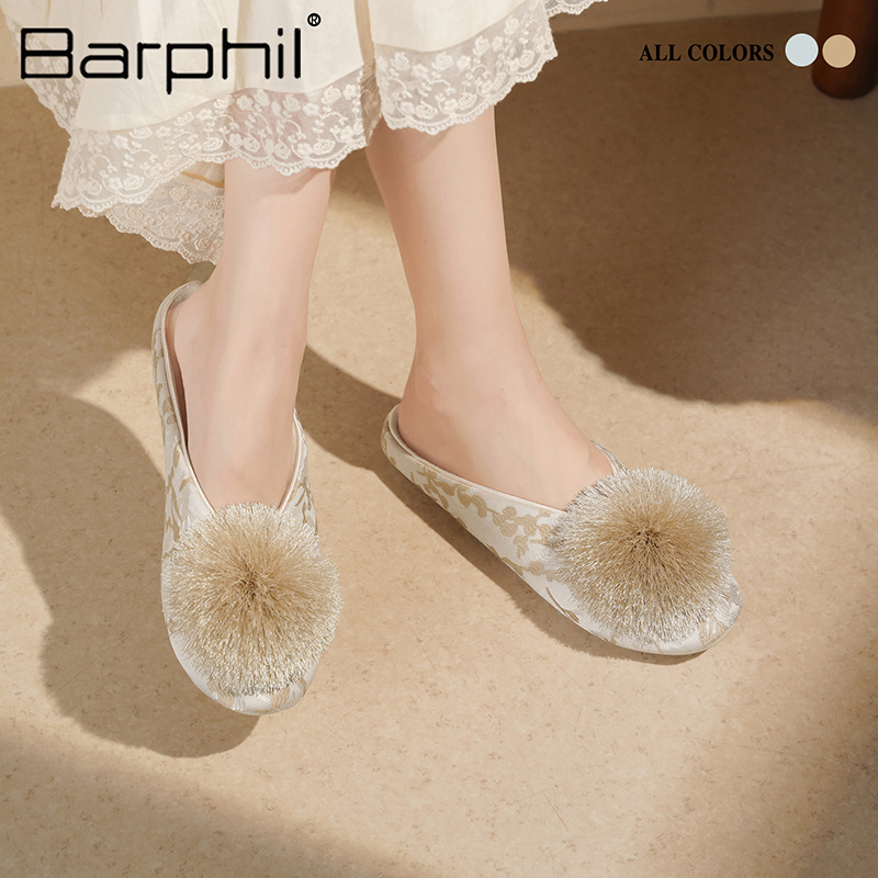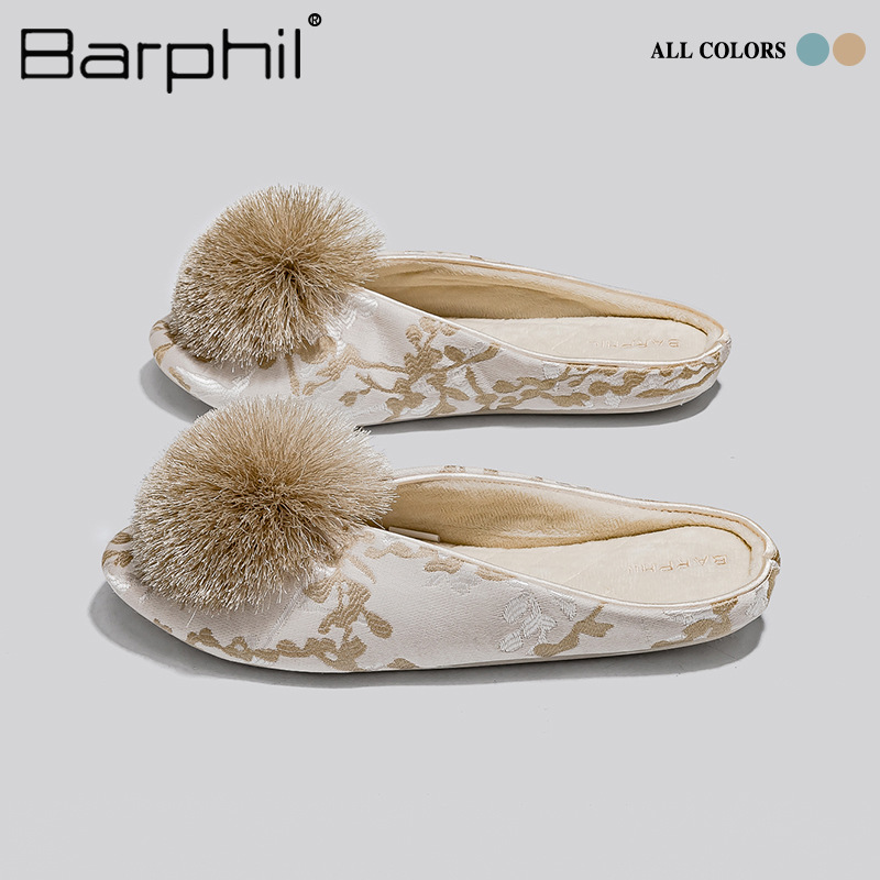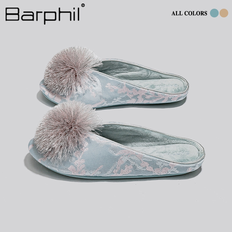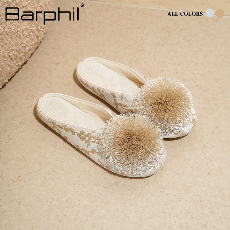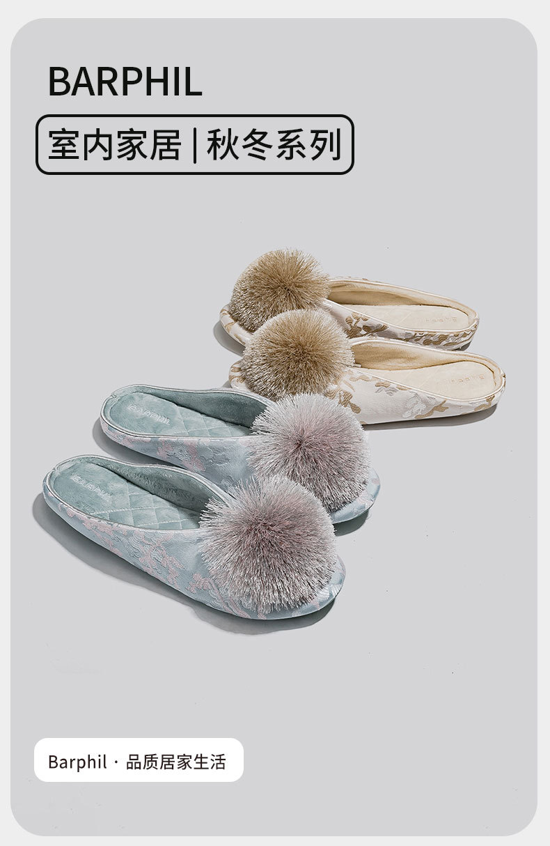 Barphil室内秋冬季家居拖鞋女款国风防滑静音包头棉拖月子鞋批发