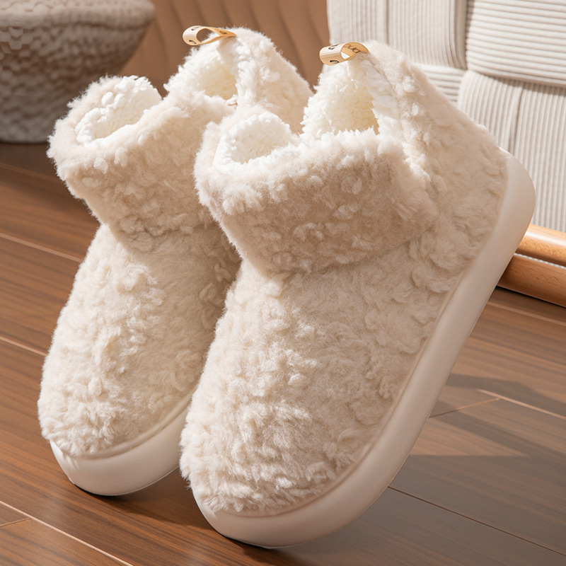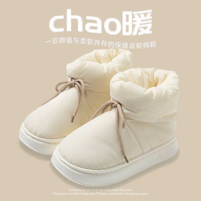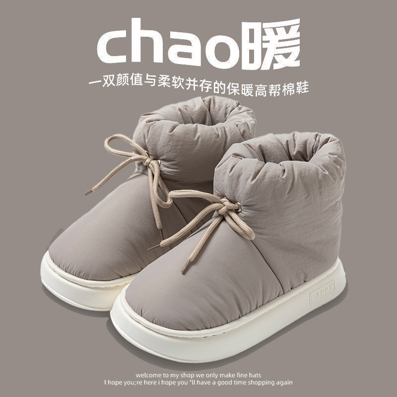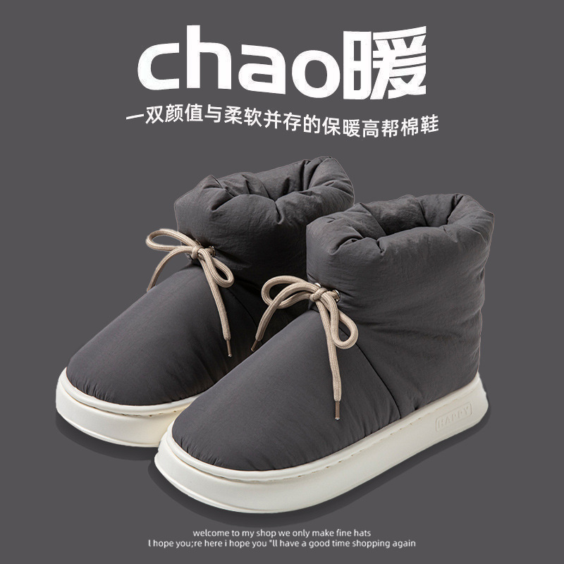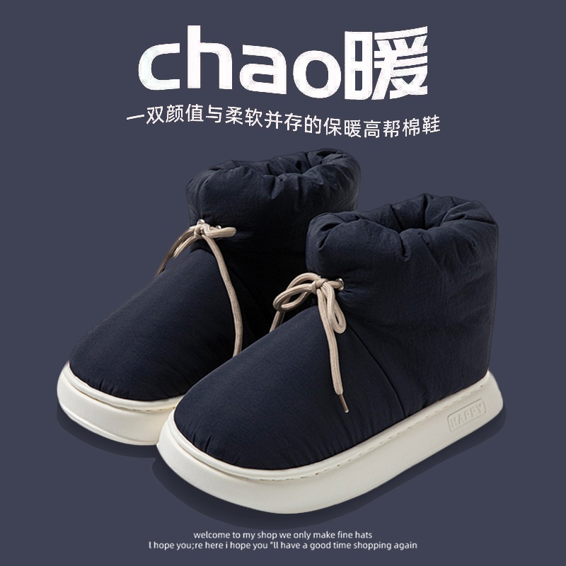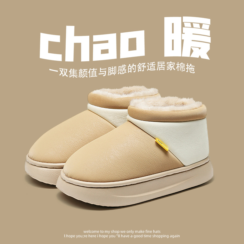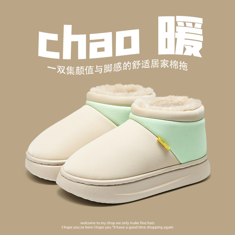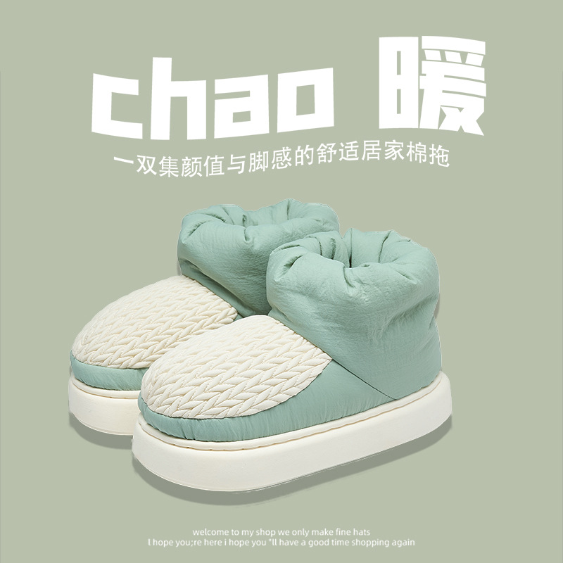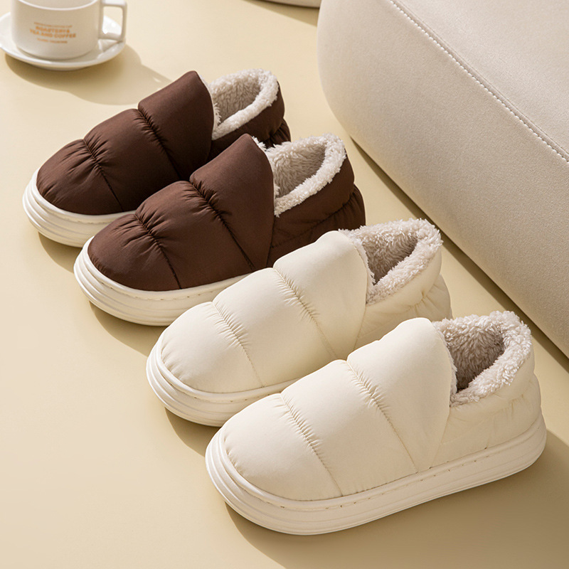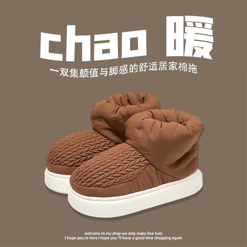 防水棉拖鞋男款冬季静音加绒保暖厚底包跟防臭羽绒布棉拖鞋女冬季