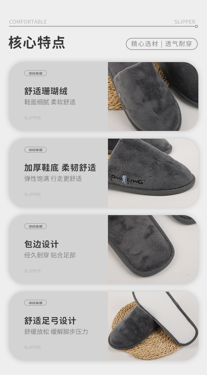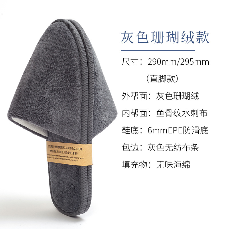 五星级酒店一次性珊瑚绒秋冬拖鞋秋冬款 居家室内 防滑绵拖鞋批发