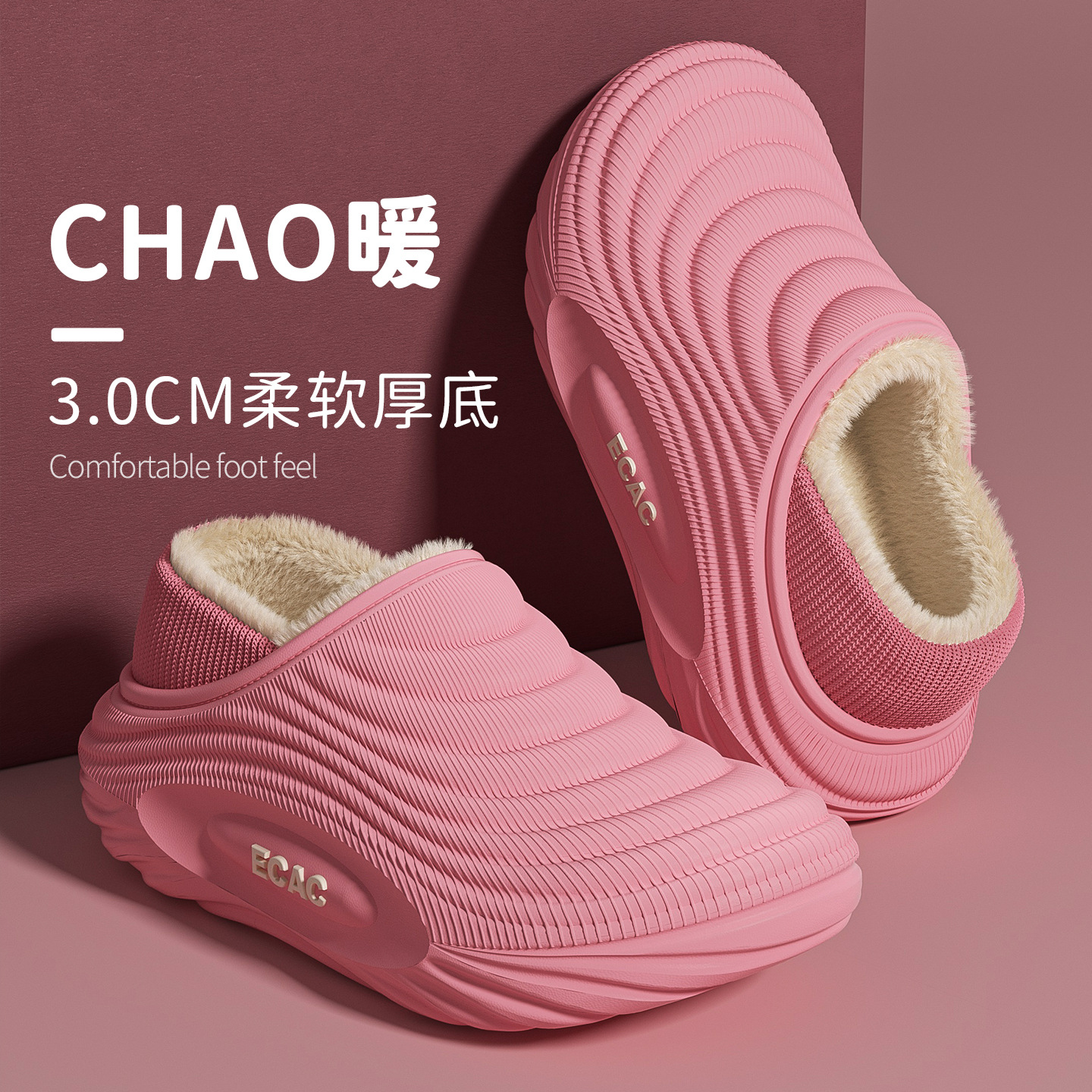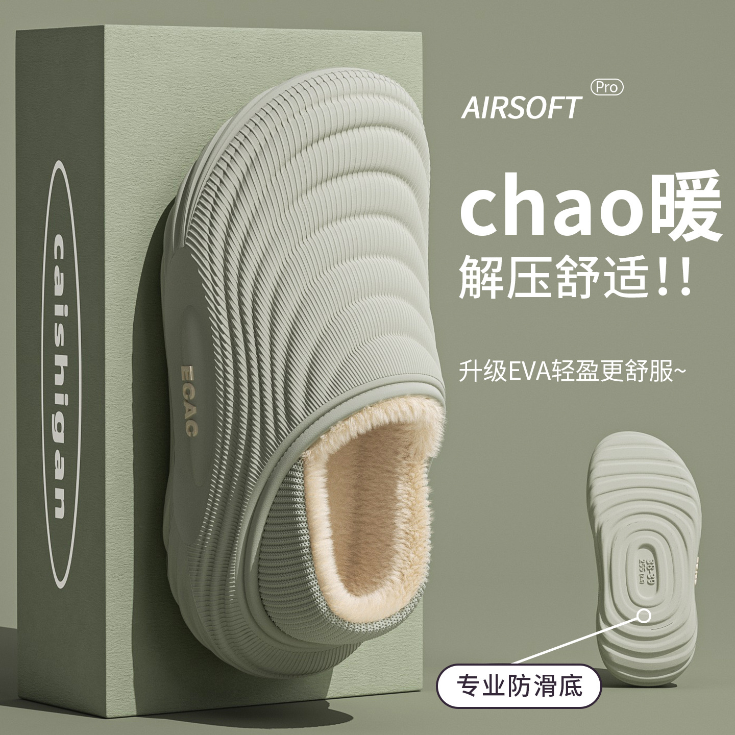 2025新款包头防水棉拖鞋踩屎感家居棉鞋男女冬季保暖防滑情侣棉拖