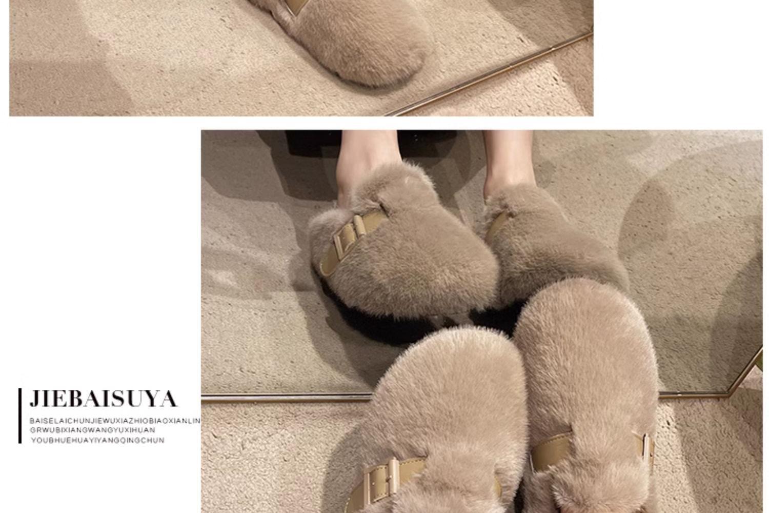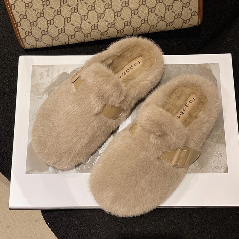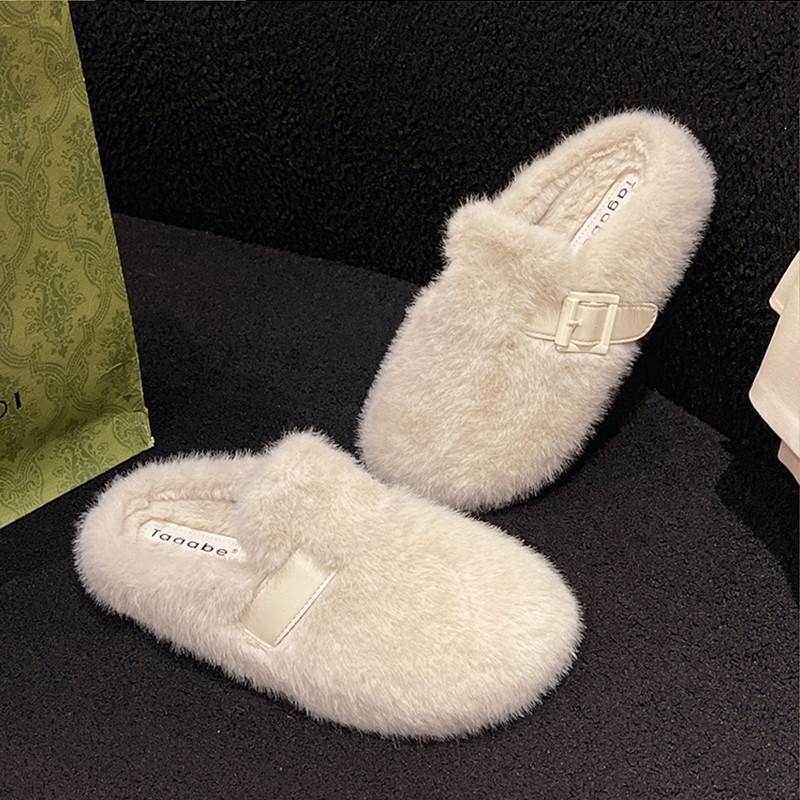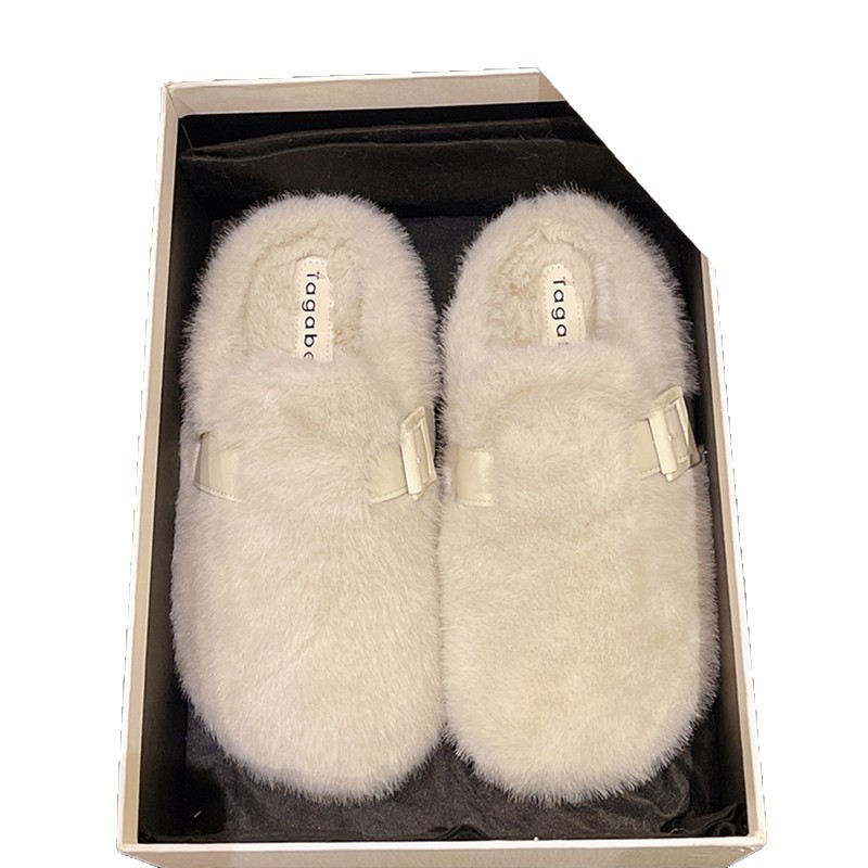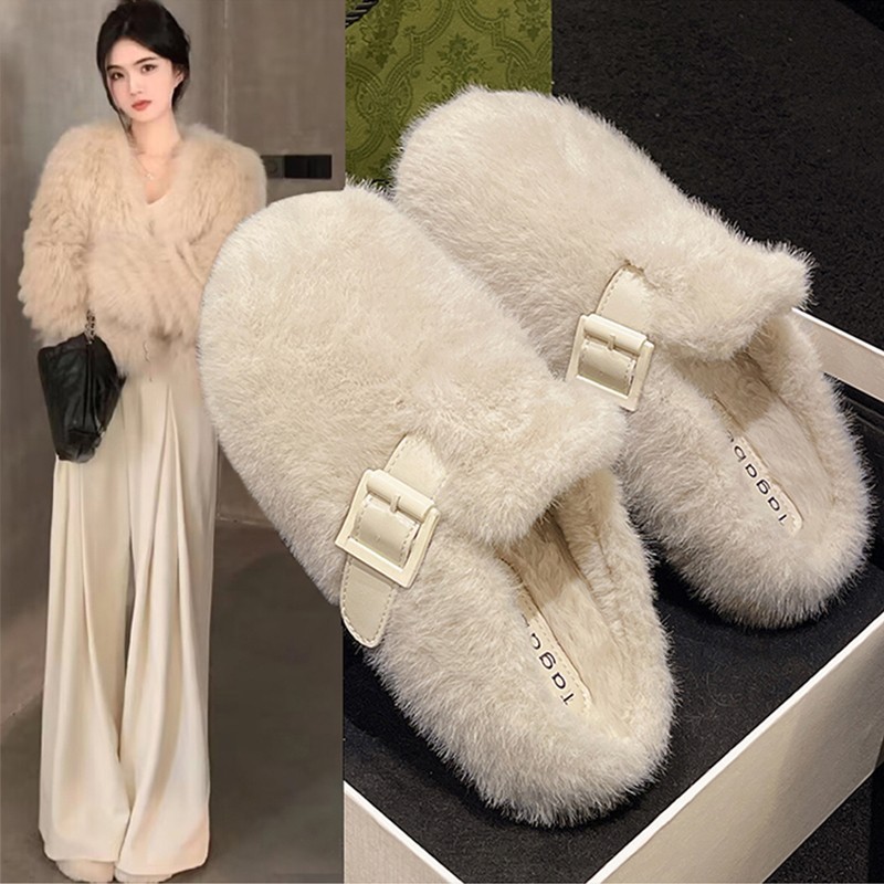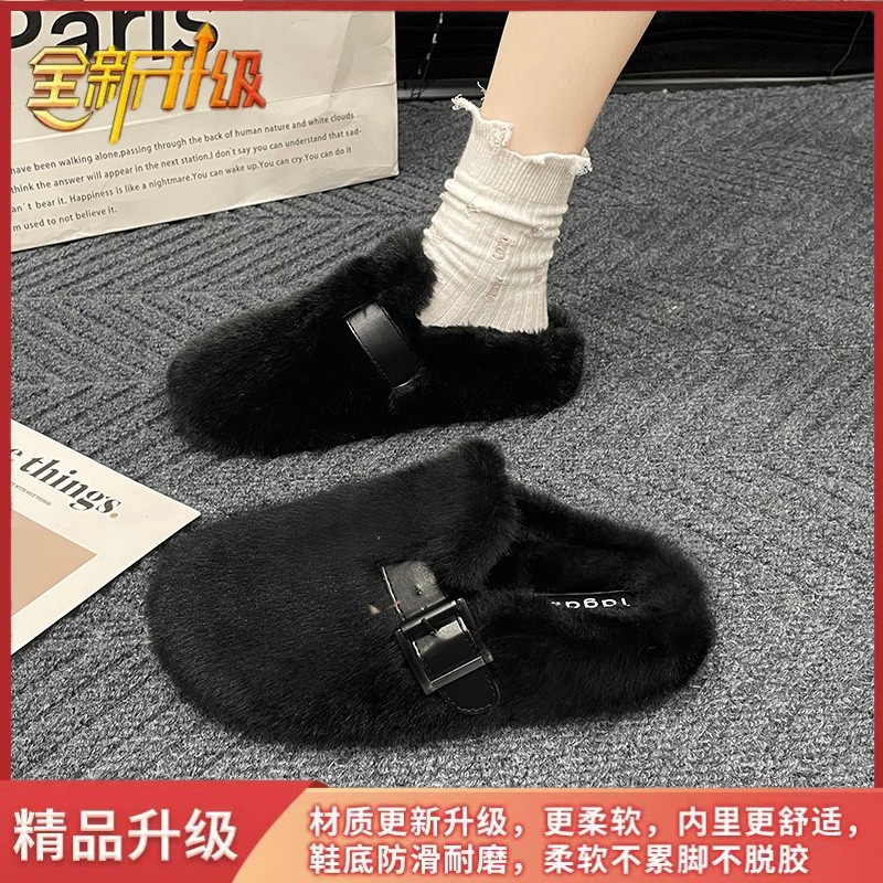 毛毛拖鞋女外穿2024新款秋冬一脚蹬时尚外出包头半拖棉拖鞋毛毛鞋