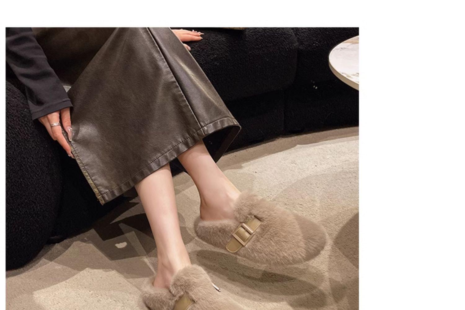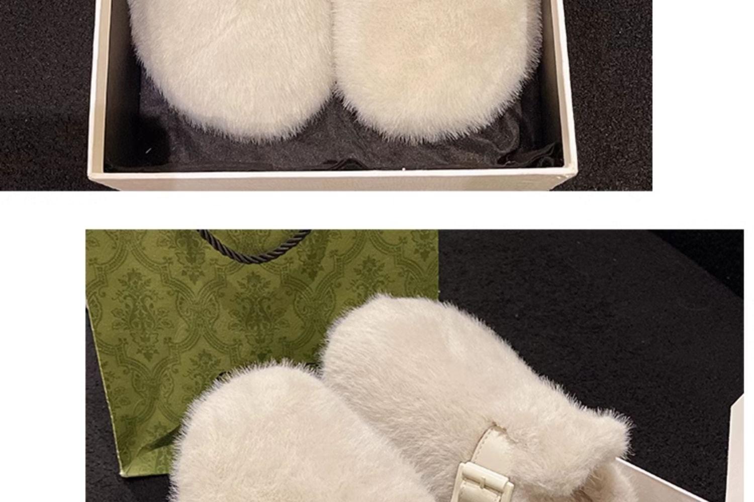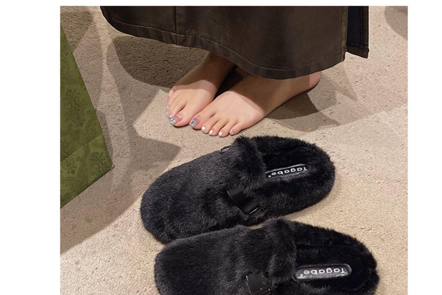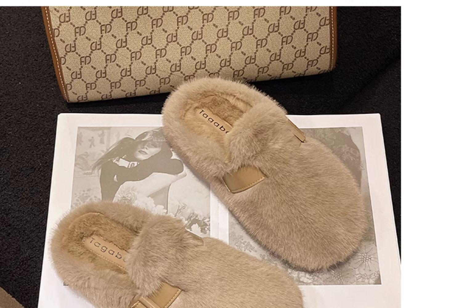 毛毛拖鞋女外穿2024新款秋冬一脚蹬时尚外出包头半拖棉拖鞋毛毛鞋