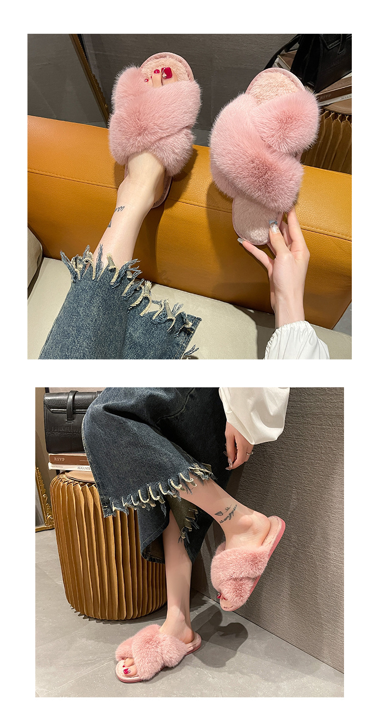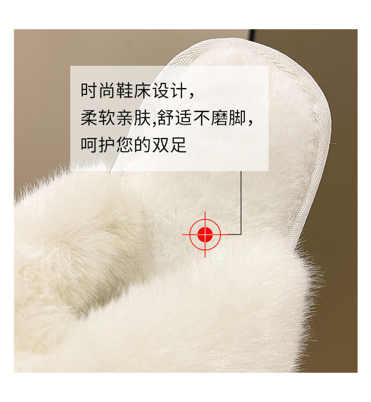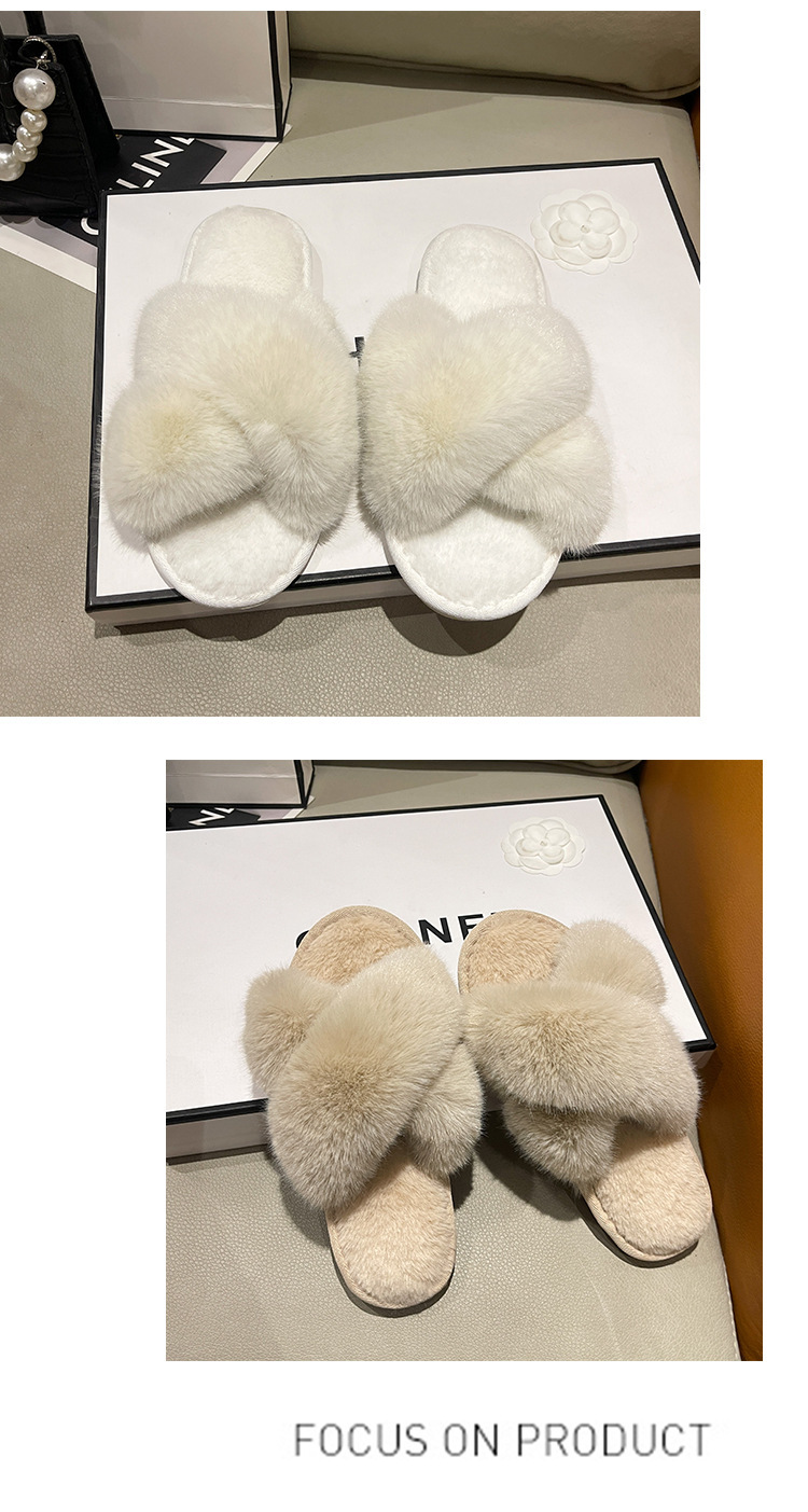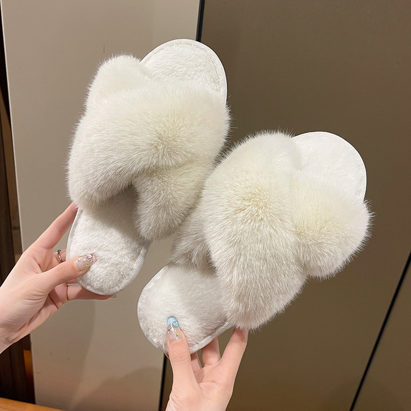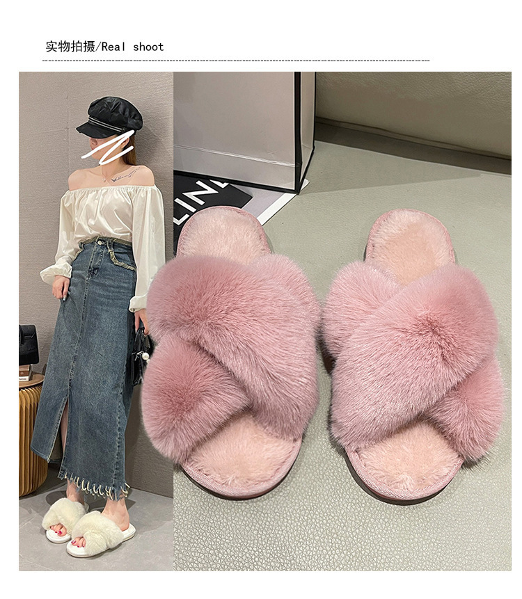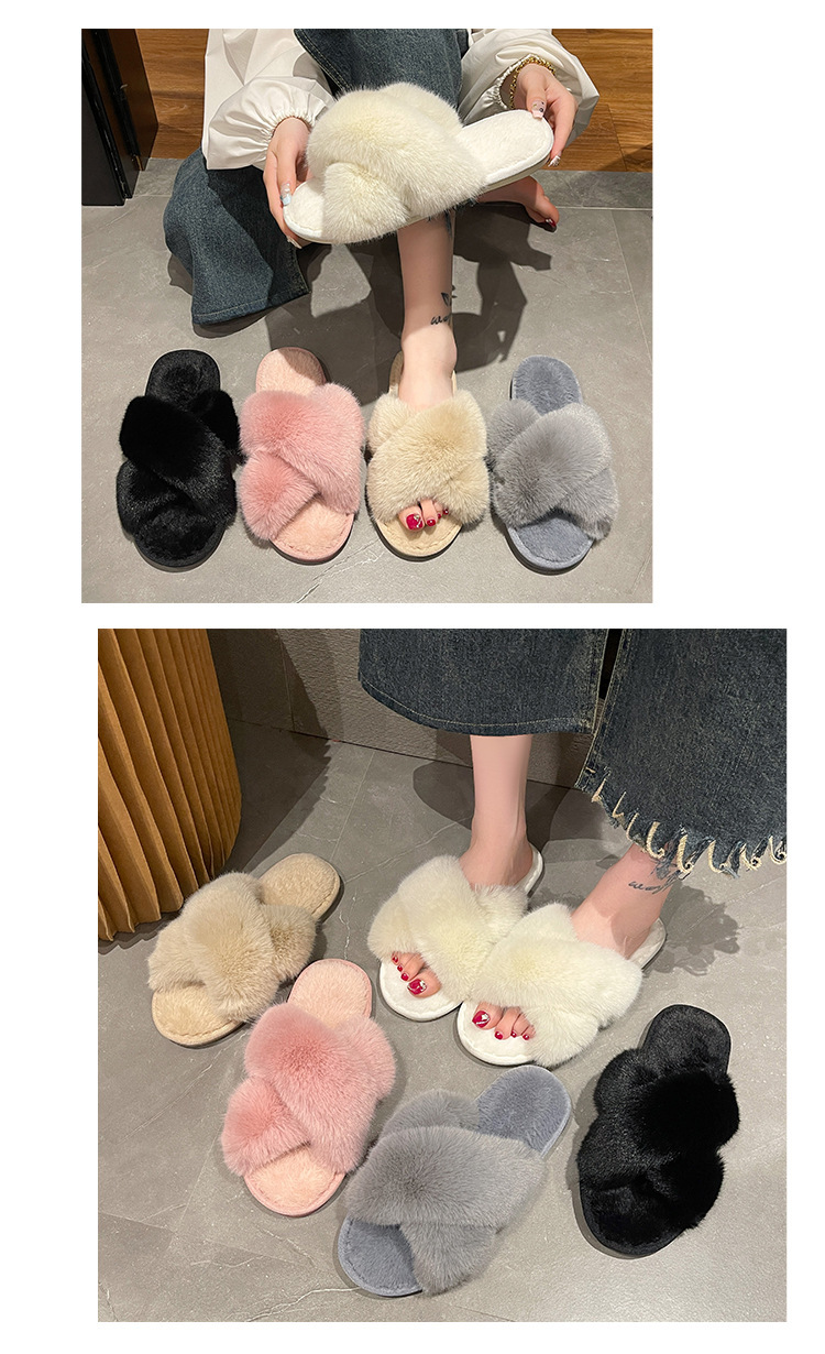 冬季毛绒拖鞋交叉带拖室内家居防滑保暖加大毛毛拖鞋女大兔毛厚底