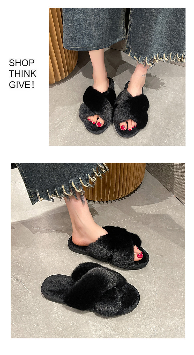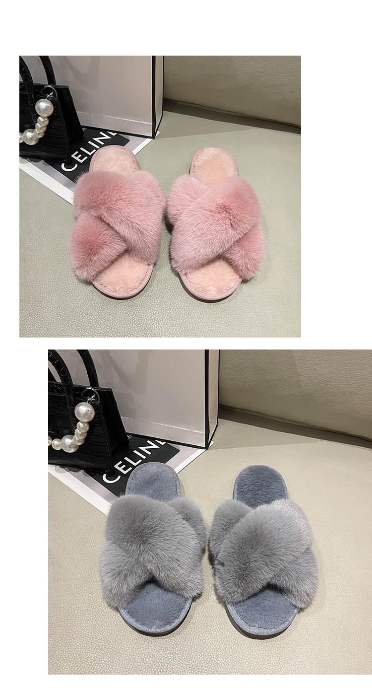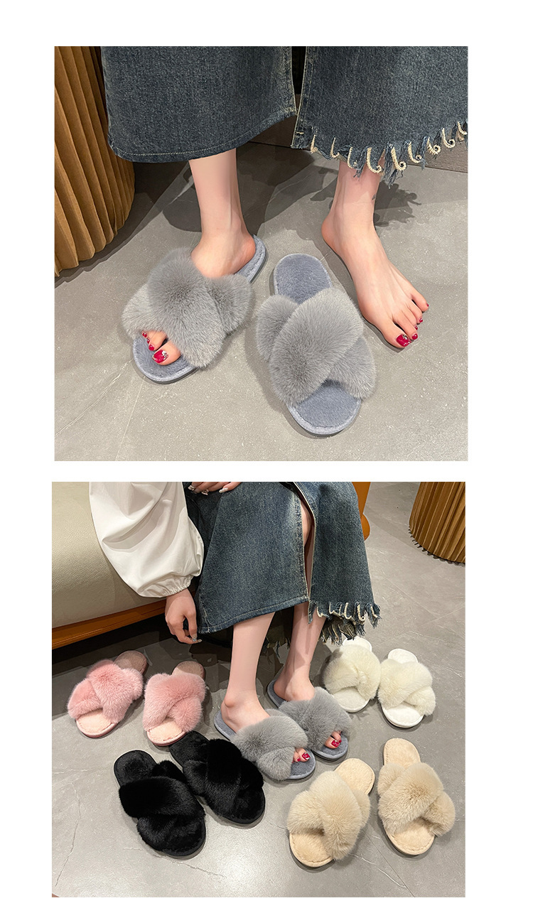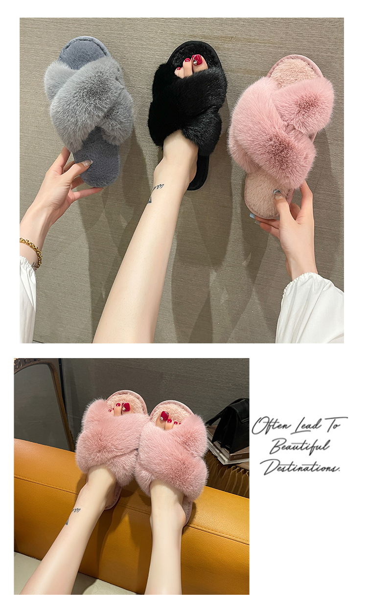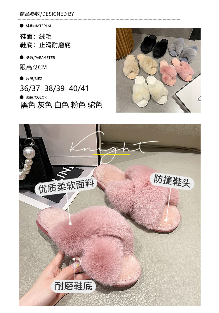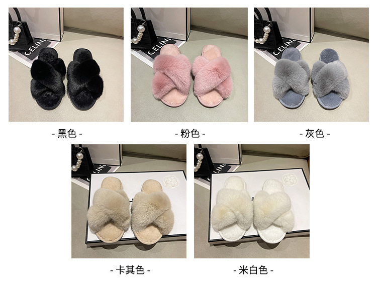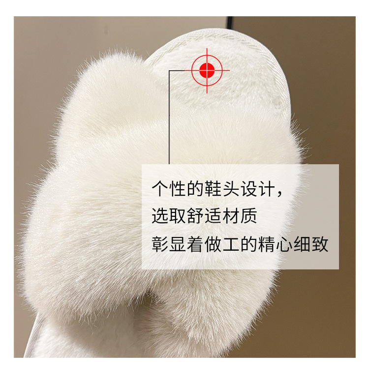 冬季毛绒拖鞋交叉带拖室内家居防滑保暖加大毛毛拖鞋女大兔毛厚底