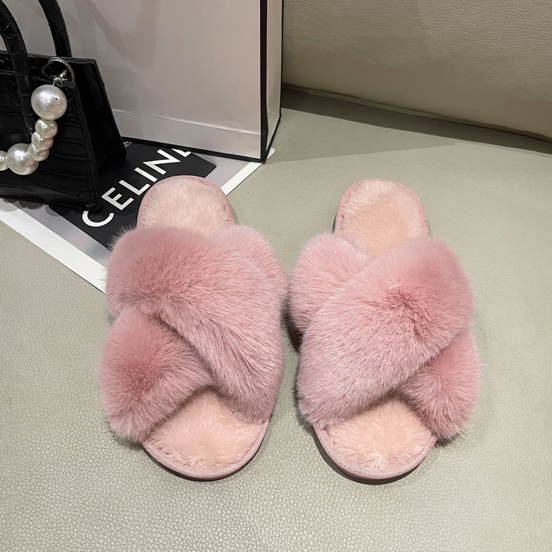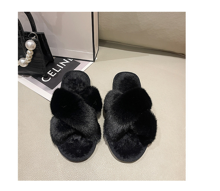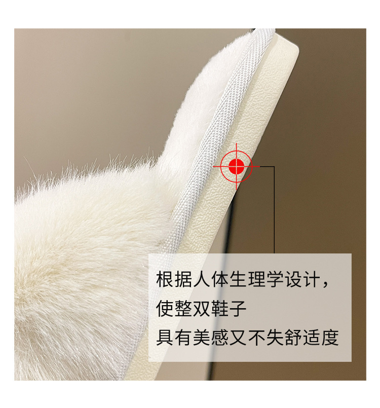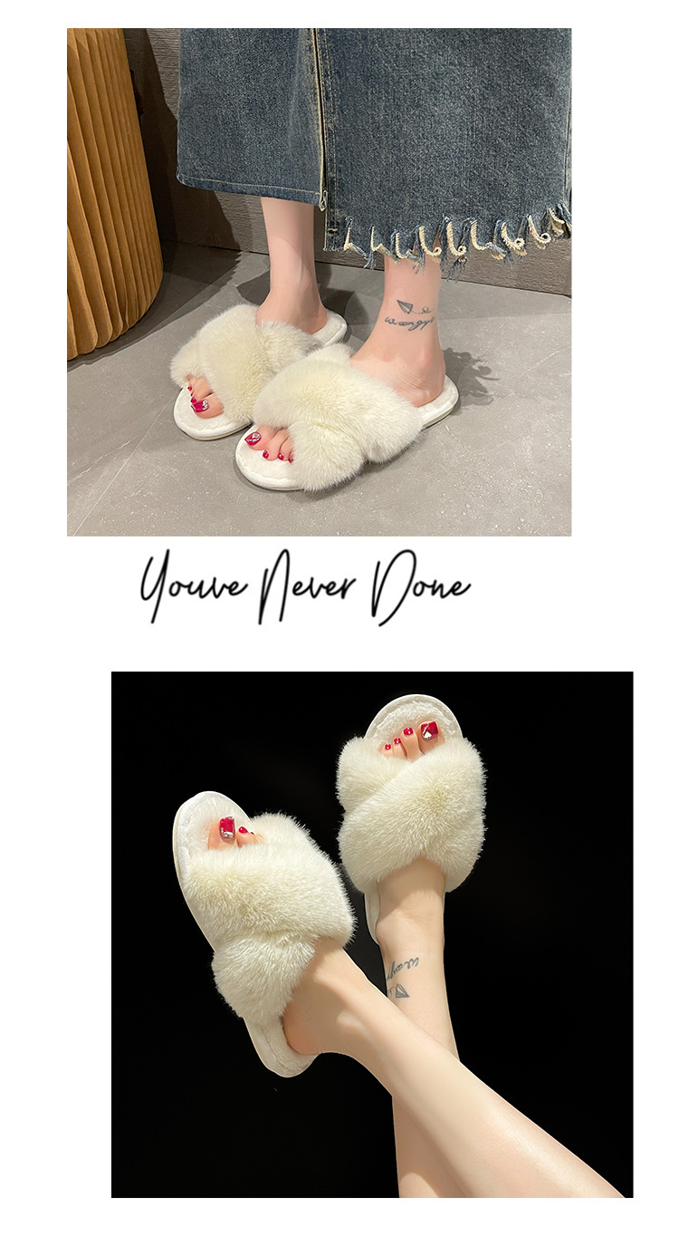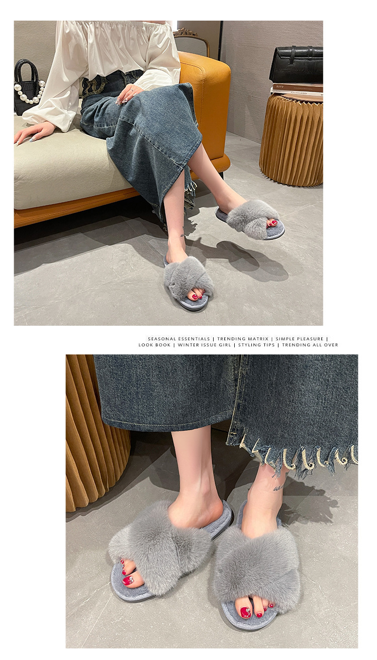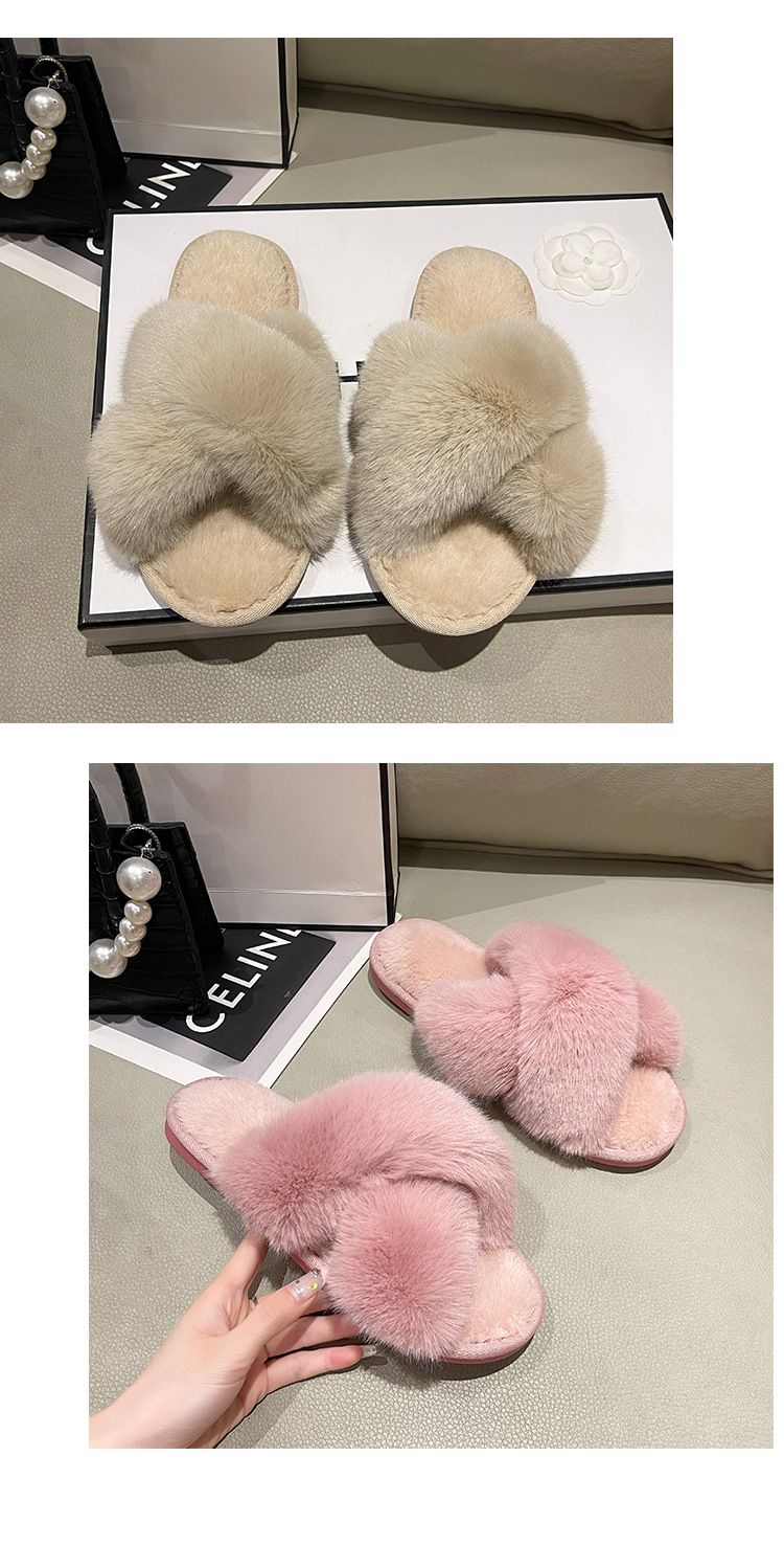 冬季毛绒拖鞋交叉带拖室内家居防滑保暖加大毛毛拖鞋女大兔毛厚底