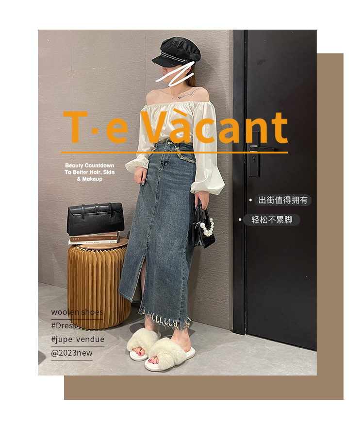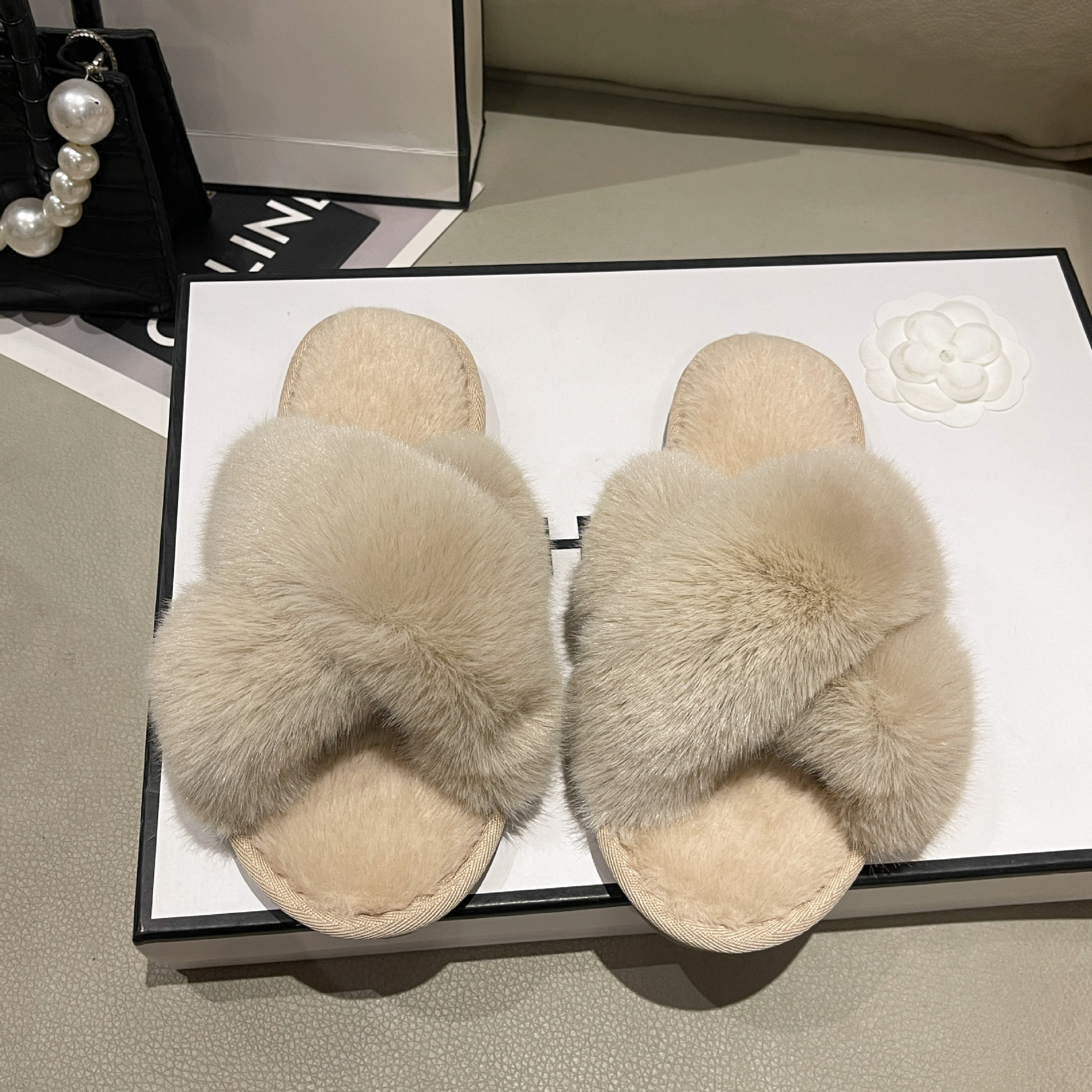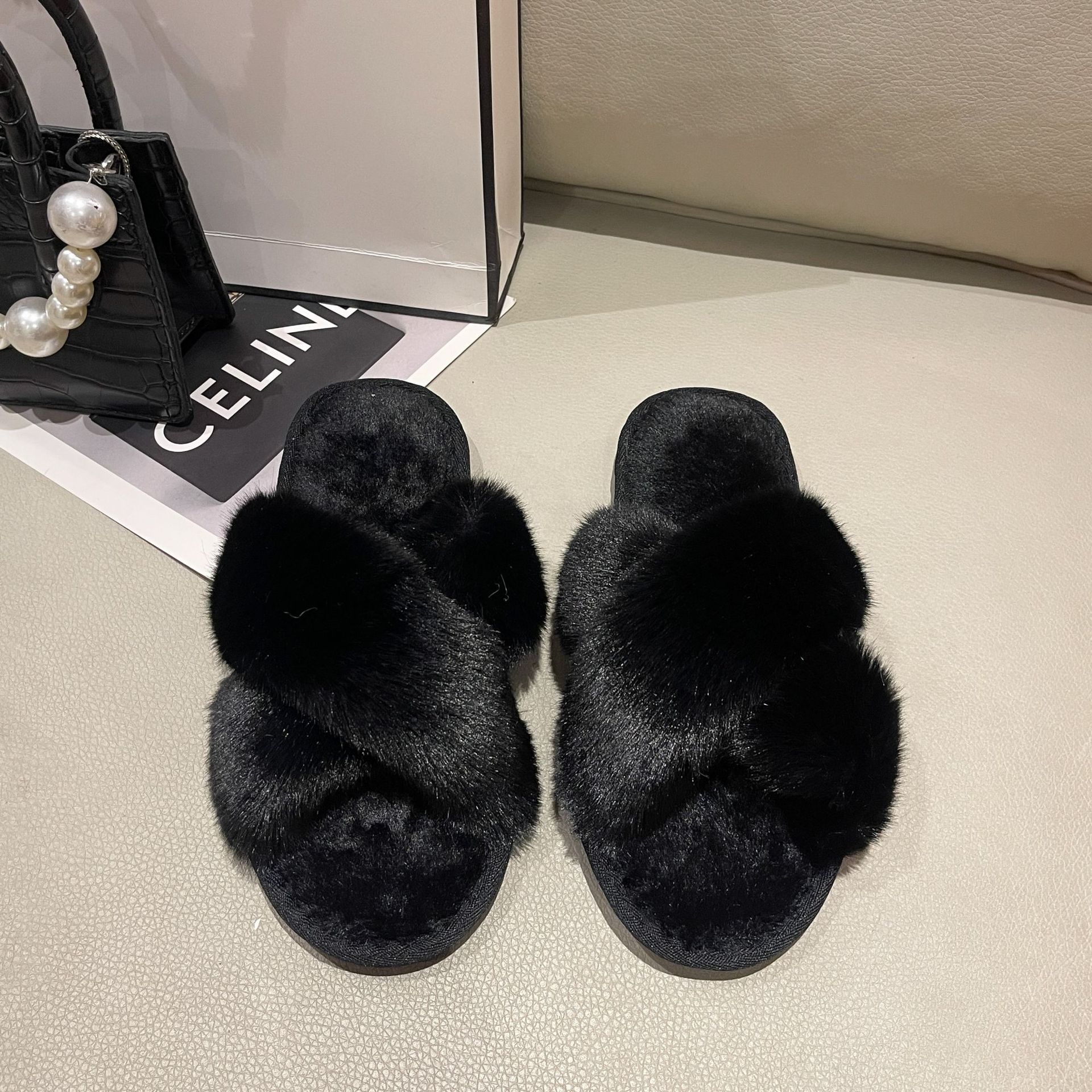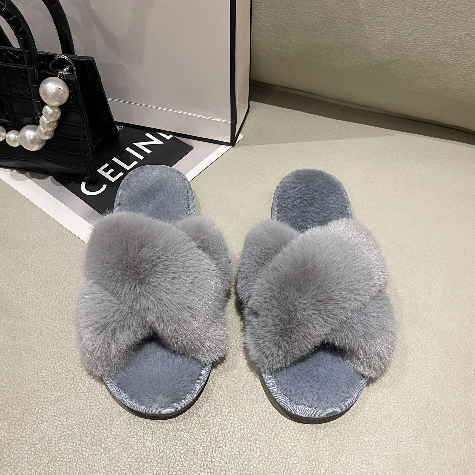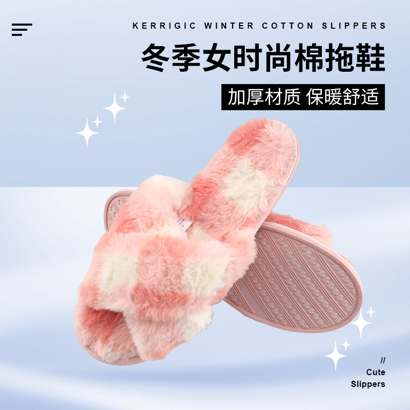 冬季毛绒拖鞋交叉带拖室内家居防滑保暖加大毛毛拖鞋女大兔毛厚底