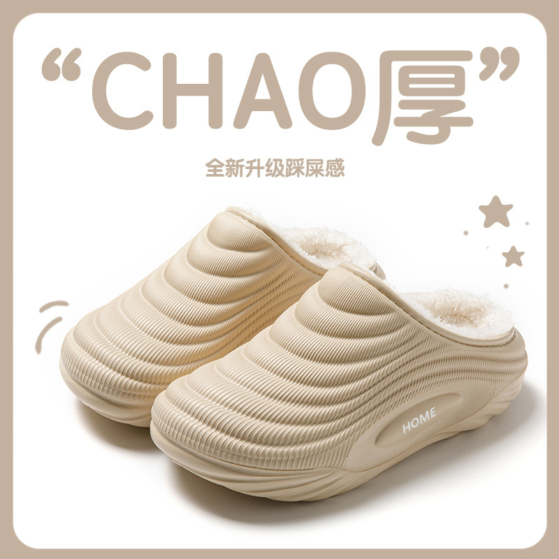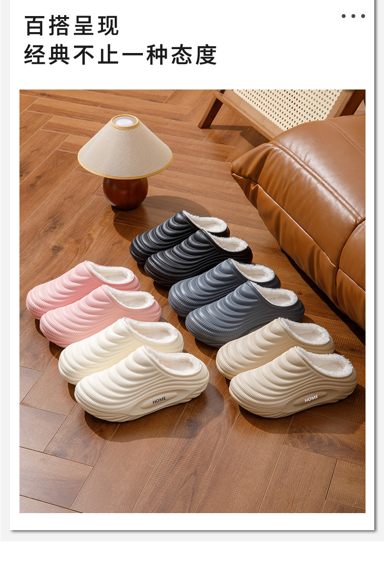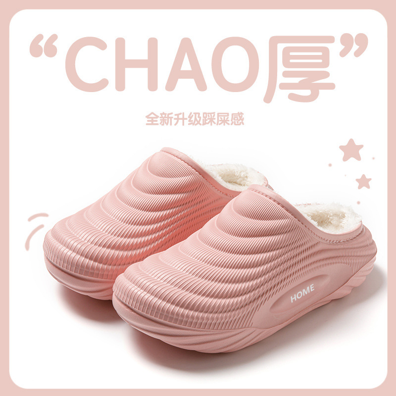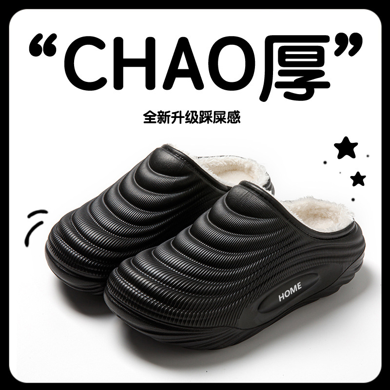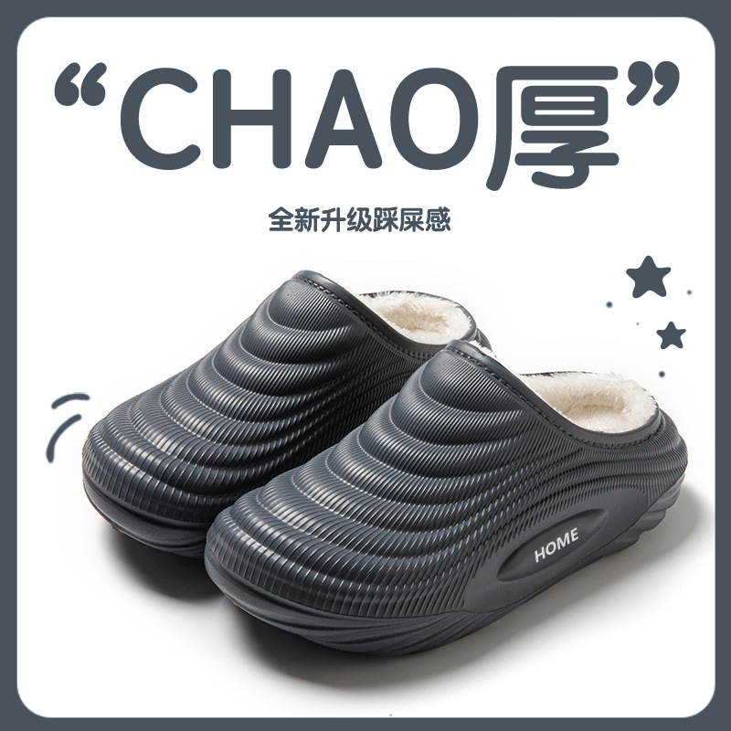 防水棉拖鞋女新款情侣外穿居家加绒保暖防滑厚底套壳拖鞋男秋冬季