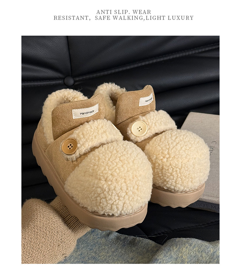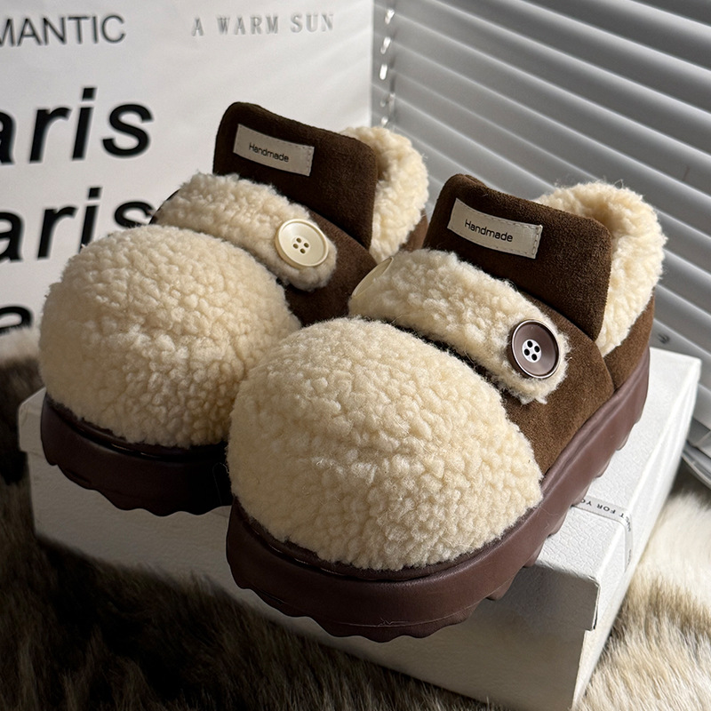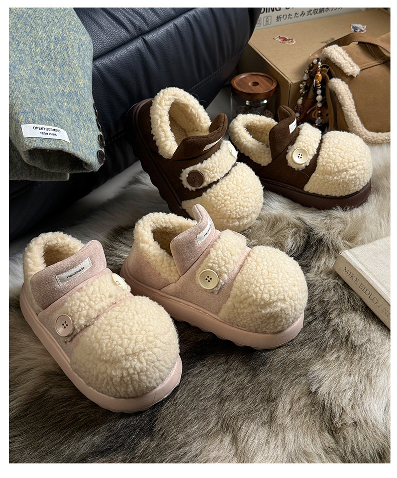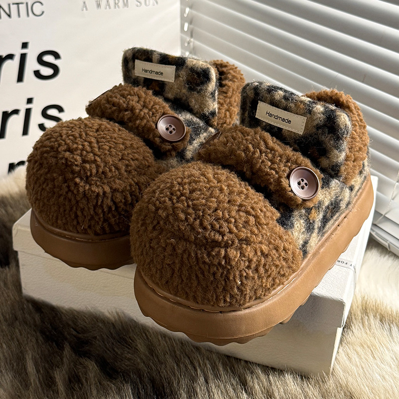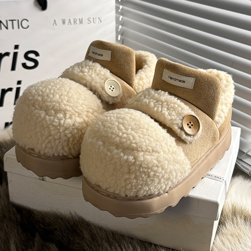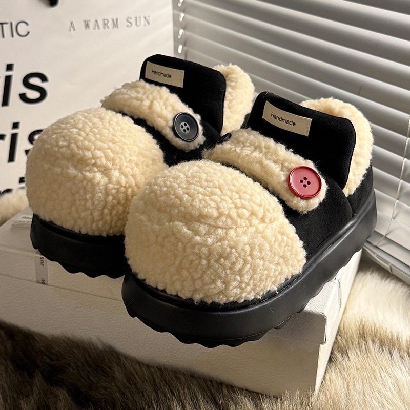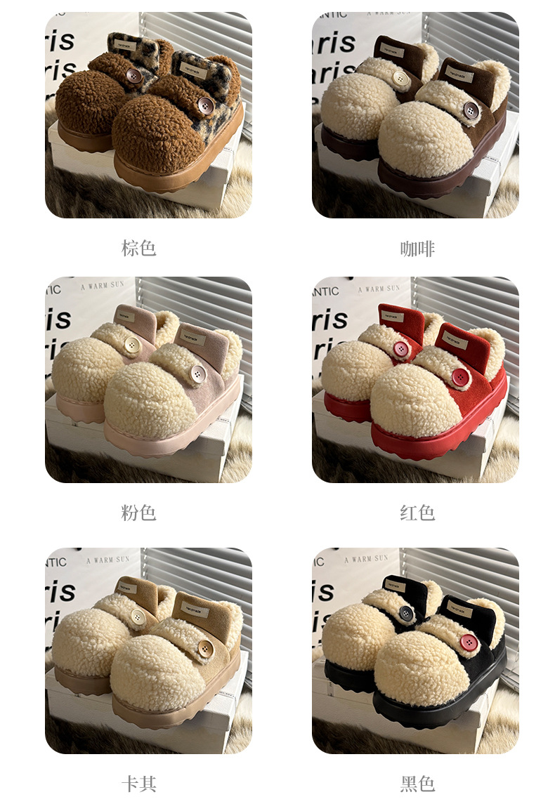 DIMIFEI 设计纽扣棉鞋厚底加绒保暖雪地靴女冬防滑毛绒棉拖鞋外穿