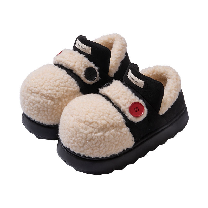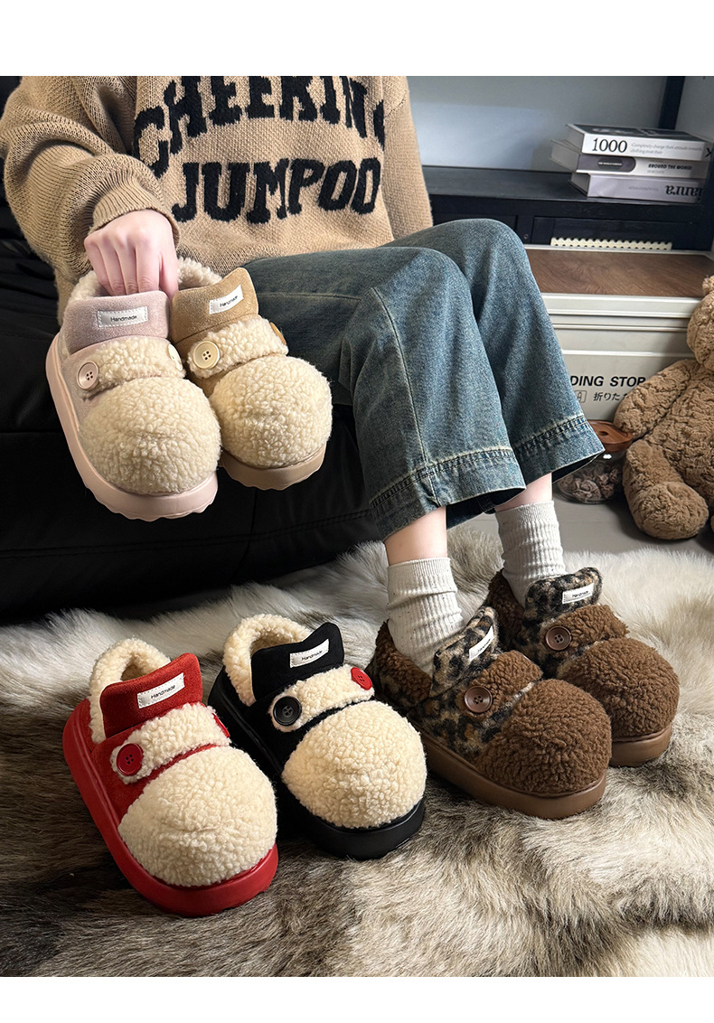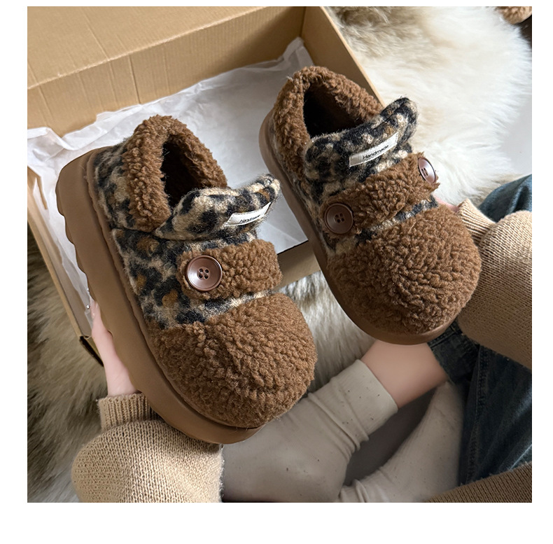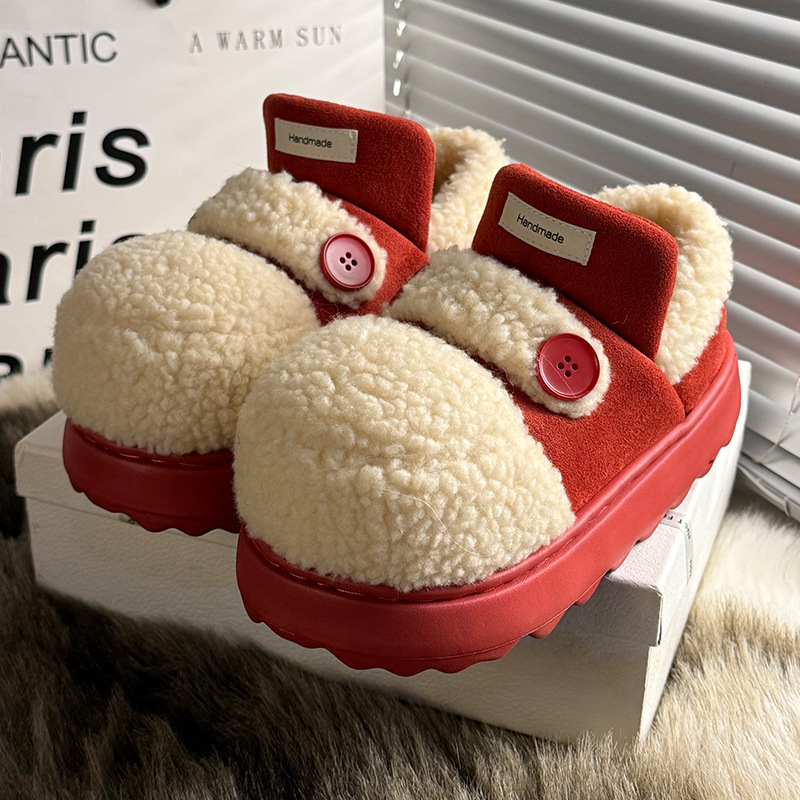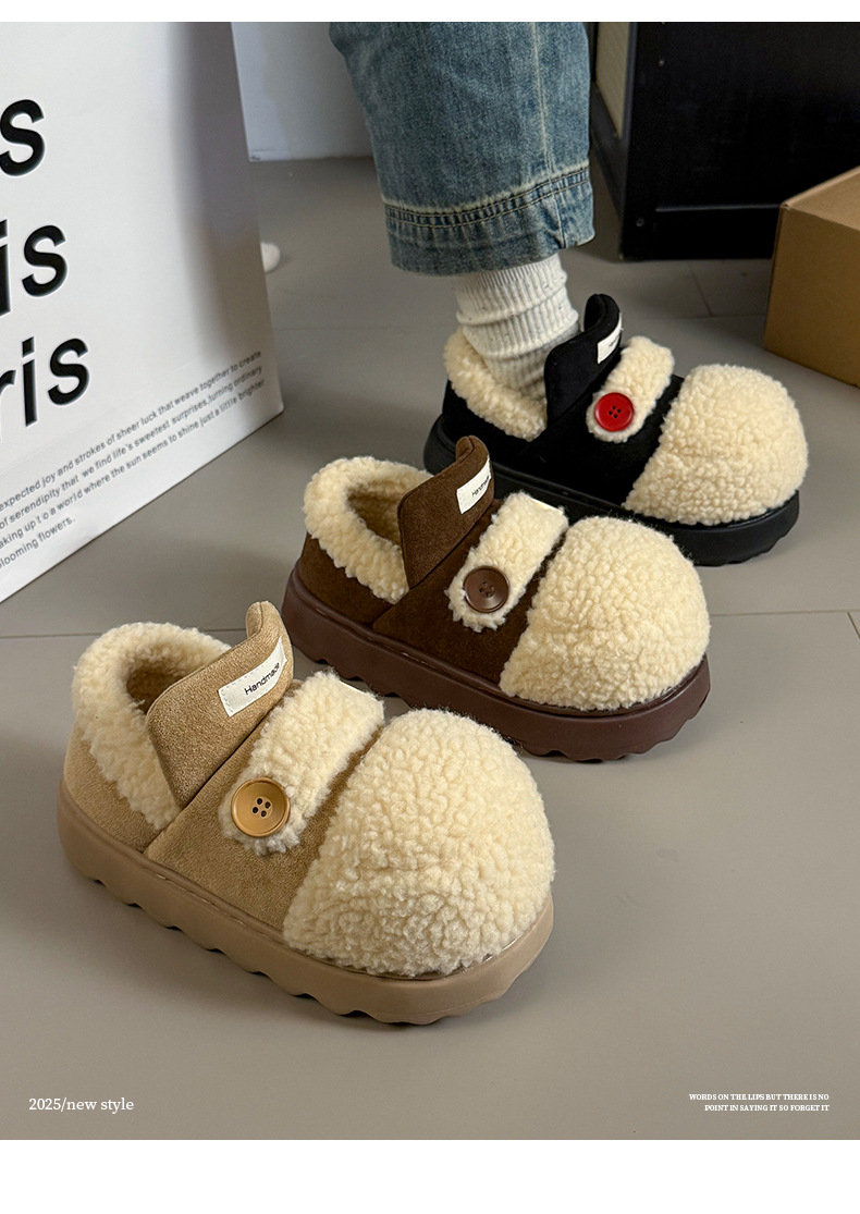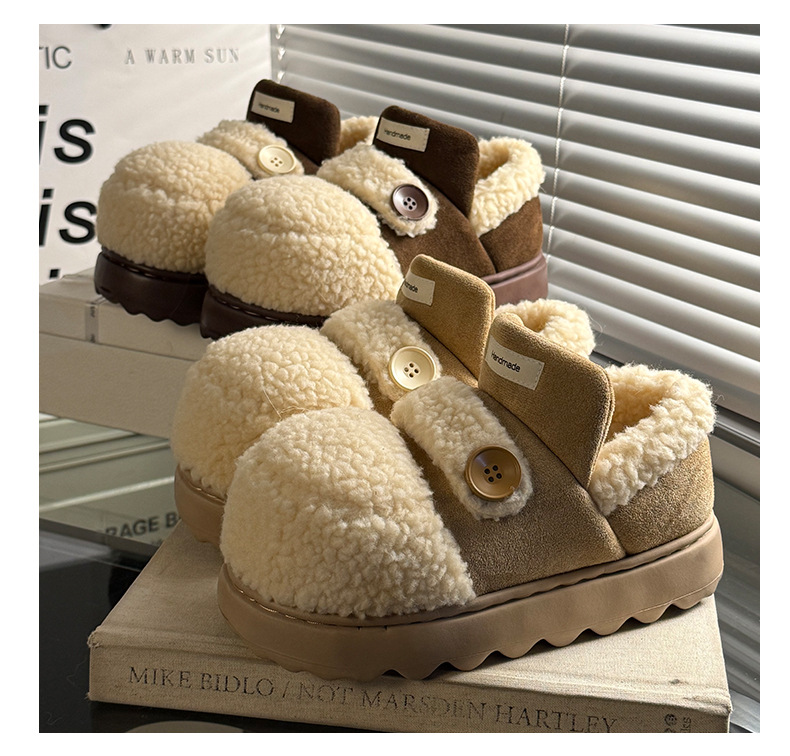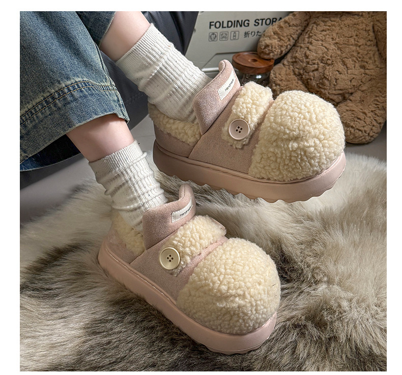 DIMIFEI 设计纽扣棉鞋厚底加绒保暖雪地靴女冬防滑毛绒棉拖鞋外穿