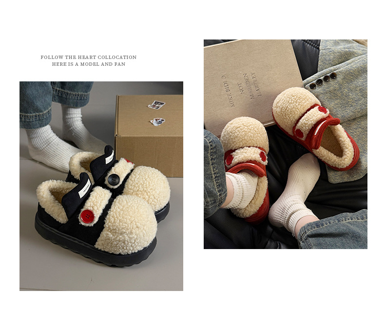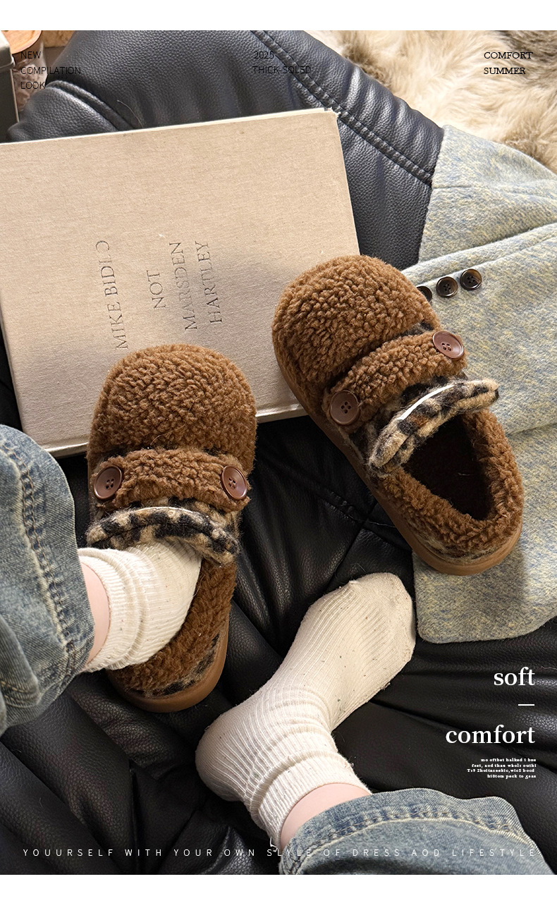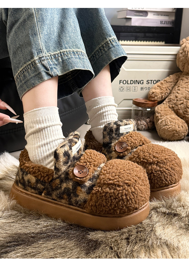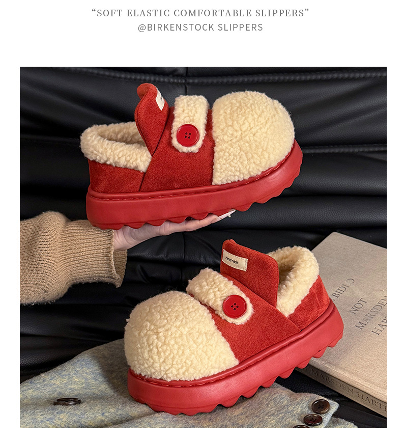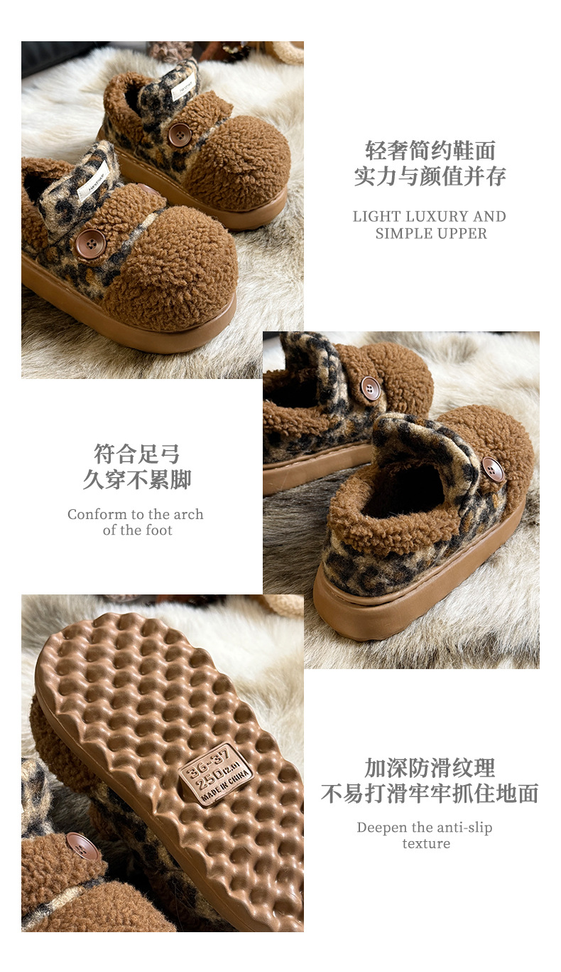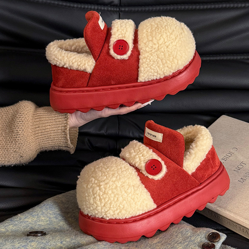 DIMIFEI 设计纽扣棉鞋厚底加绒保暖雪地靴女冬防滑毛绒棉拖鞋外穿