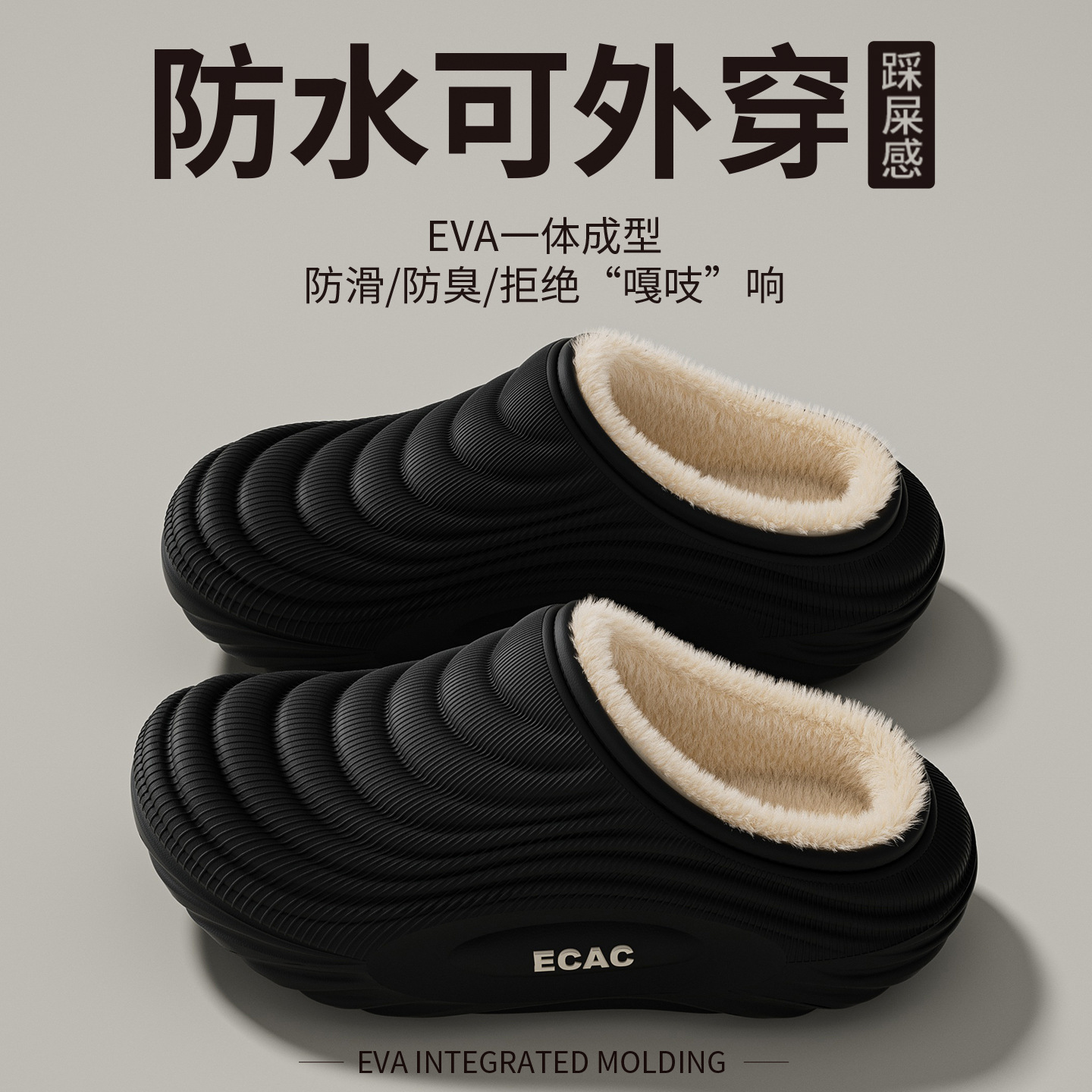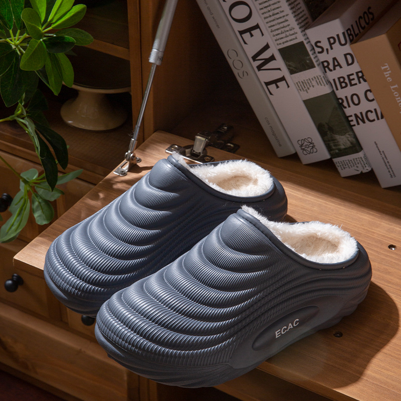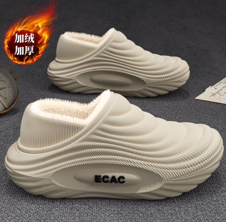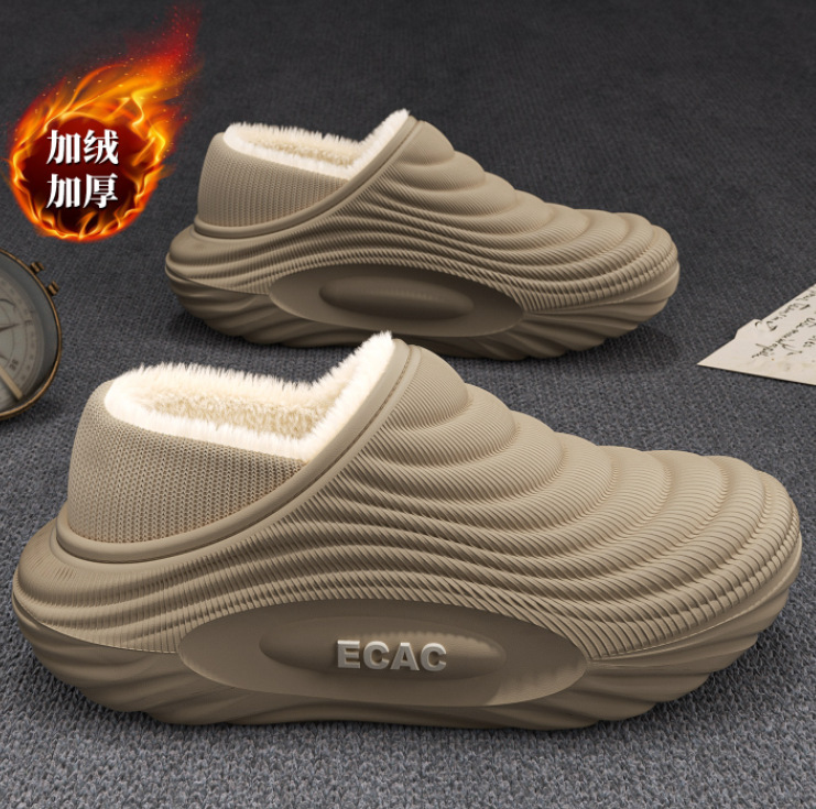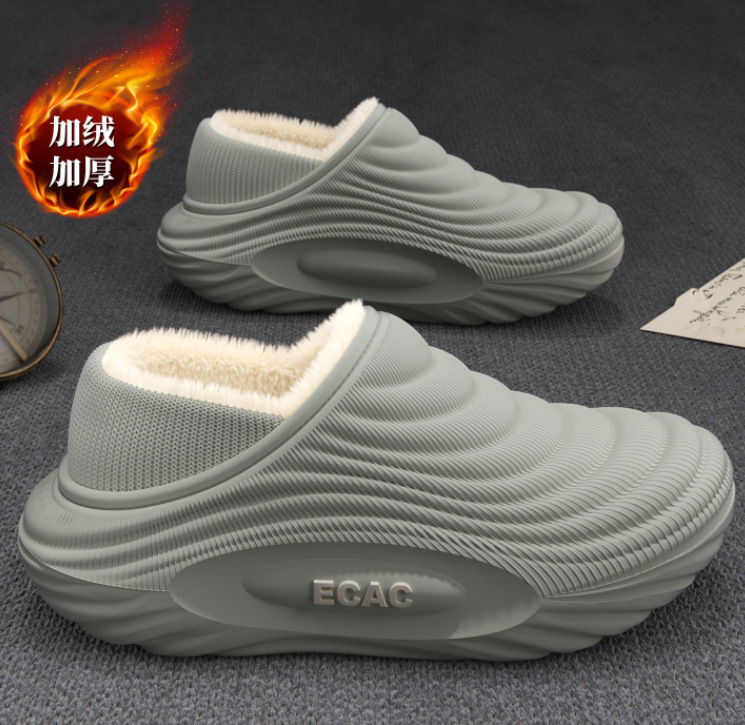 男士防寒防水保暖家居棉鞋2025冬季新款防滑软底室内包跟月子拖鞋