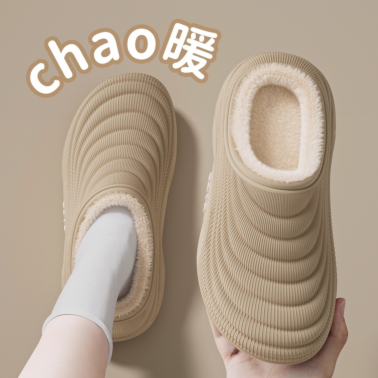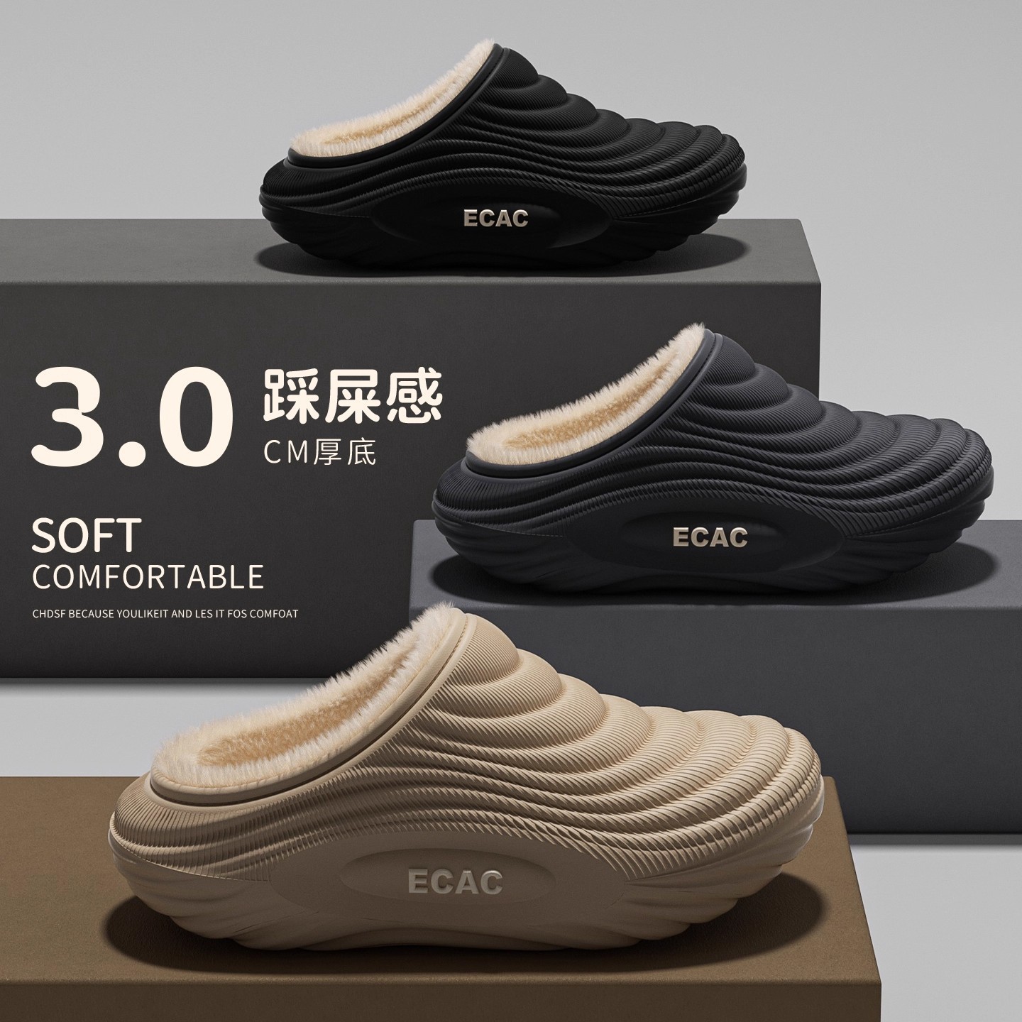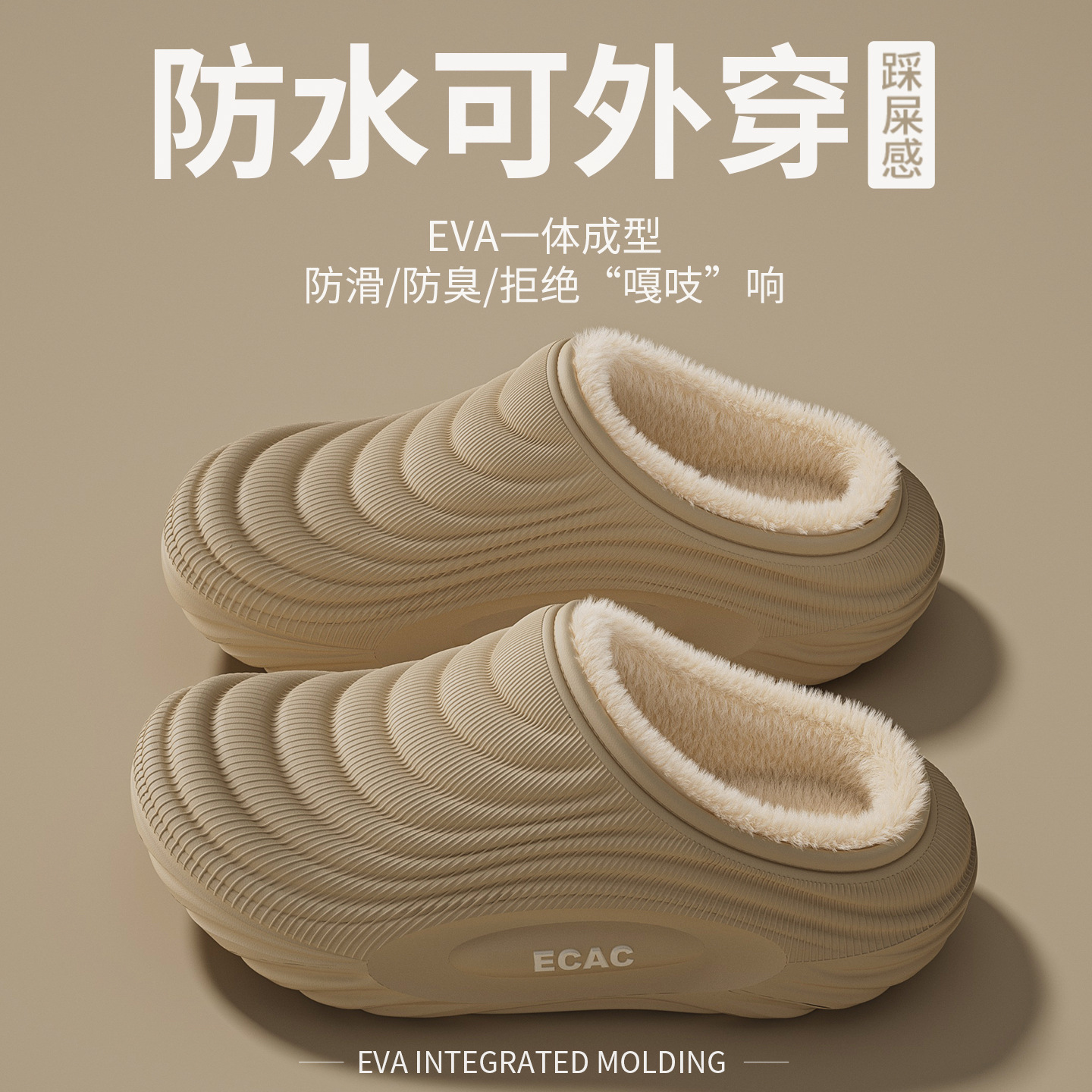 男士防寒防水保暖家居棉鞋2025冬季新款防滑软底室内包跟月子拖鞋