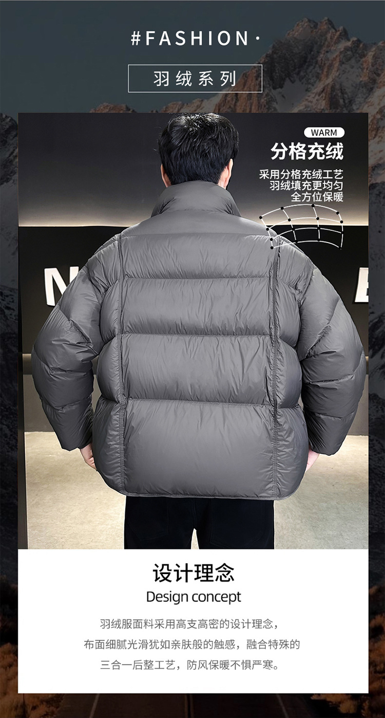 【已质检】高极感软糯立领90羽绒服外套男重磅加厚保暖面包服男装