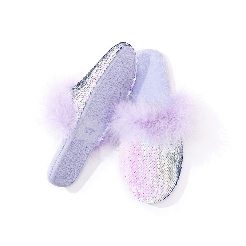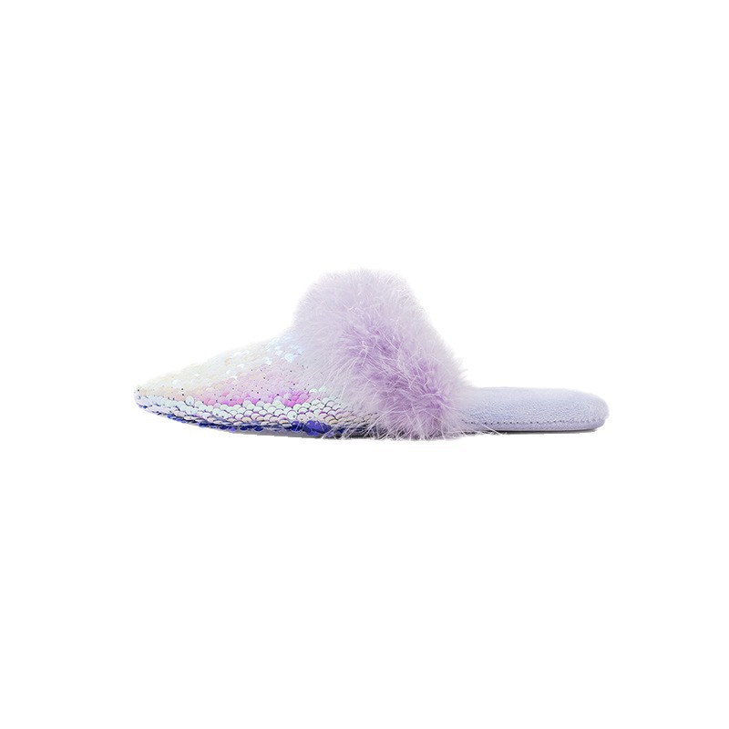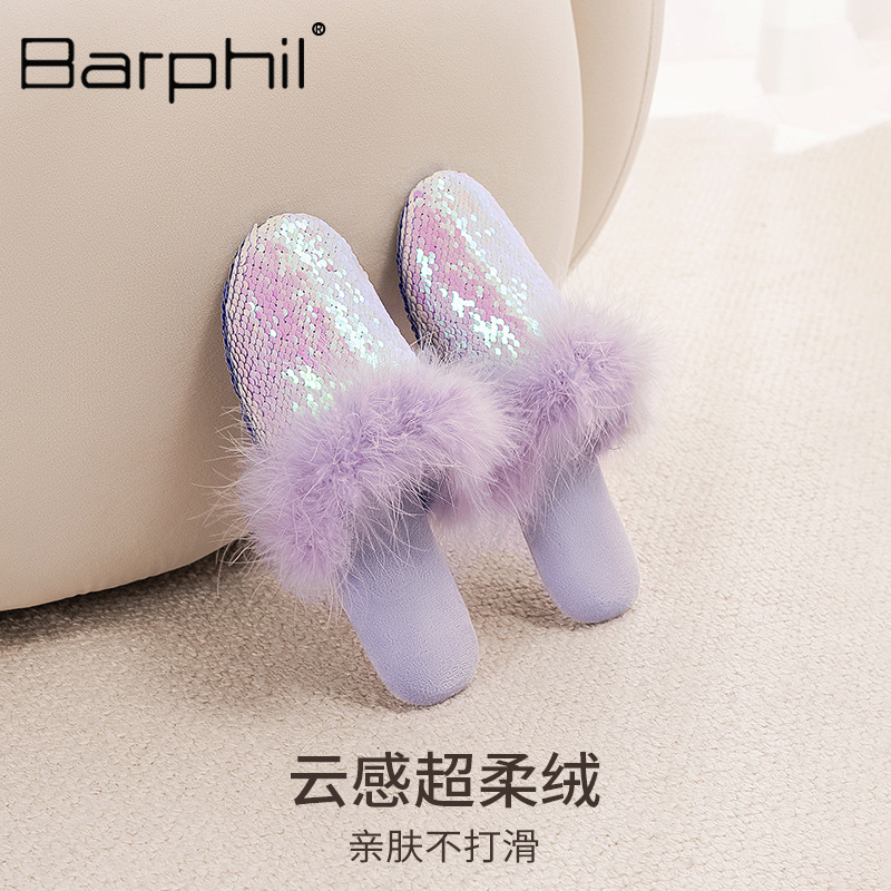 Barphil春秋季小香风轻奢气质甜美亮片加绒保暖室内居家棉拖鞋女