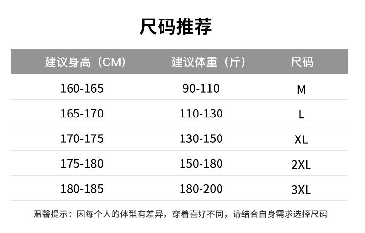 | 3XL适合180-200斤 | USD $0.0 | 499 piece available |